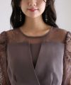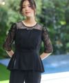 ビスチェ風トップスは、Uネックとレースで固すぎない印象と華やかさをプラス。