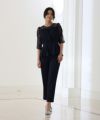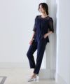 エレガントなビスチェ風トップスとパンツの2点セットのパンツドレス。