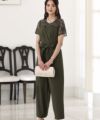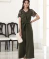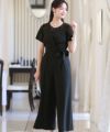 ■レース×ワイドパンツがエレガントなパンツドレスワイドパンツでスマートでオシャレなパンツドレスです。切り替えのレースが華やかでエレガントな女性の印象をプラス。付属リボンで自分スタイルにアレンジできます。披露宴や二次会にはもちろん、通勤着として着て頂ける1枚です。