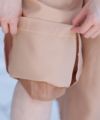 パンツ部分はワイドガウチョ風なので脚のラインが出ない作りに。