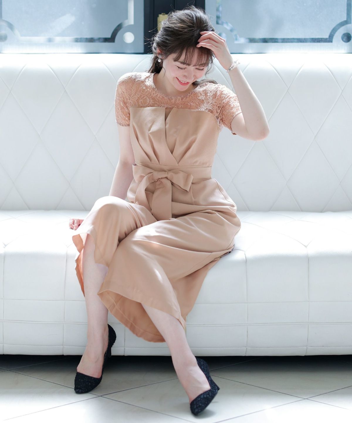 付属のリボンでウエストを絞るデザインになっており、スタイリッシュな着用イメージに。