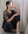 デコルテと袖の透け感が可愛いビスチェ風セットアップ。