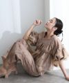 トップス&パンツの2点セットドレス。