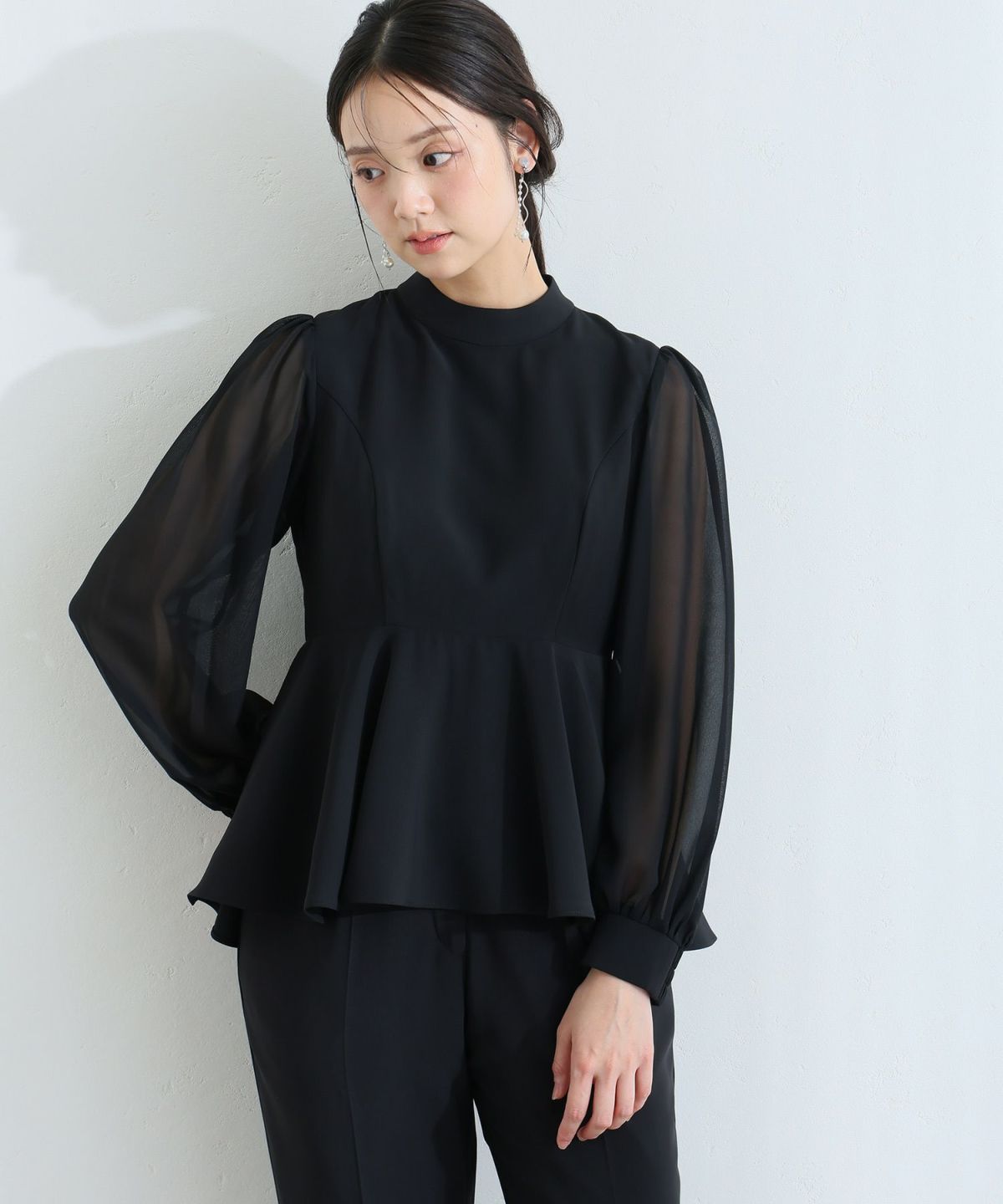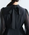 袖はシアー素材で抜け感があり、品よく肌見せができるため、華やかなシーンでも好印象です。
