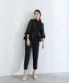 かっちり感がありながら、パンツスタイルで動きやすさも確保。
