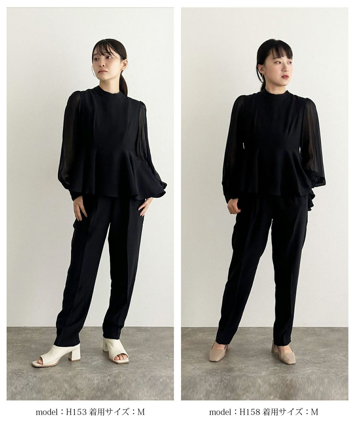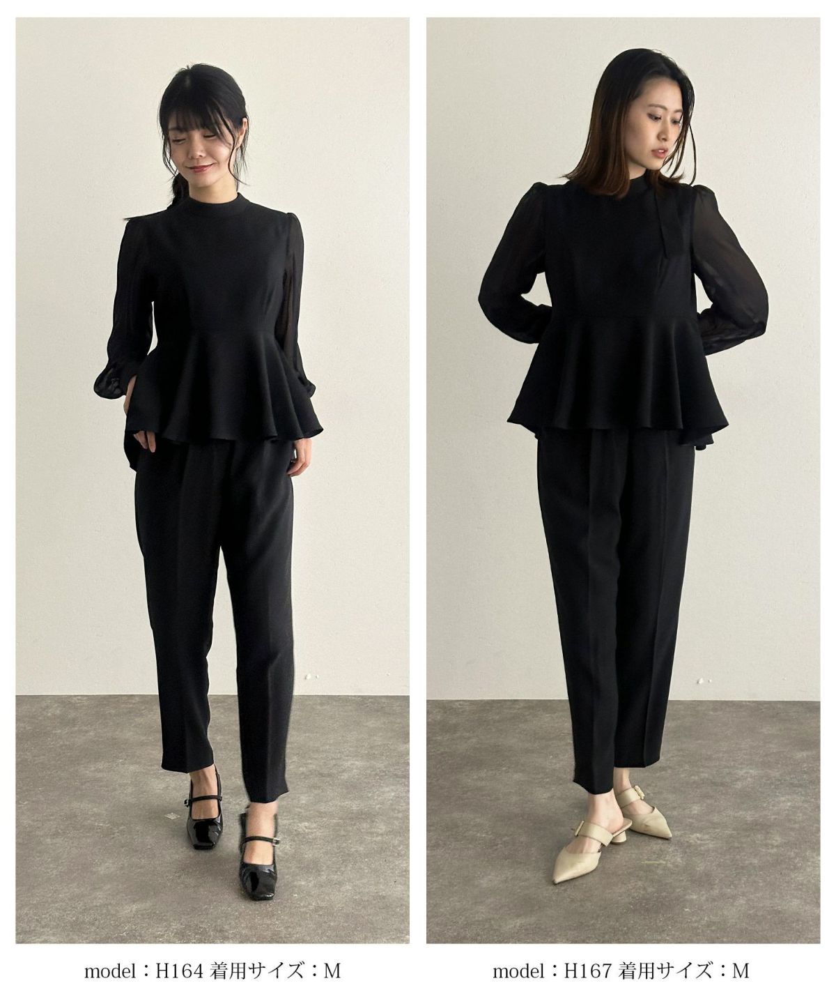 ウエストをマークしたペプラムデザインで、スタイルアップ効果が抜群。