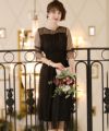 デコルテ部分のレースデザインが女性らしい レース切り替えブラックワンピース