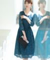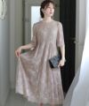光沢感のある刺繍レースが煌びやかで上品 刺繍レースワンピース