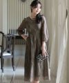 ぷっくり膨らみのあるジャガード生地が高級感漂う オーガンジー×膨れジャガードワンピース