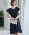 デコルテからスリーブにかけての透け感が上品で大人っぽい印象に フレア袖レースタイトワンピース