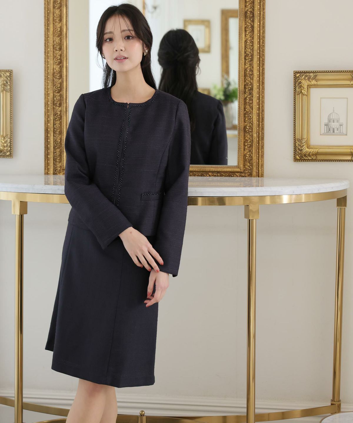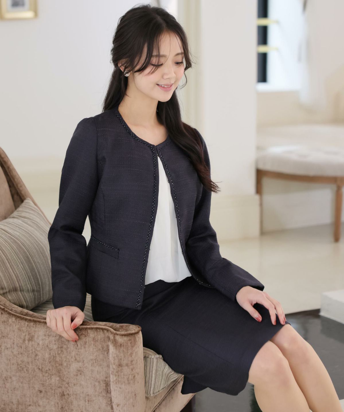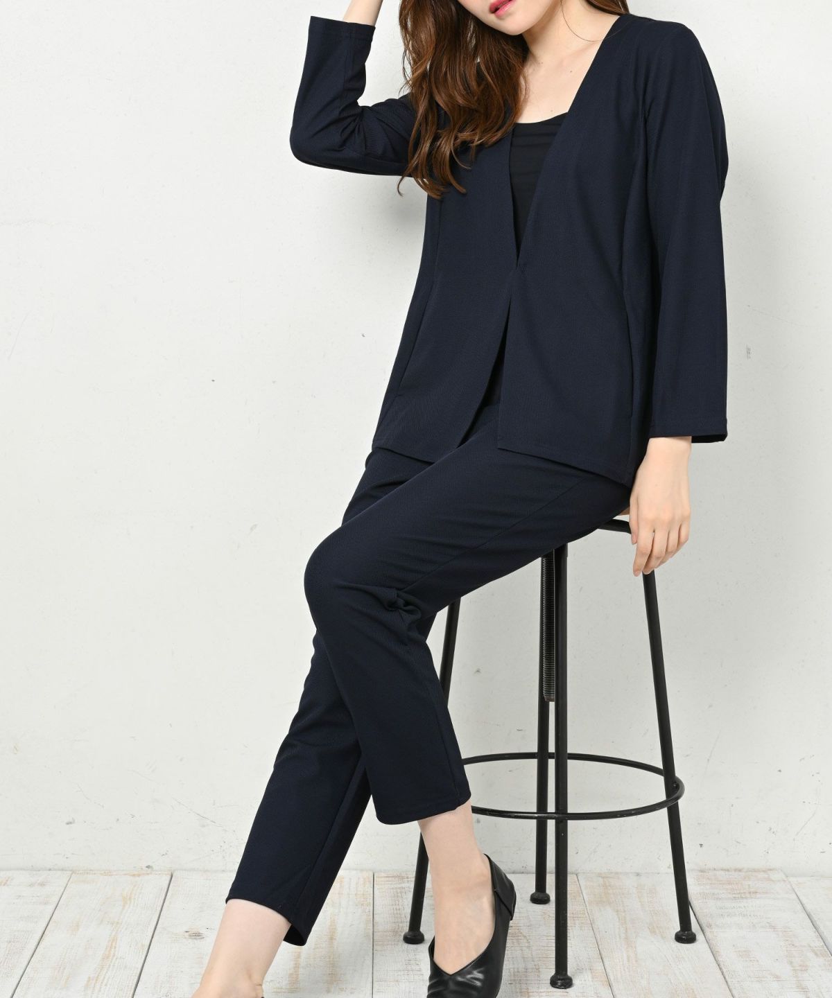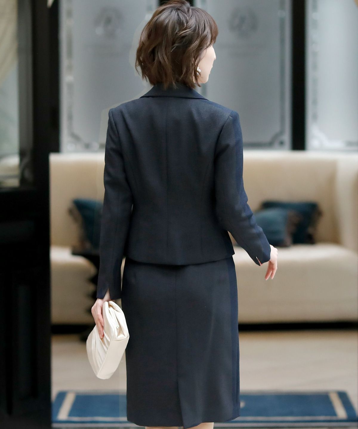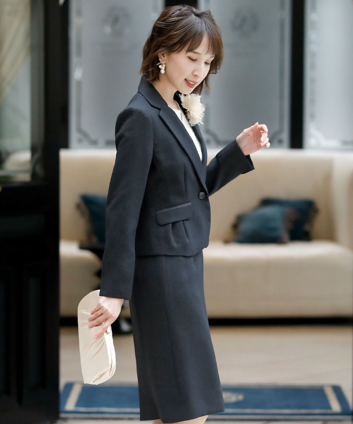 毎日のオフィススタイルには、シャープでプロフェッショナルなビジネススーツを。ダークカラーやストライプのデザインが、信頼感と知的な印象を与えます。