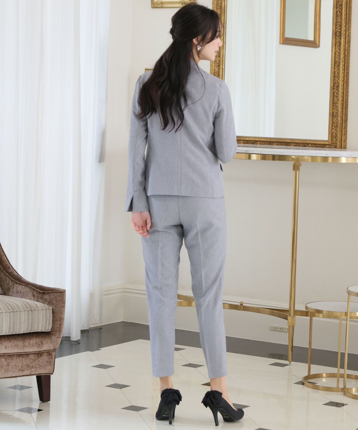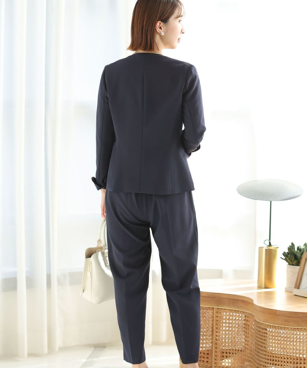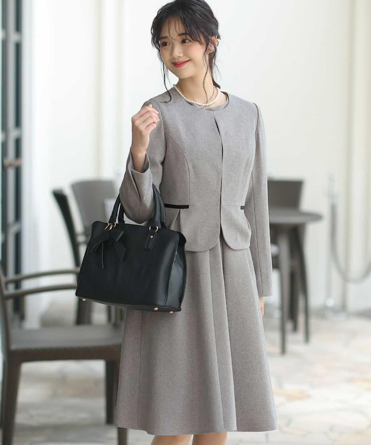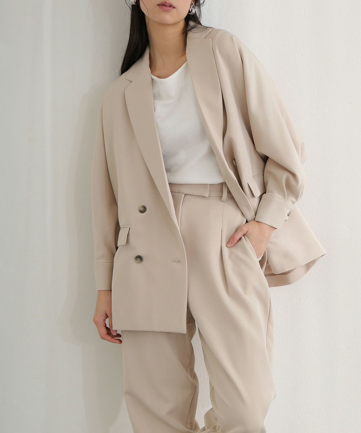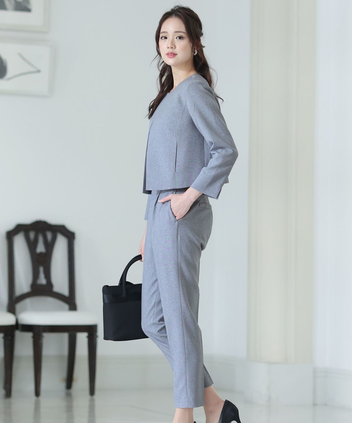 オフの日やカジュアルなイベントには、リラックス感のあるスーツがおすすめです。軽やかな素材と明るいカラーで、柔らかい雰囲気をプラス。