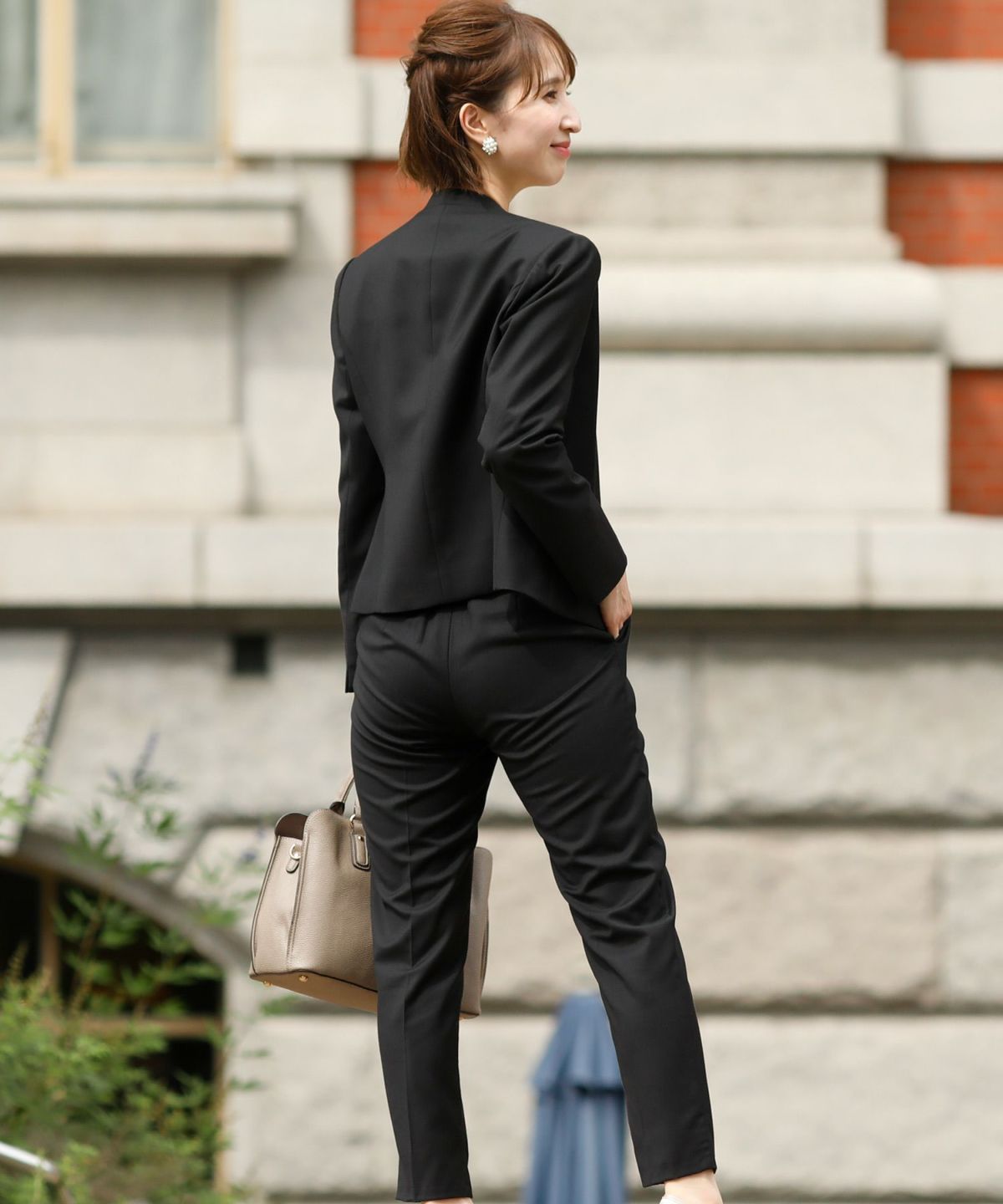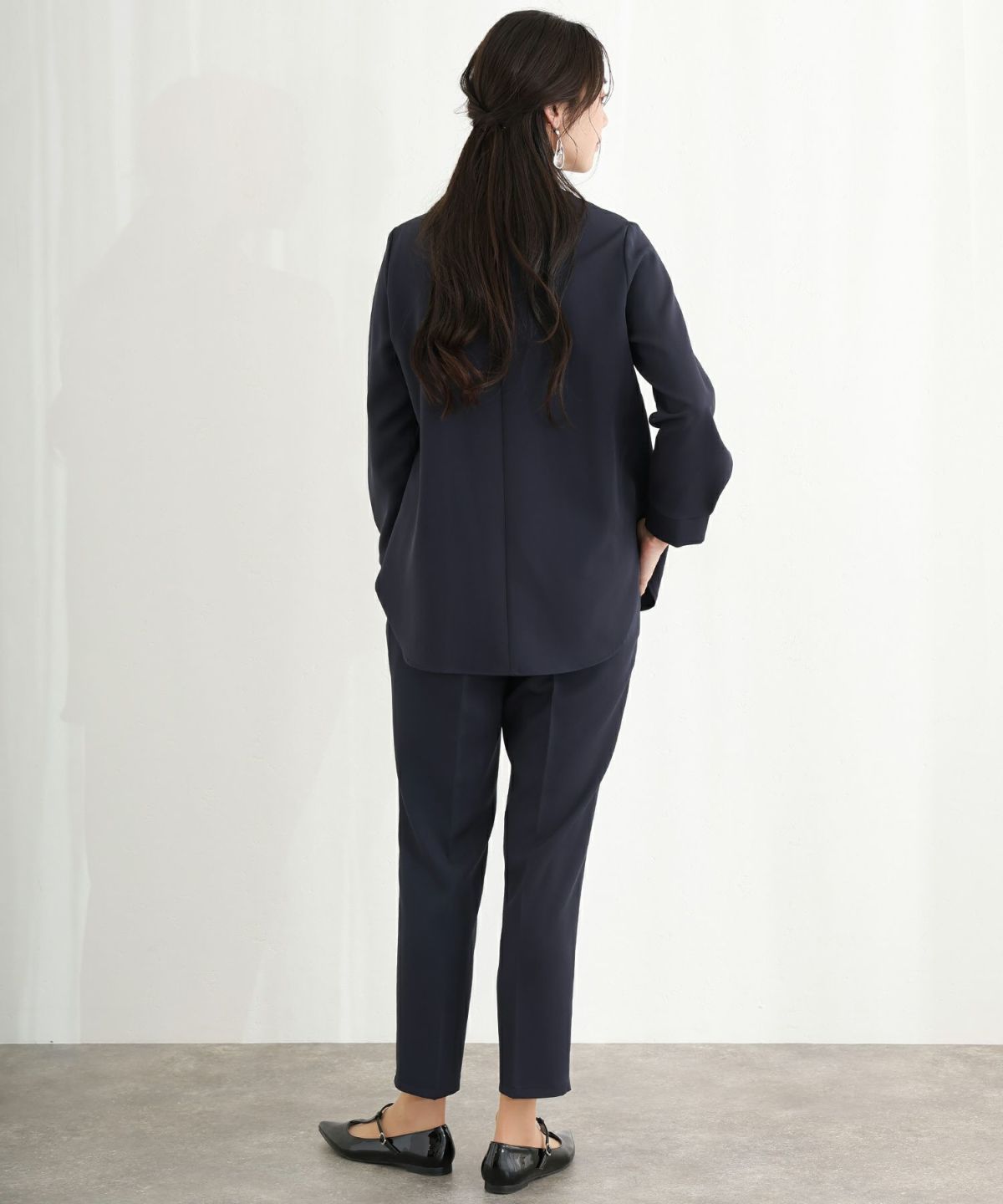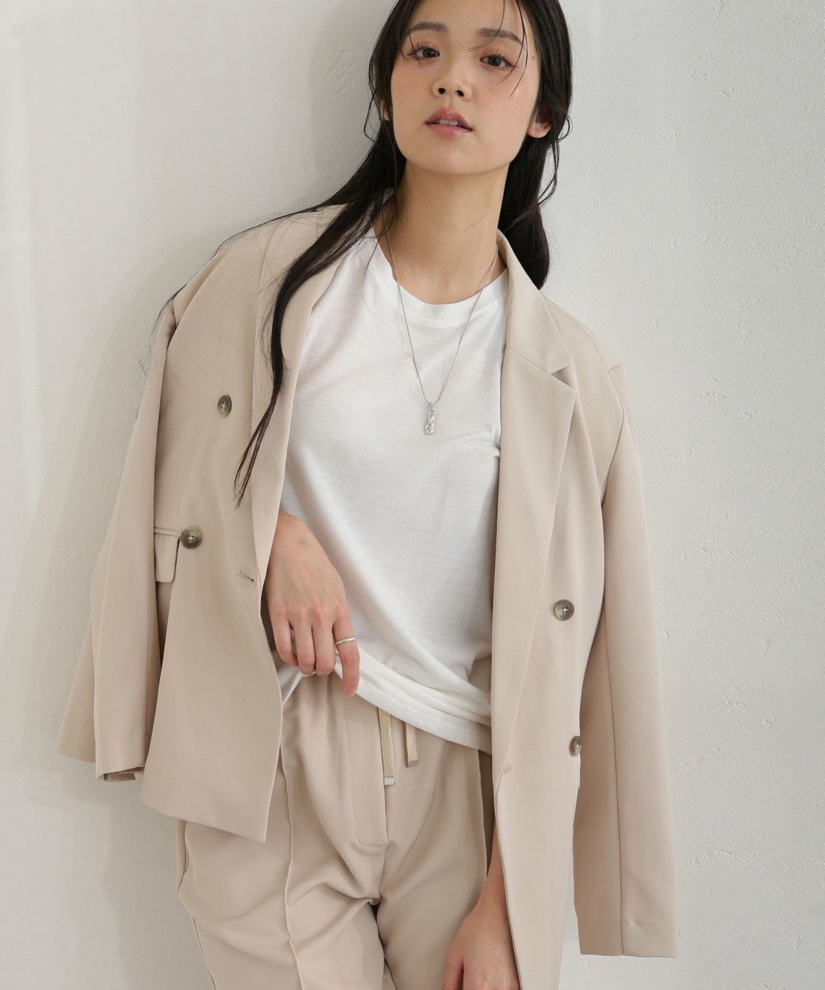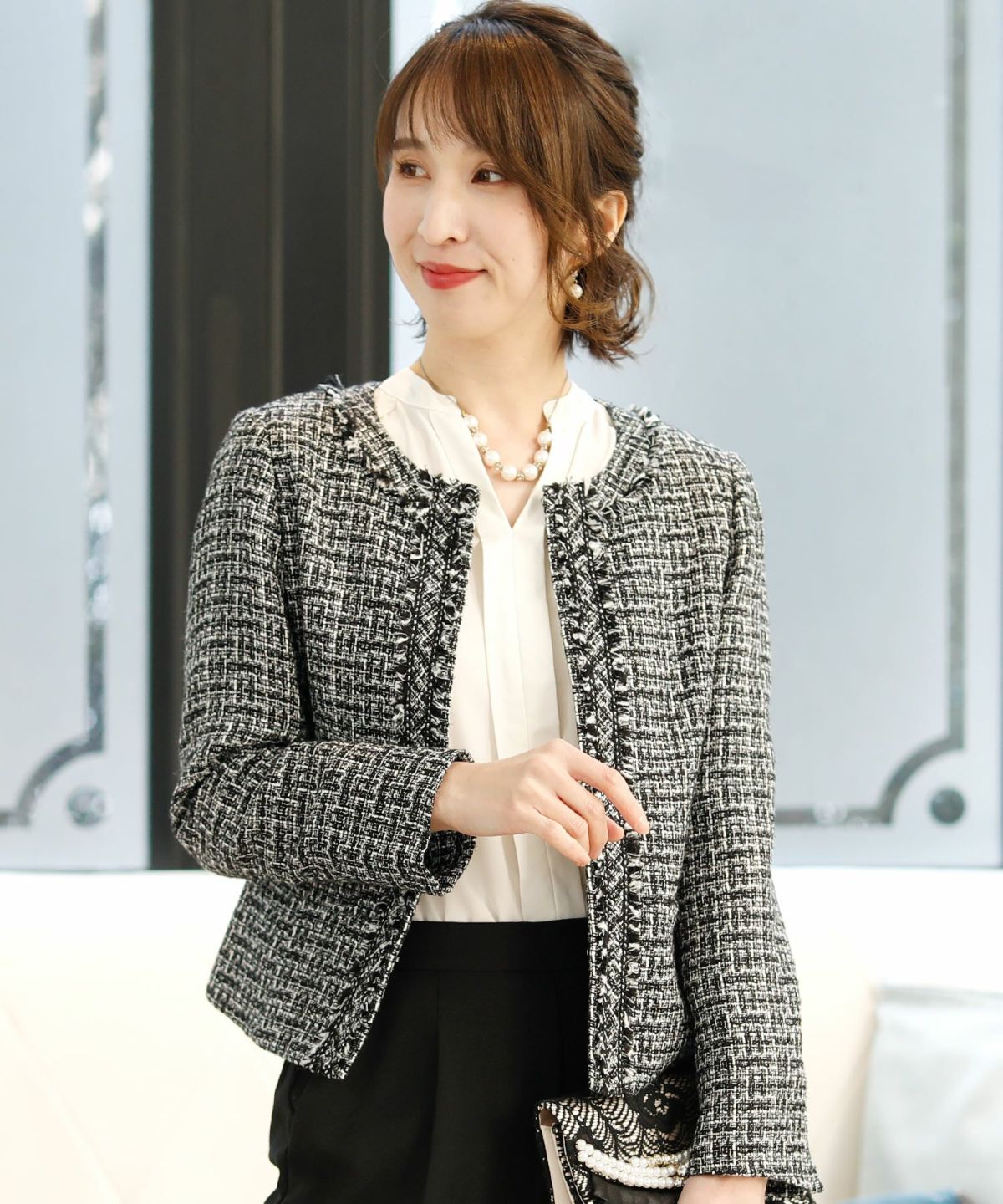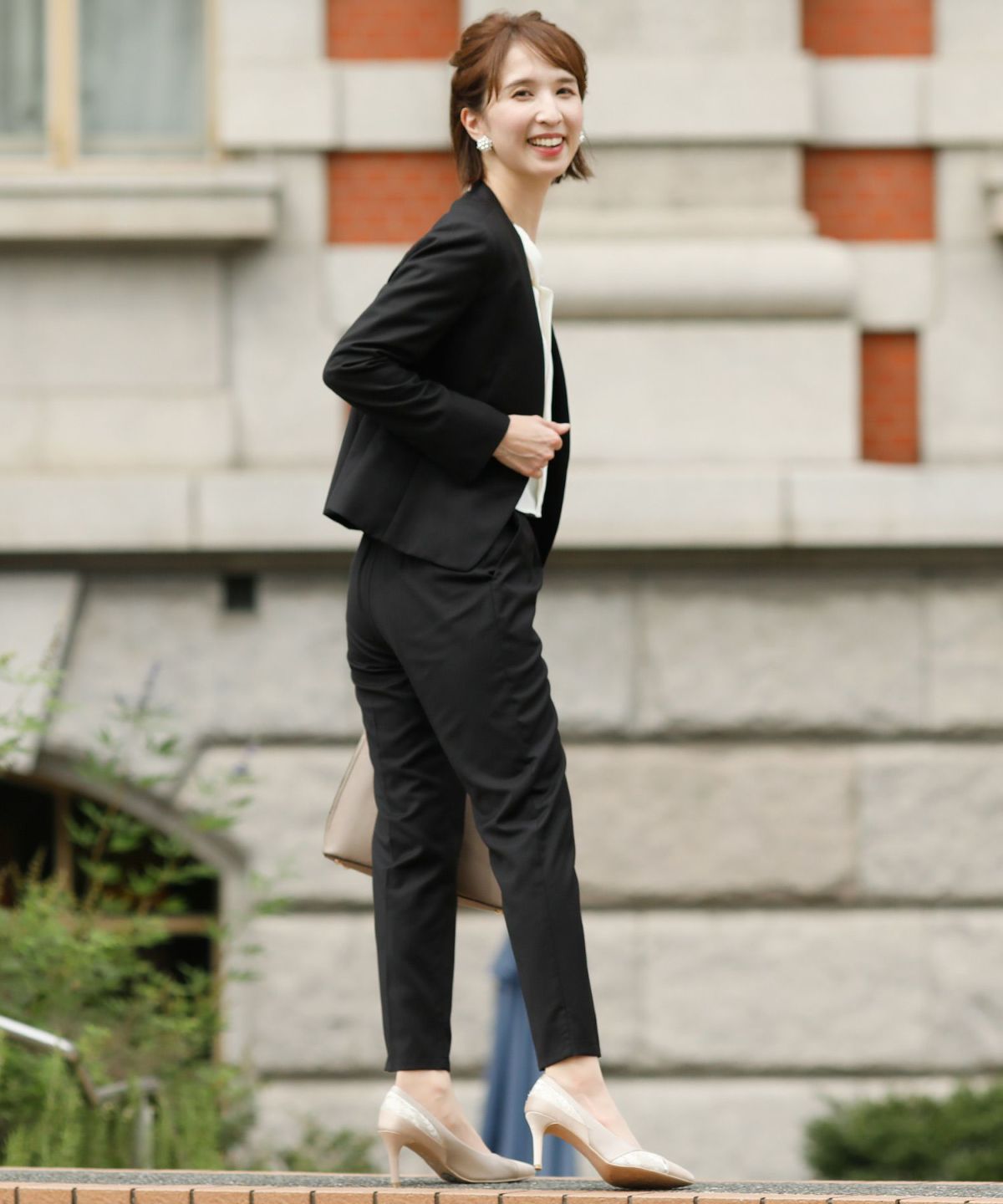 オフの日やカジュアルなイベントには、リラックス感のあるスーツがおすすめです。軽やかな素材と明るいカラーで、柔らかい雰囲気をプラス。