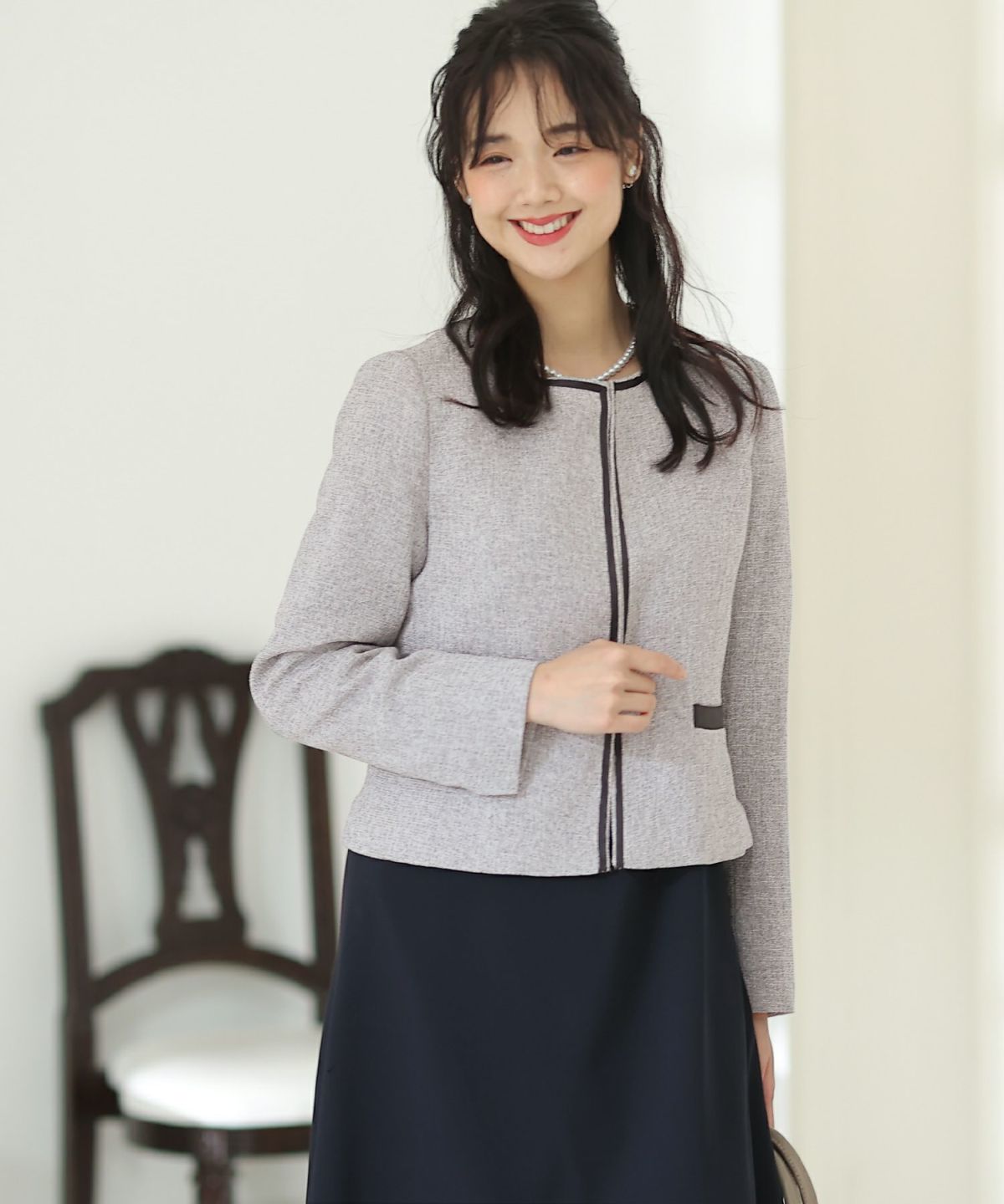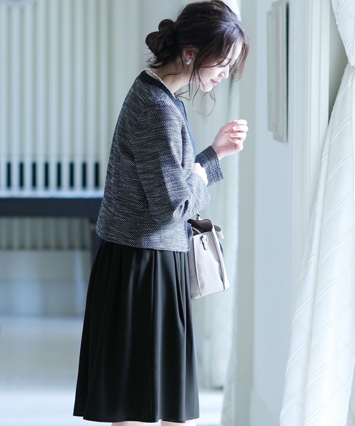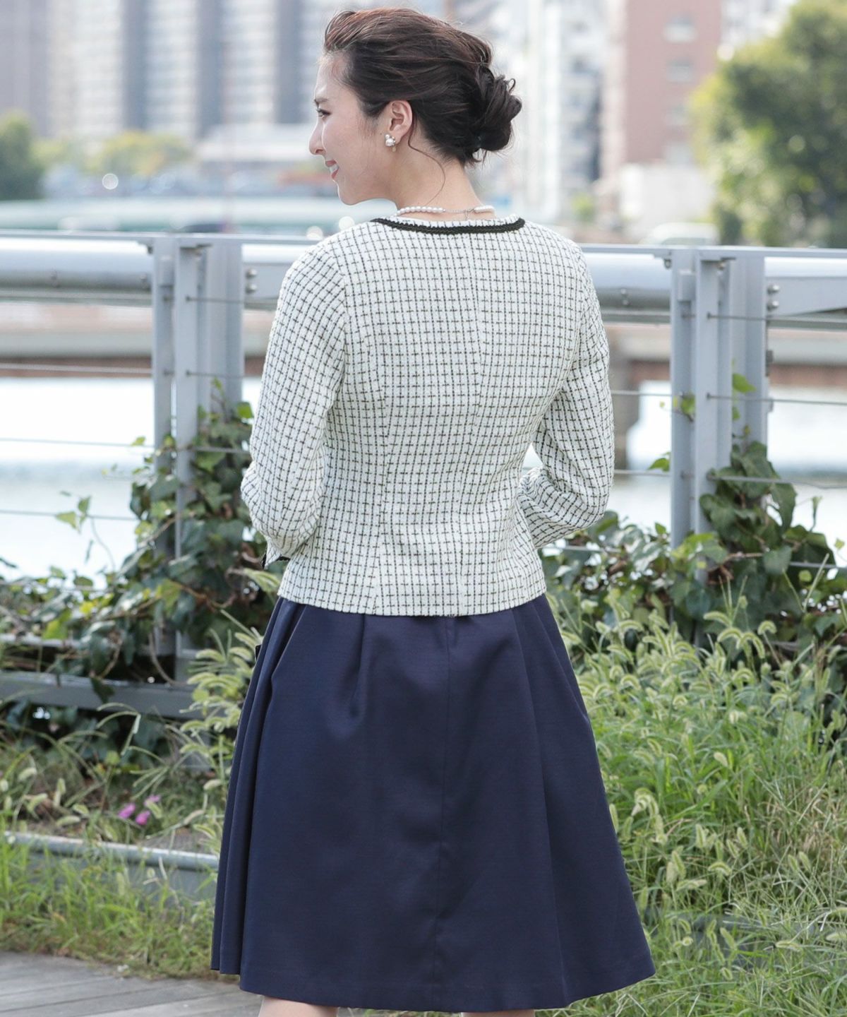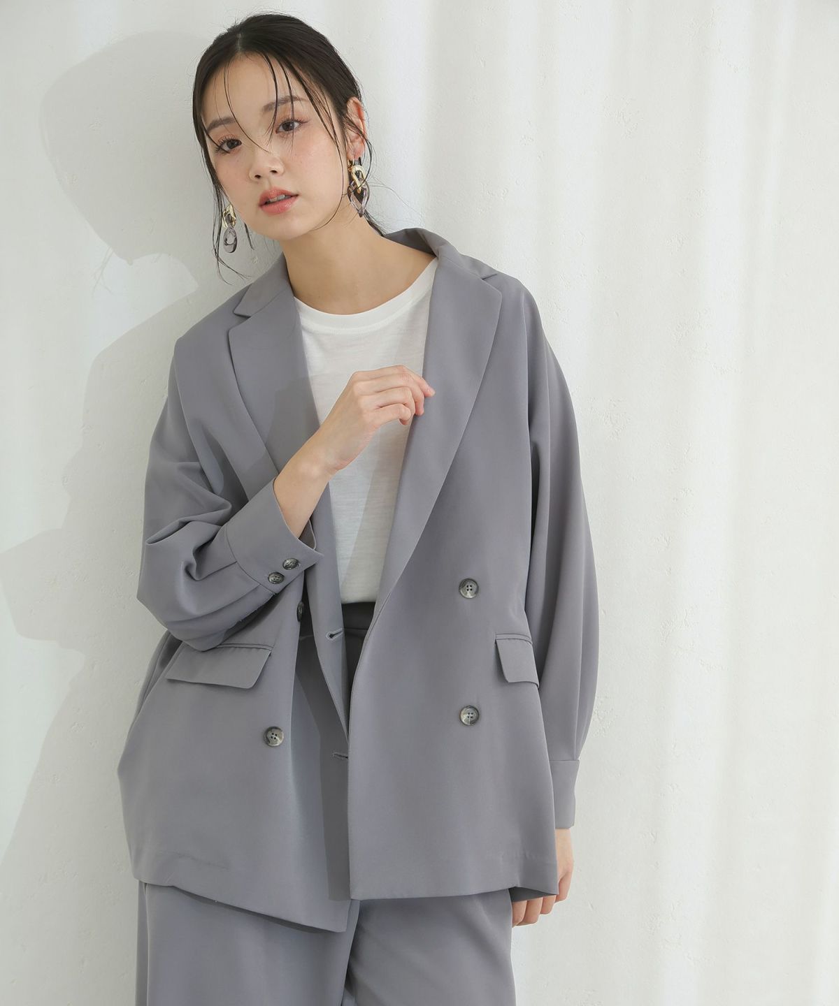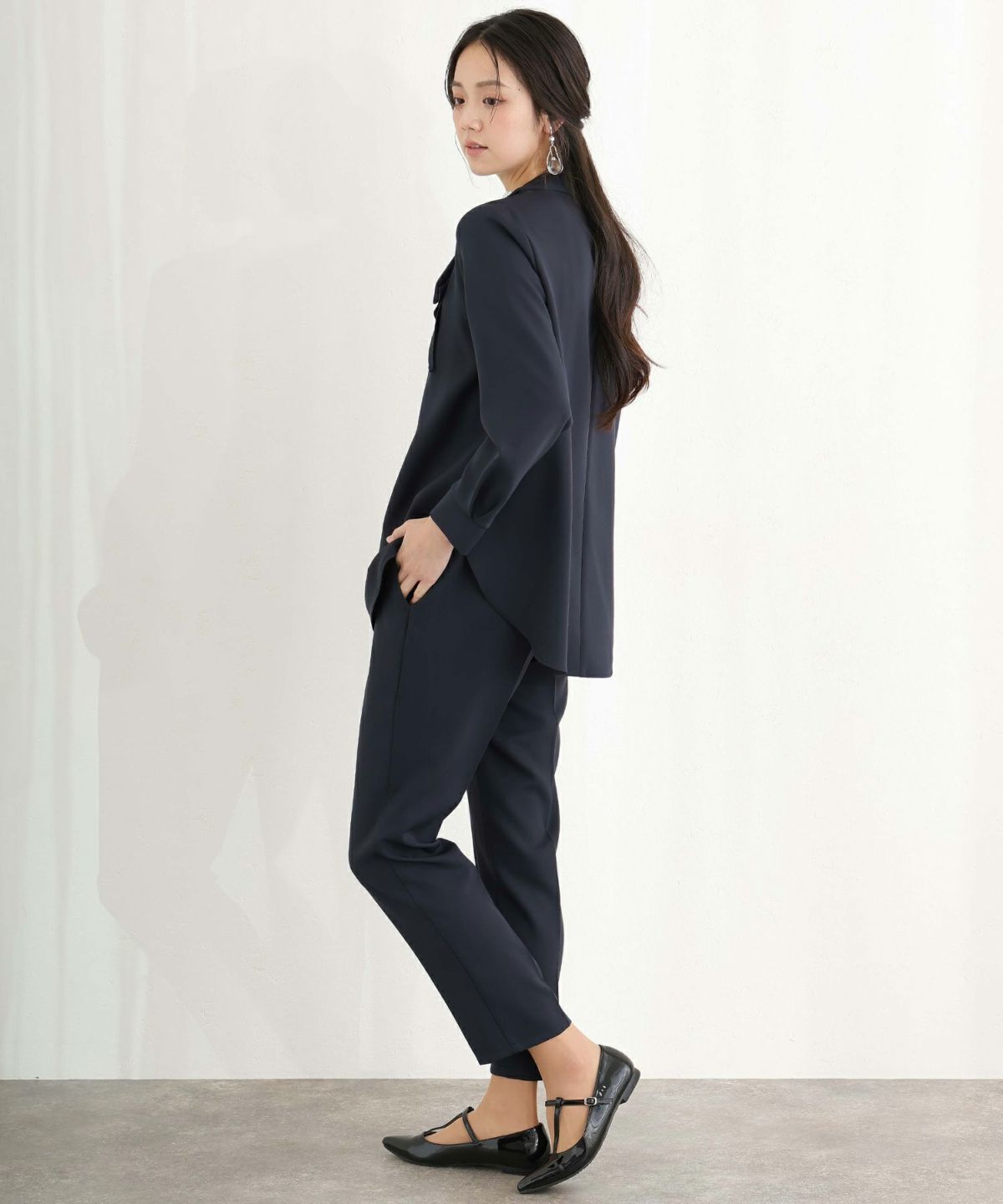 オフの日やカジュアルなイベントには、リラックス感のあるスーツがおすすめです。軽やかな素材と明るいカラーで、柔らかい雰囲気をプラス。