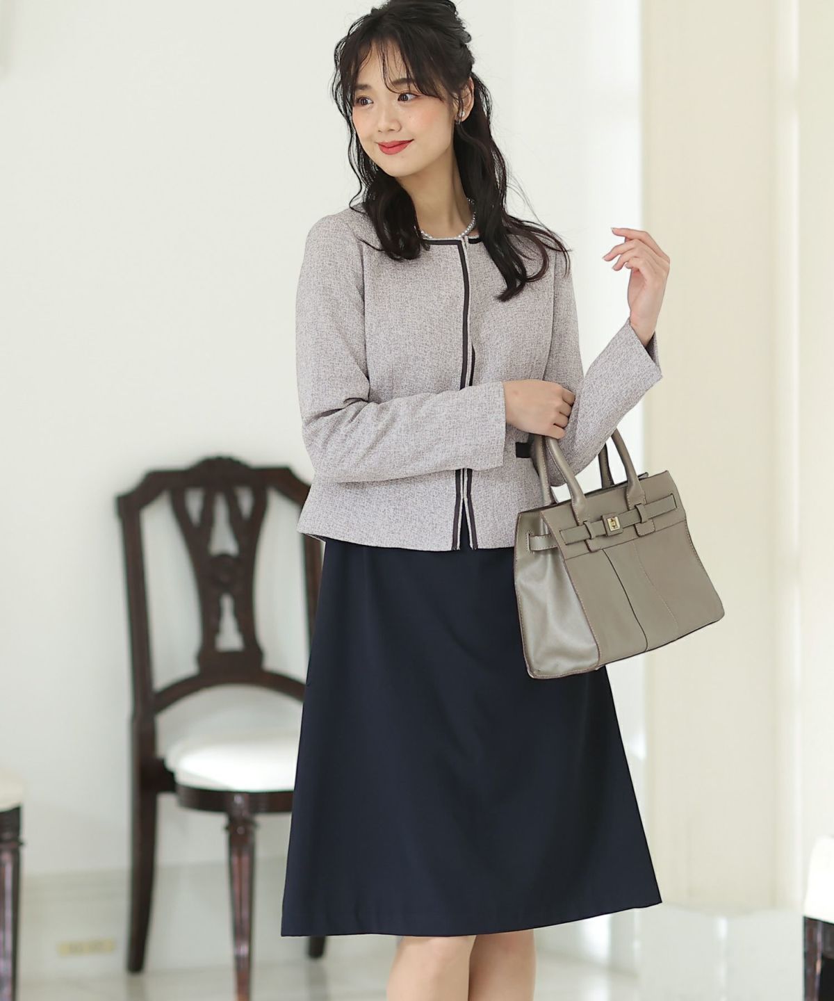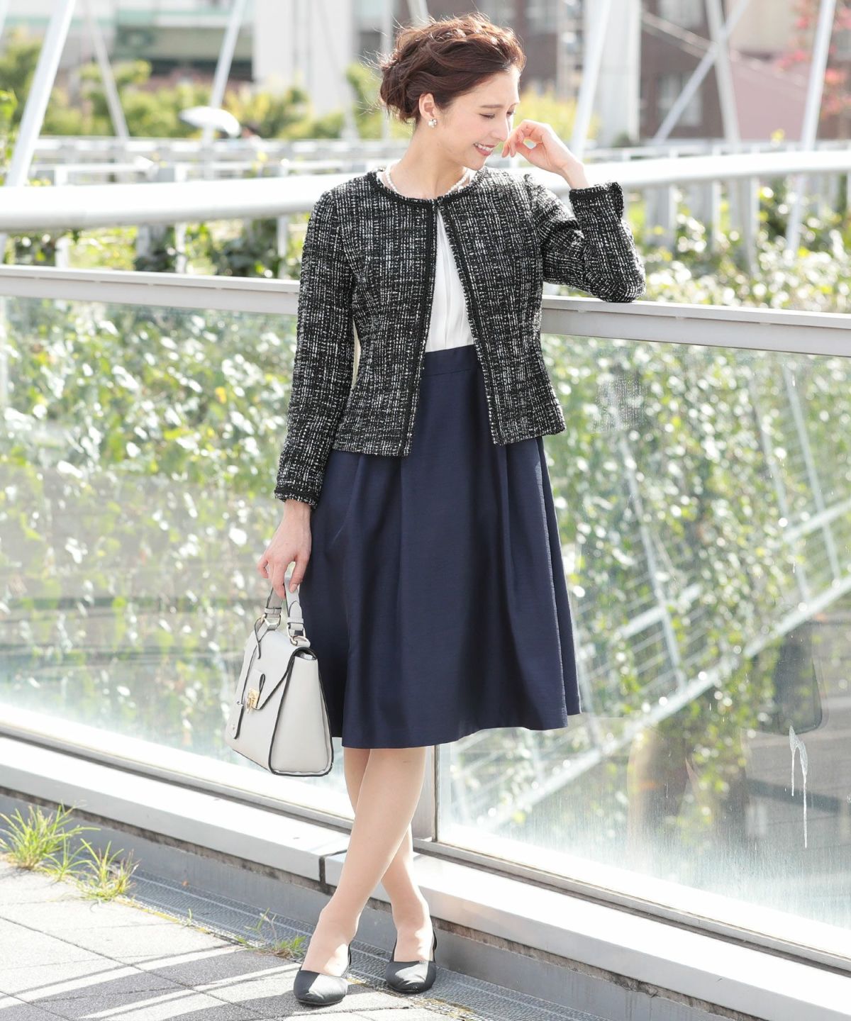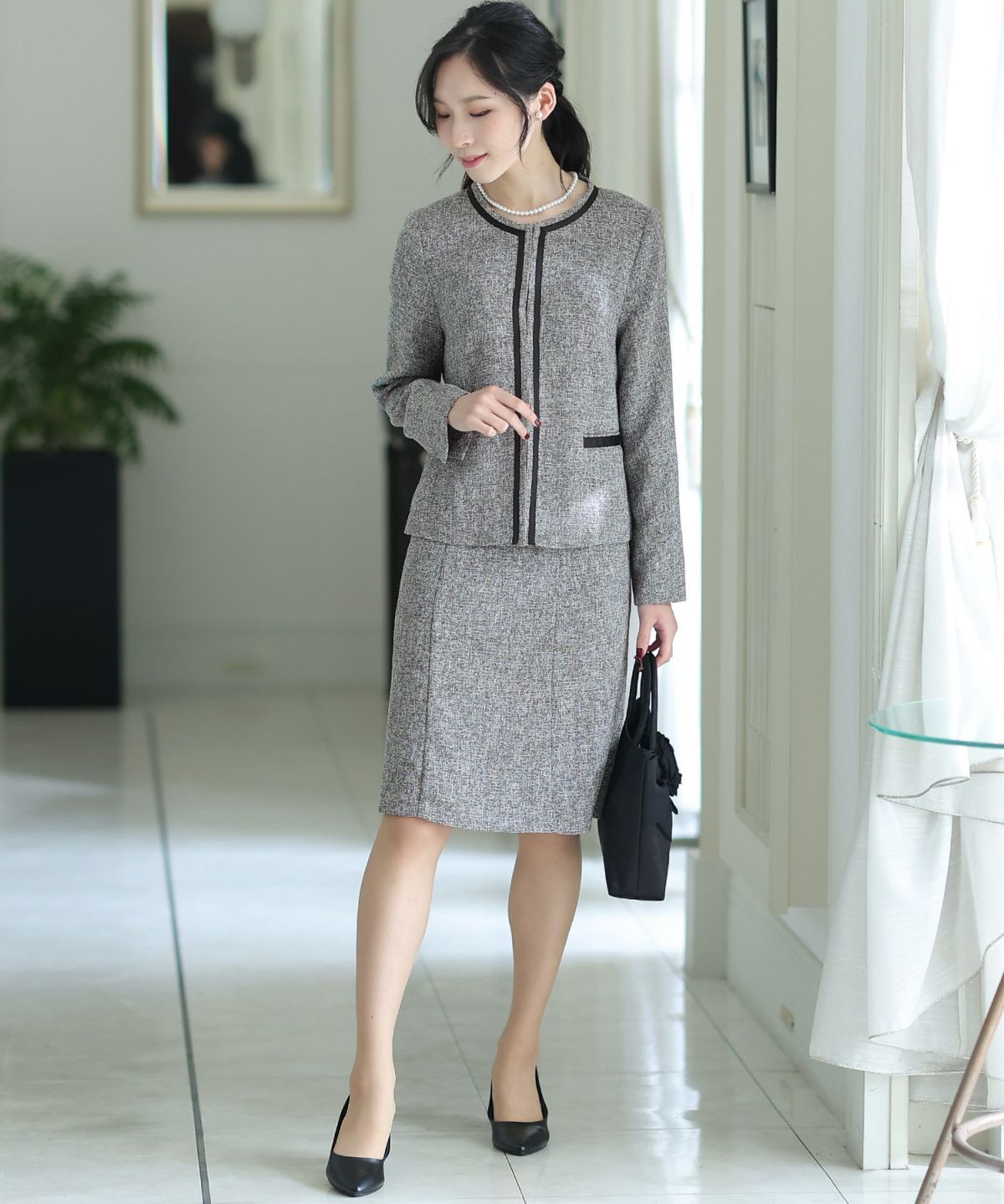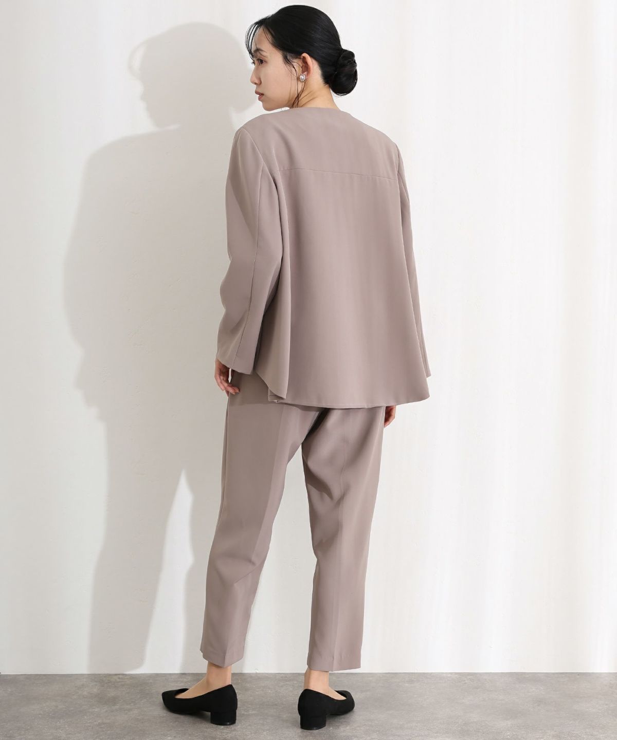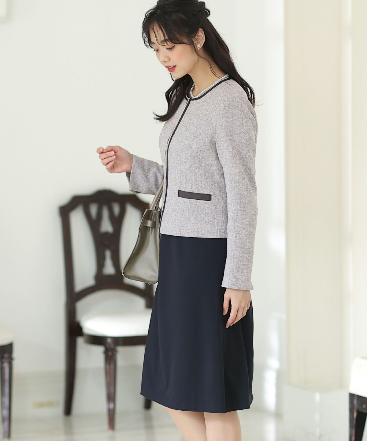オフの日やカジュアルなイベントには、リラックス感のあるスーツがおすすめです。軽やかな素材と明るいカラーで、柔らかい雰囲気をプラス。