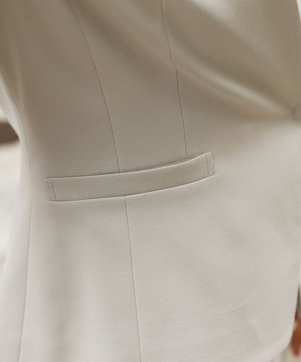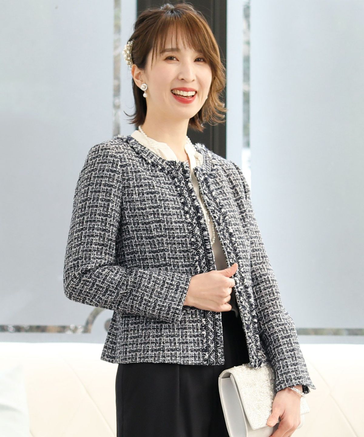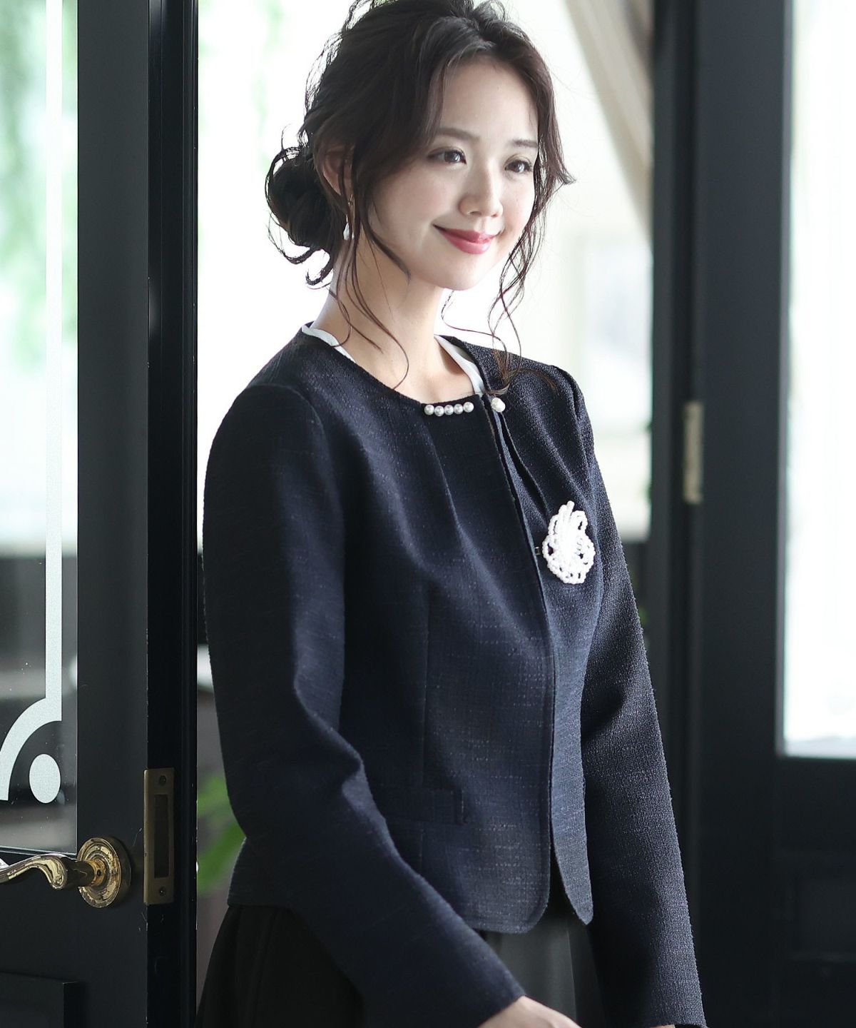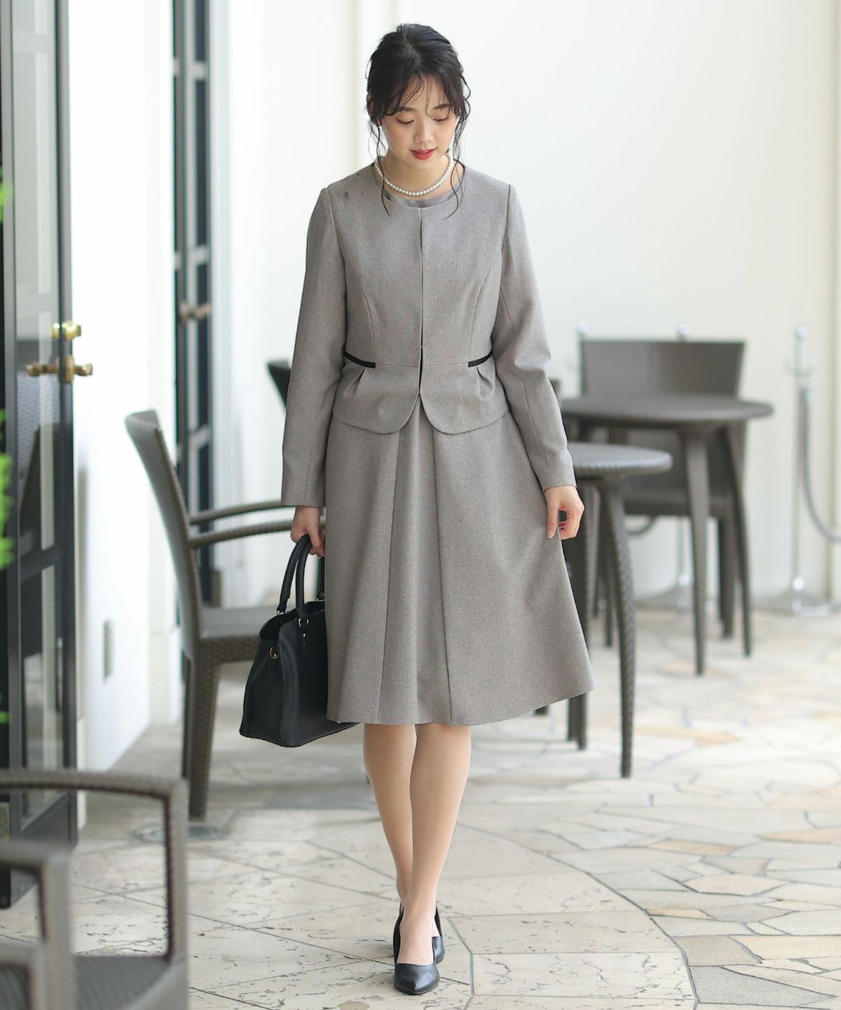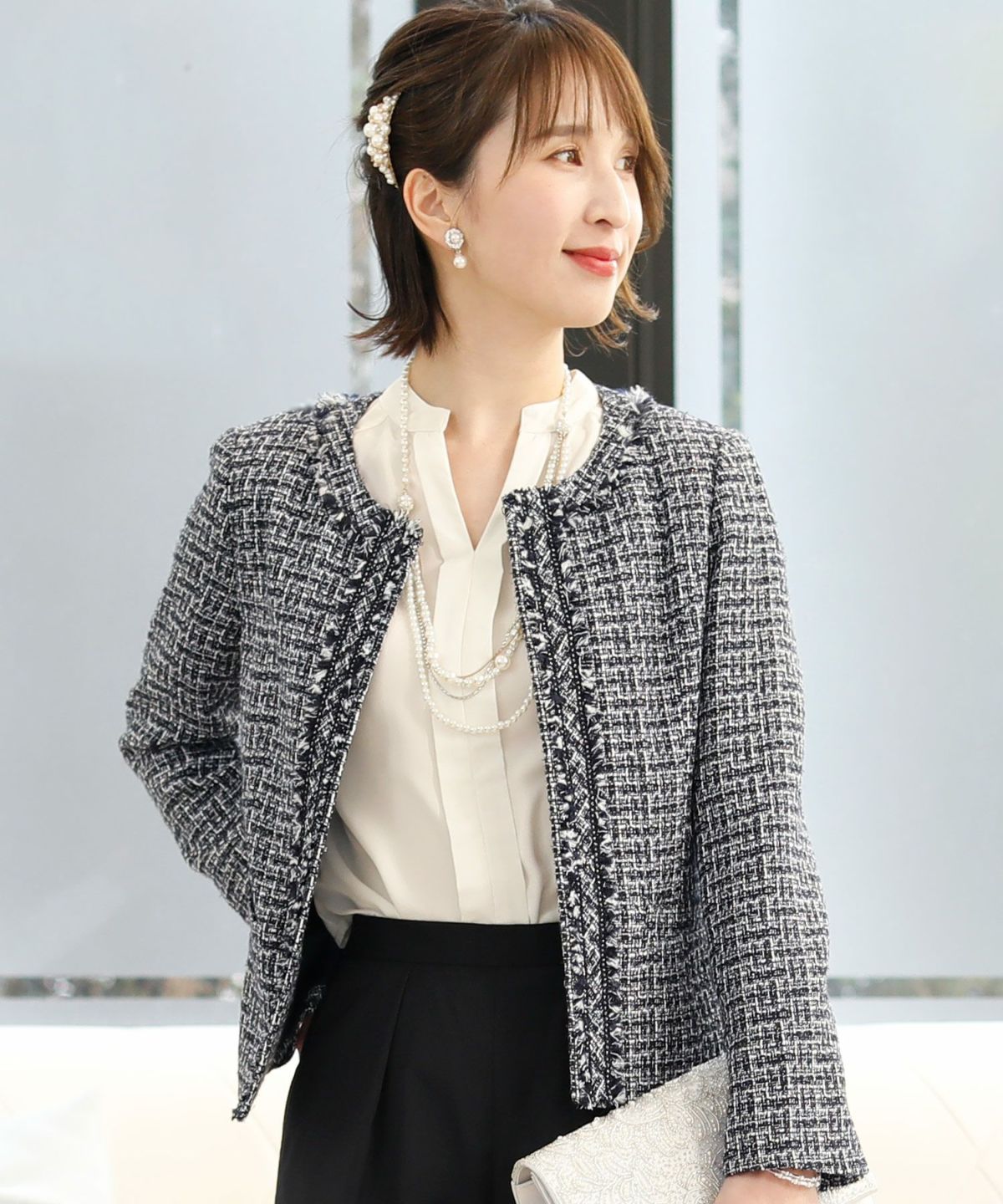 オフの日やカジュアルなイベントには、リラックス感のあるスーツがおすすめです。軽やかな素材と明るいカラーで、柔らかい雰囲気をプラス。