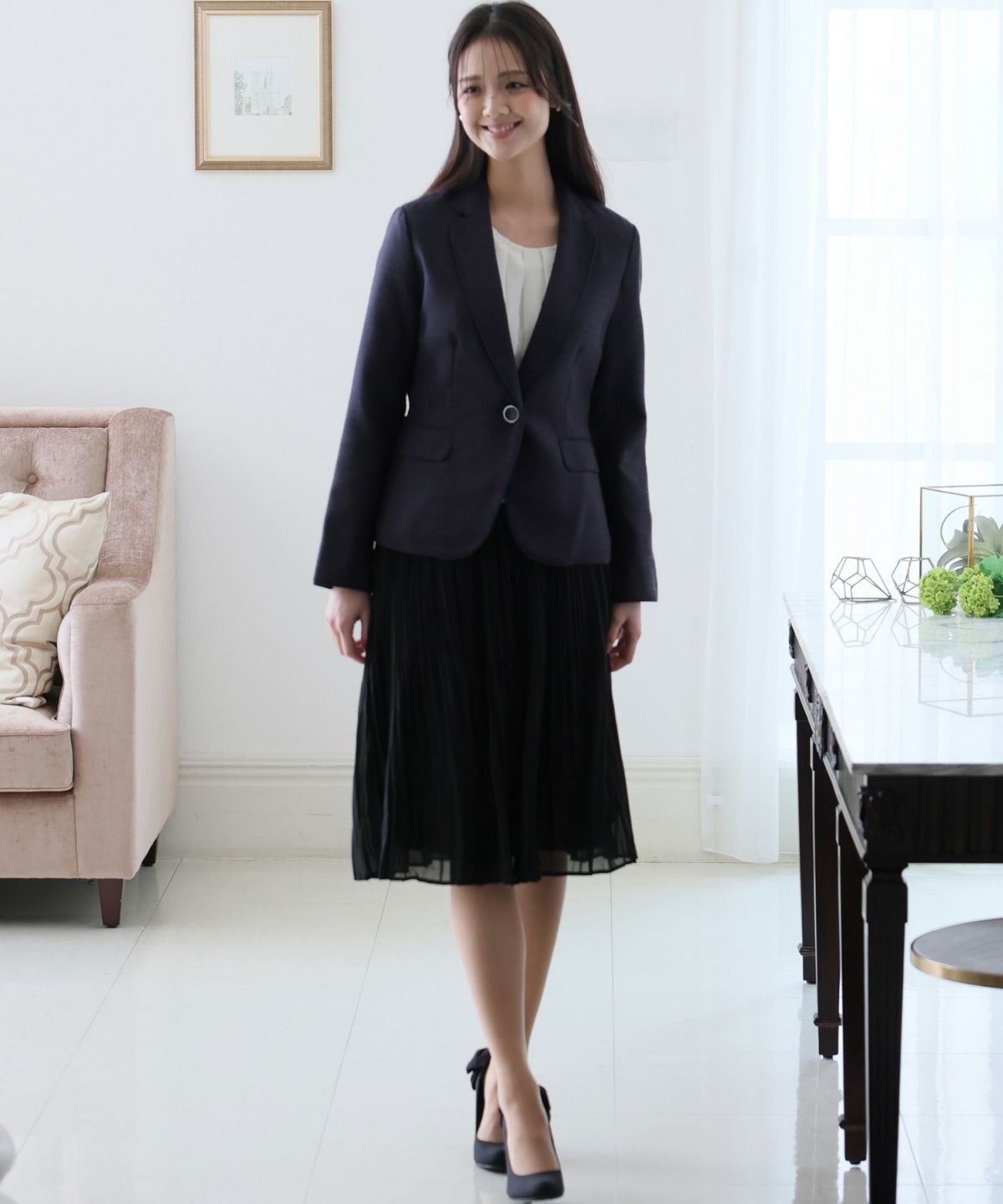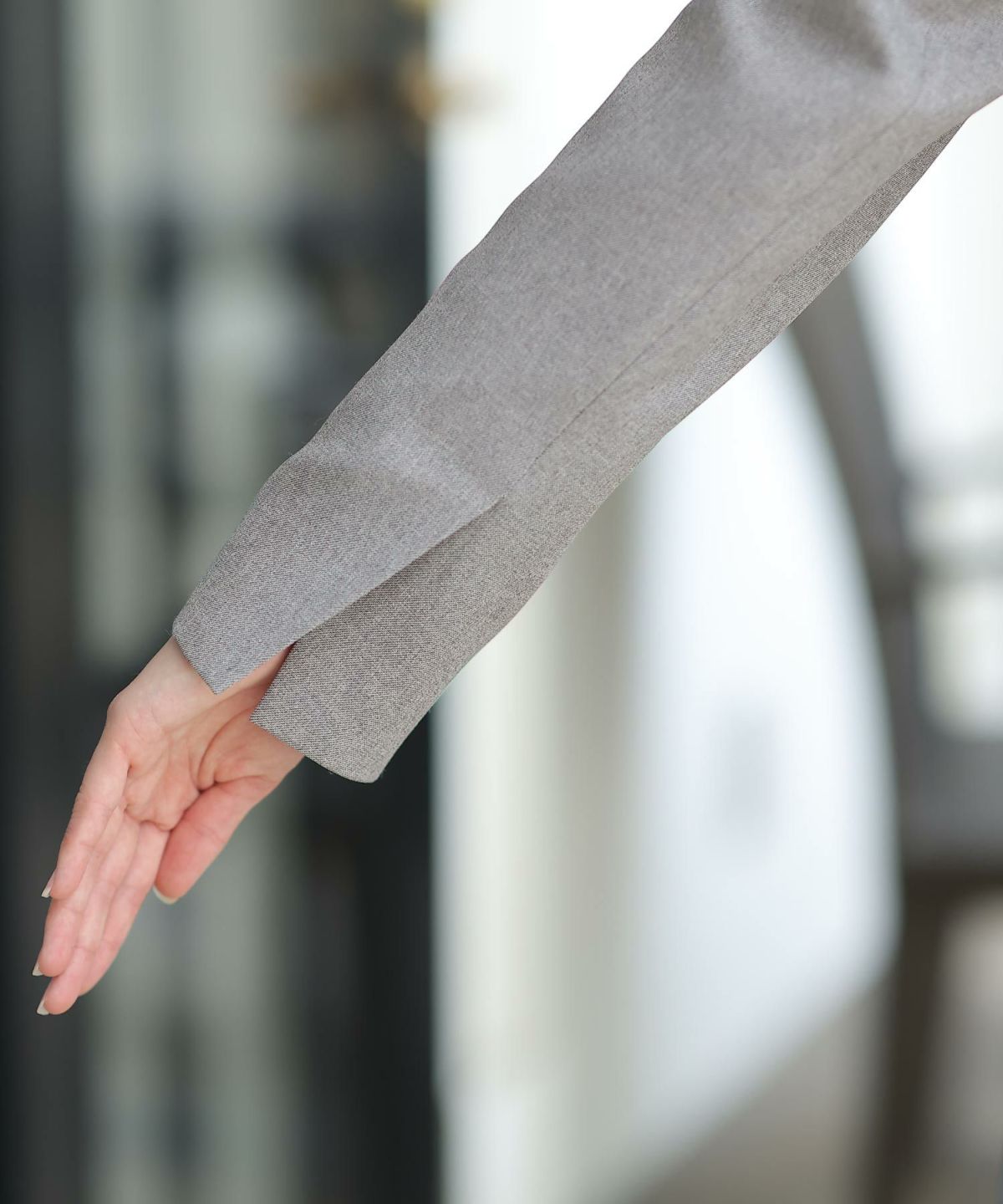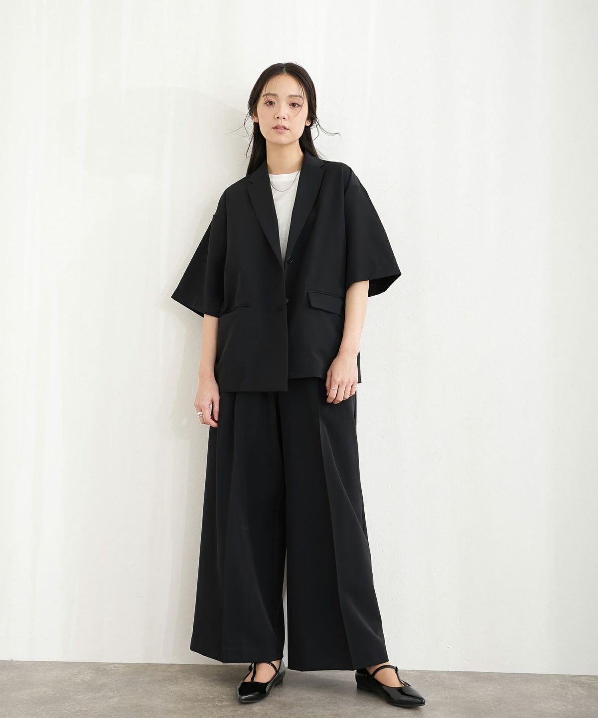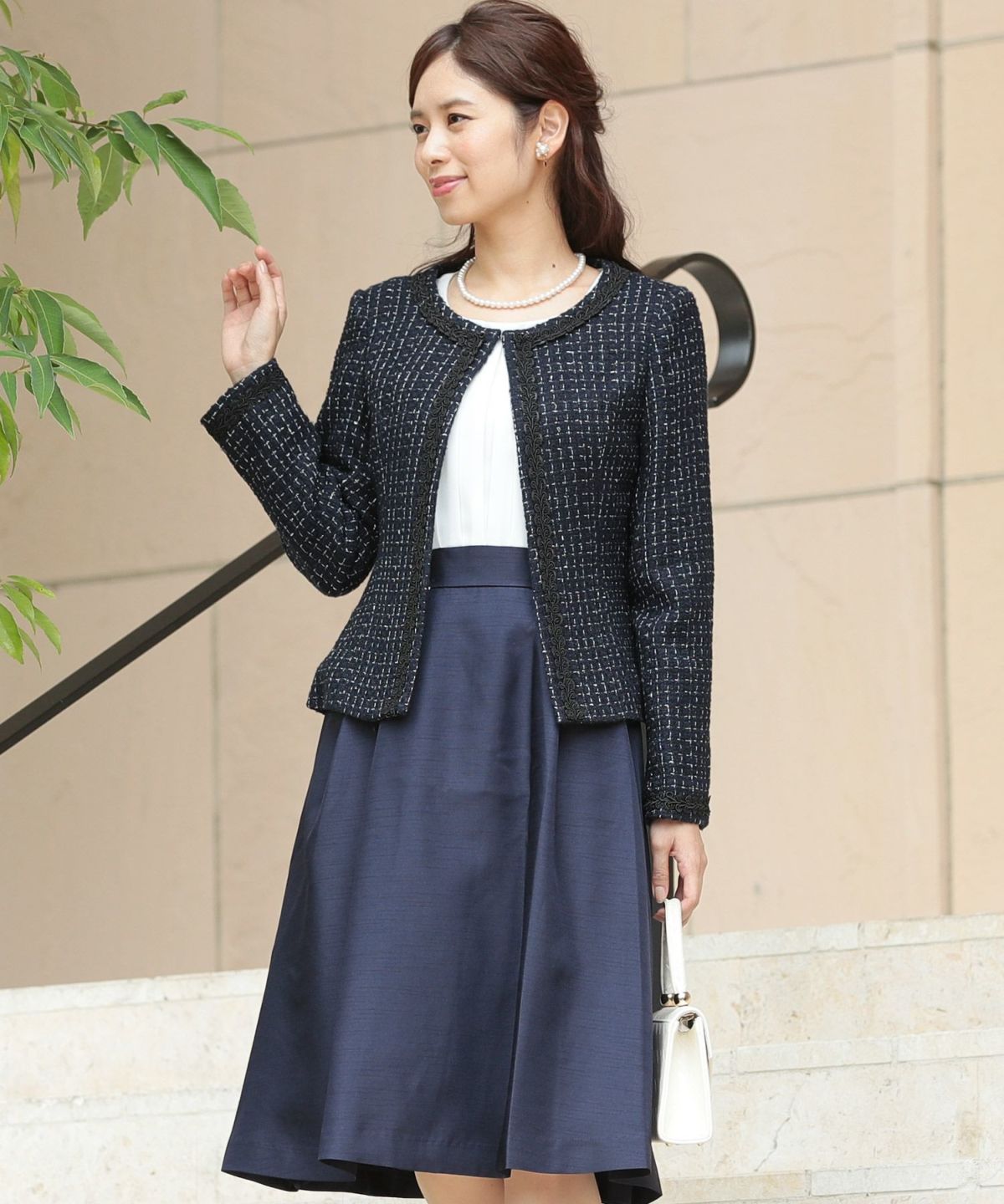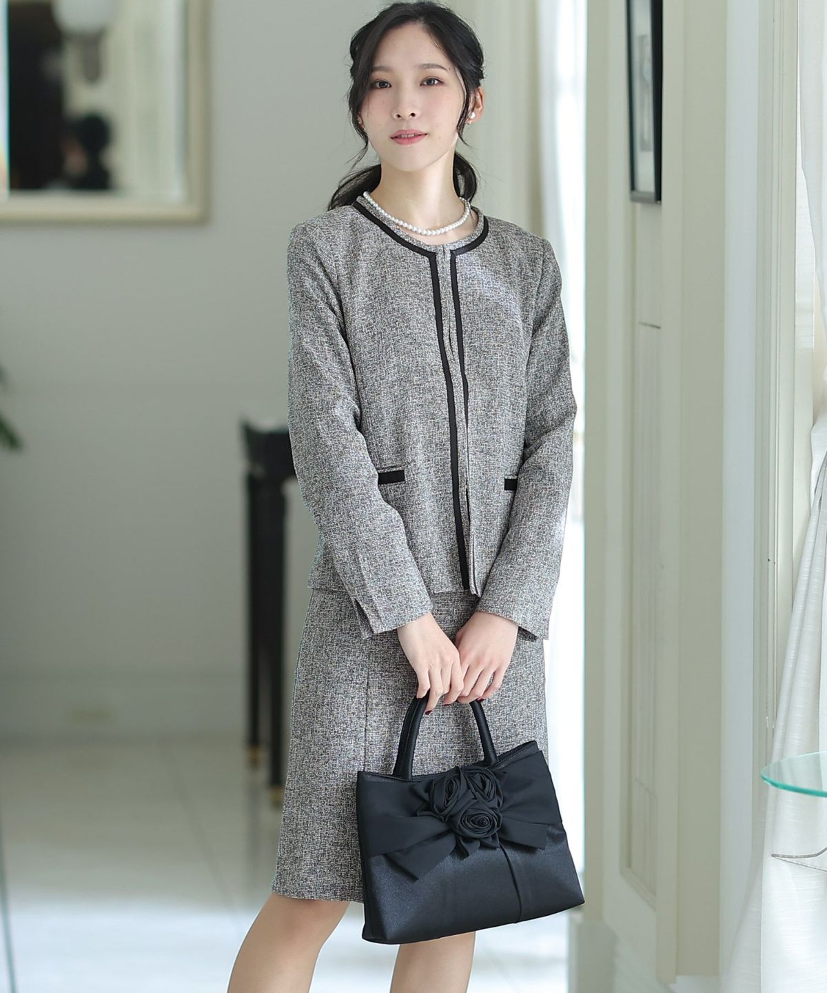オフの日やカジュアルなイベントには、リラックス感のあるスーツがおすすめです。軽やかな素材と明るいカラーで、柔らかい雰囲気をプラス。