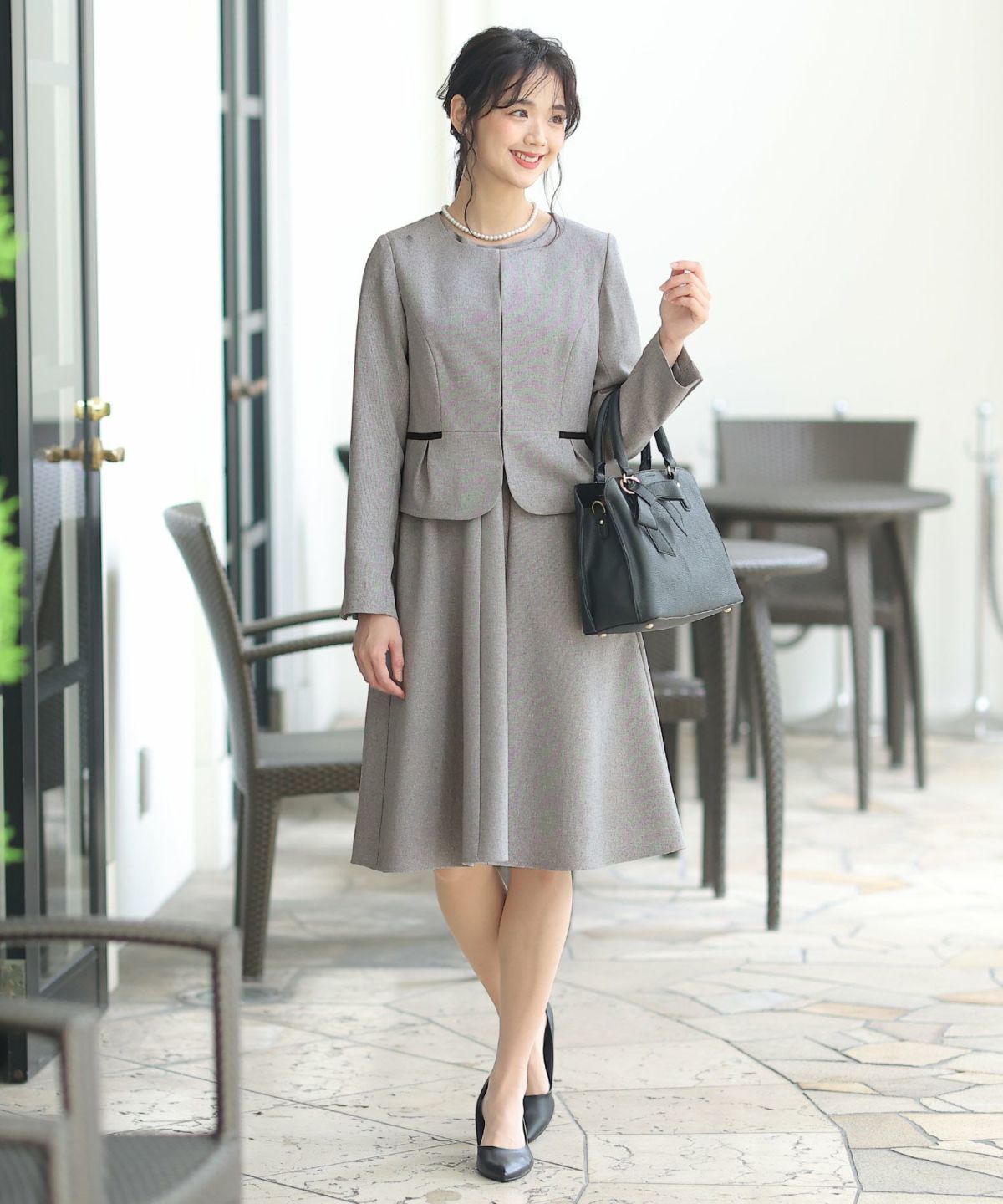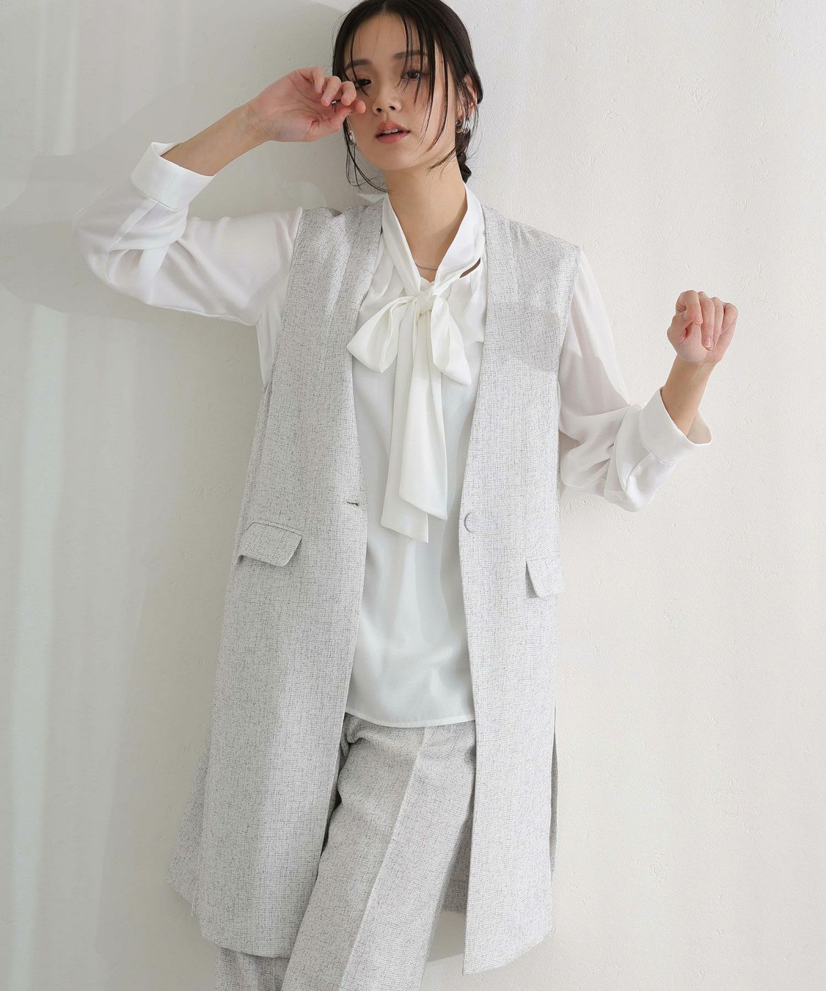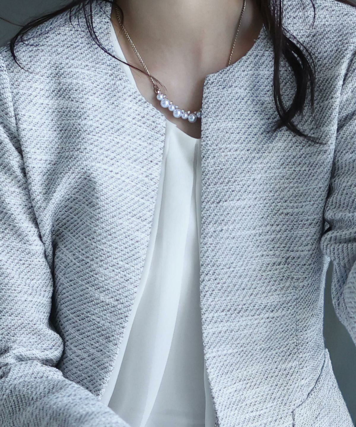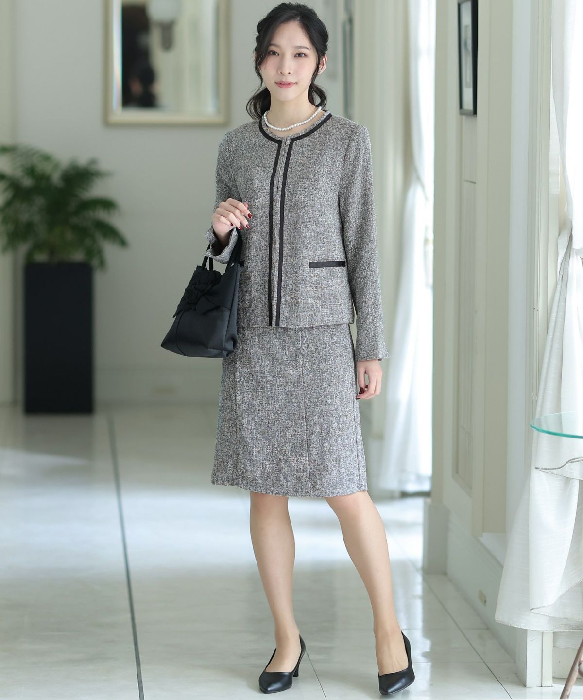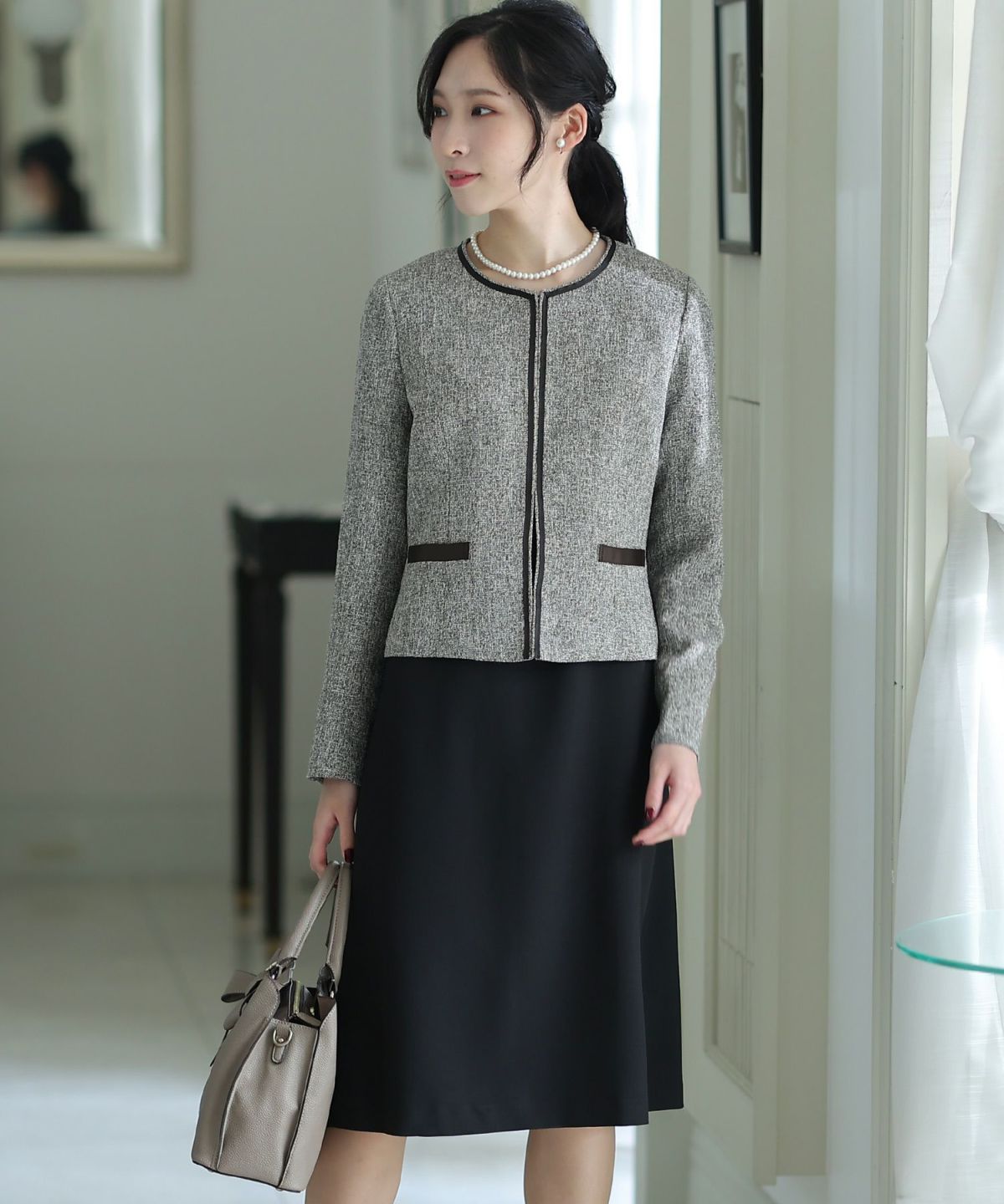 オフの日やカジュアルなイベントには、リラックス感のあるスーツがおすすめです。軽やかな素材と明るいカラーで、柔らかい雰囲気をプラス。