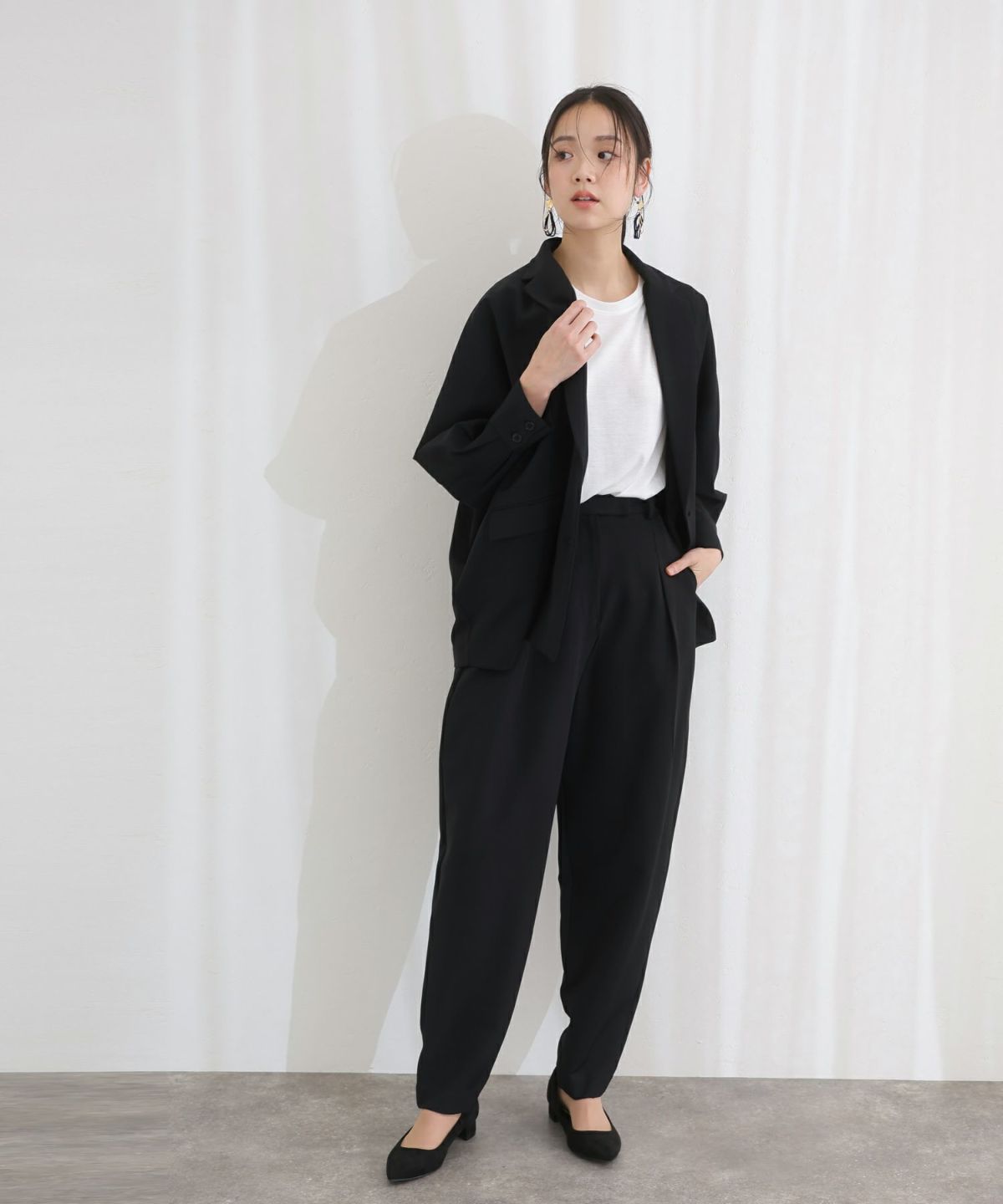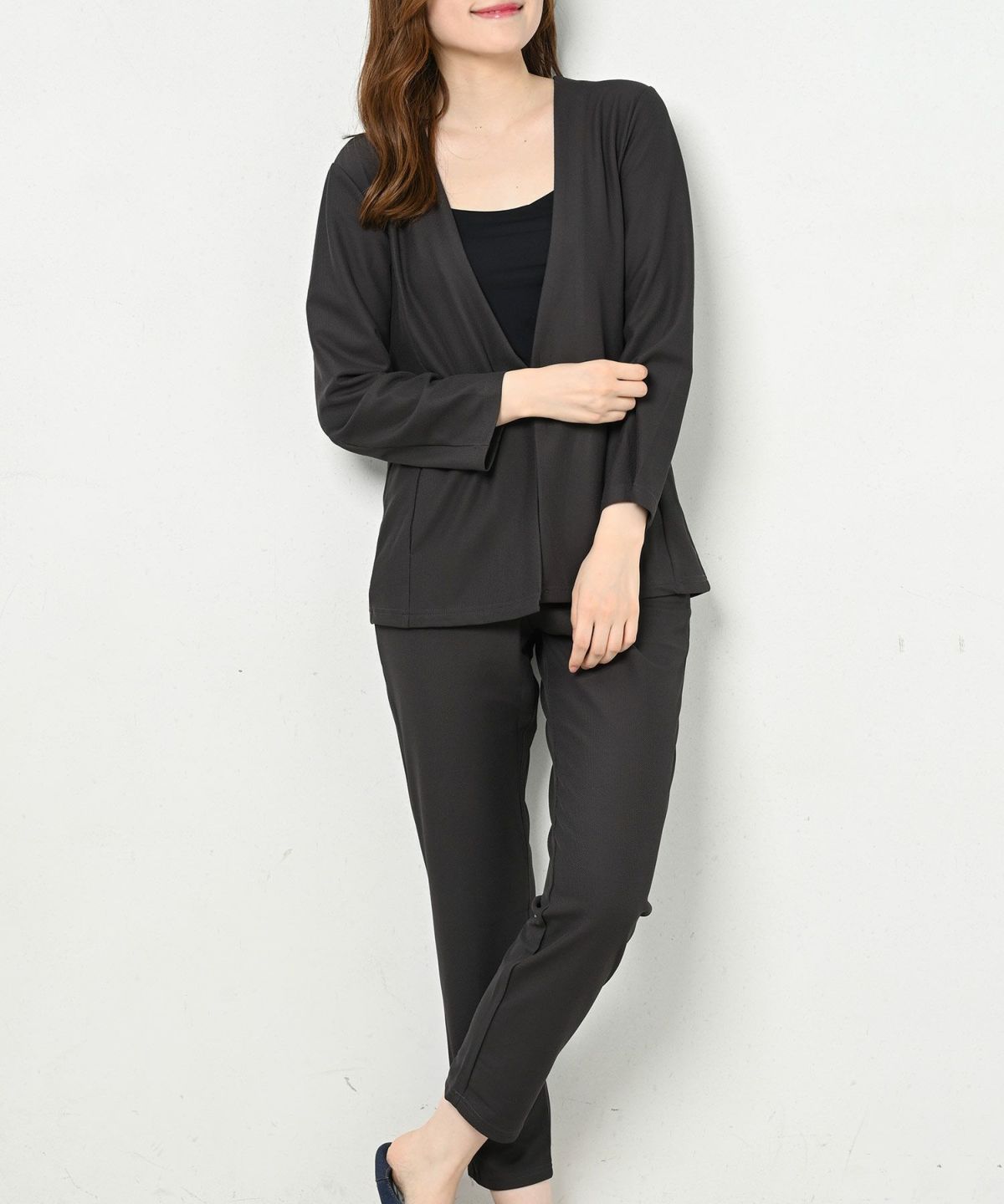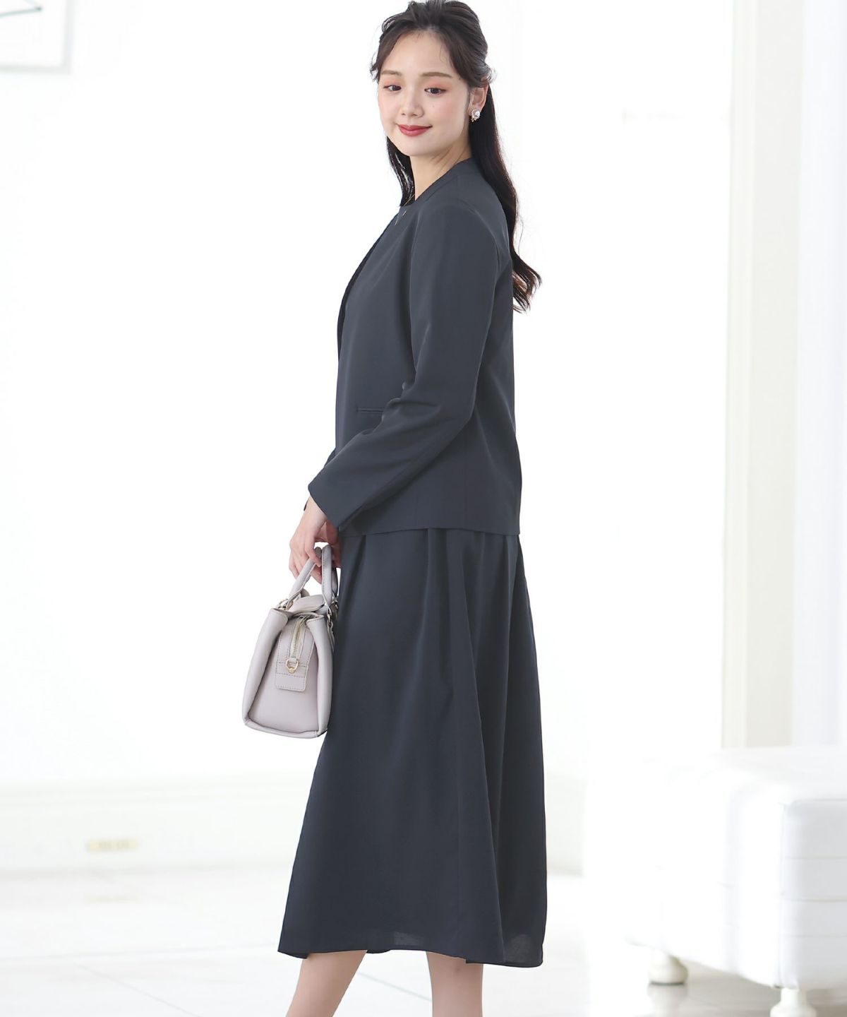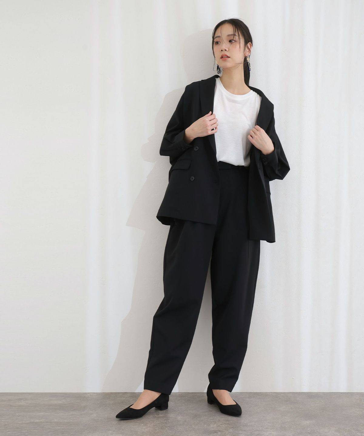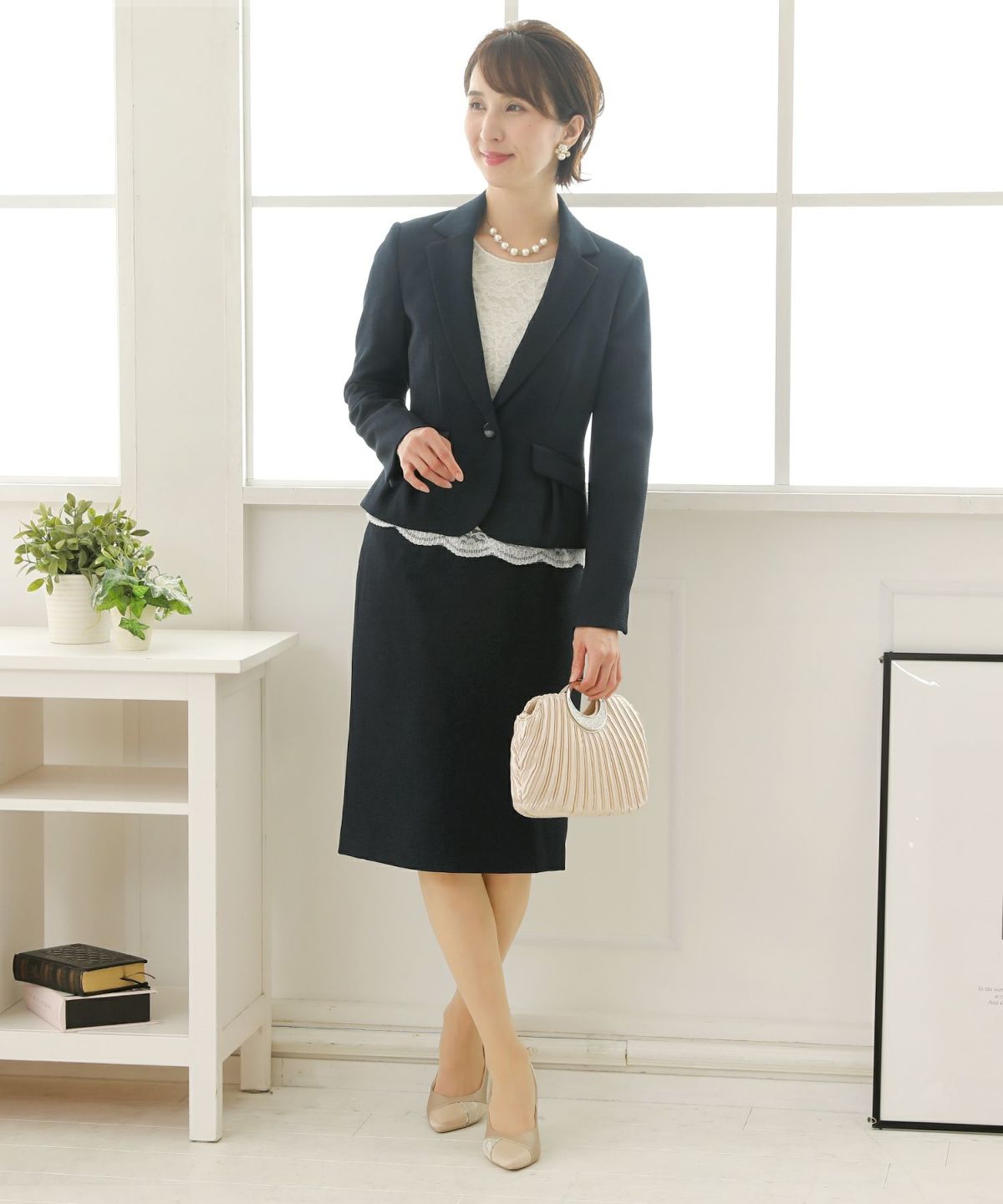 オフの日やカジュアルなイベントには、リラックス感のあるスーツがおすすめです。軽やかな素材と明るいカラーで、柔らかい雰囲気をプラス。
