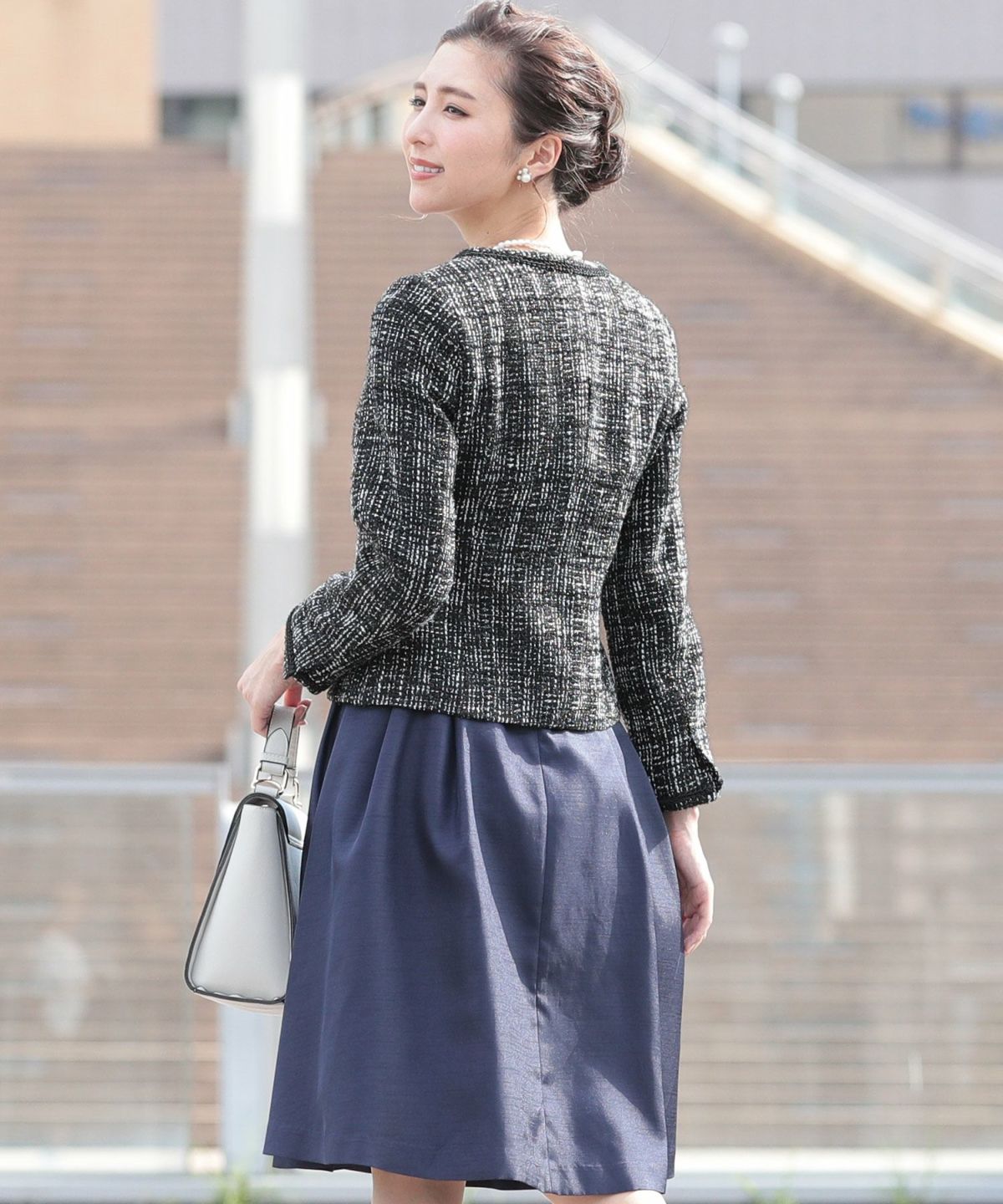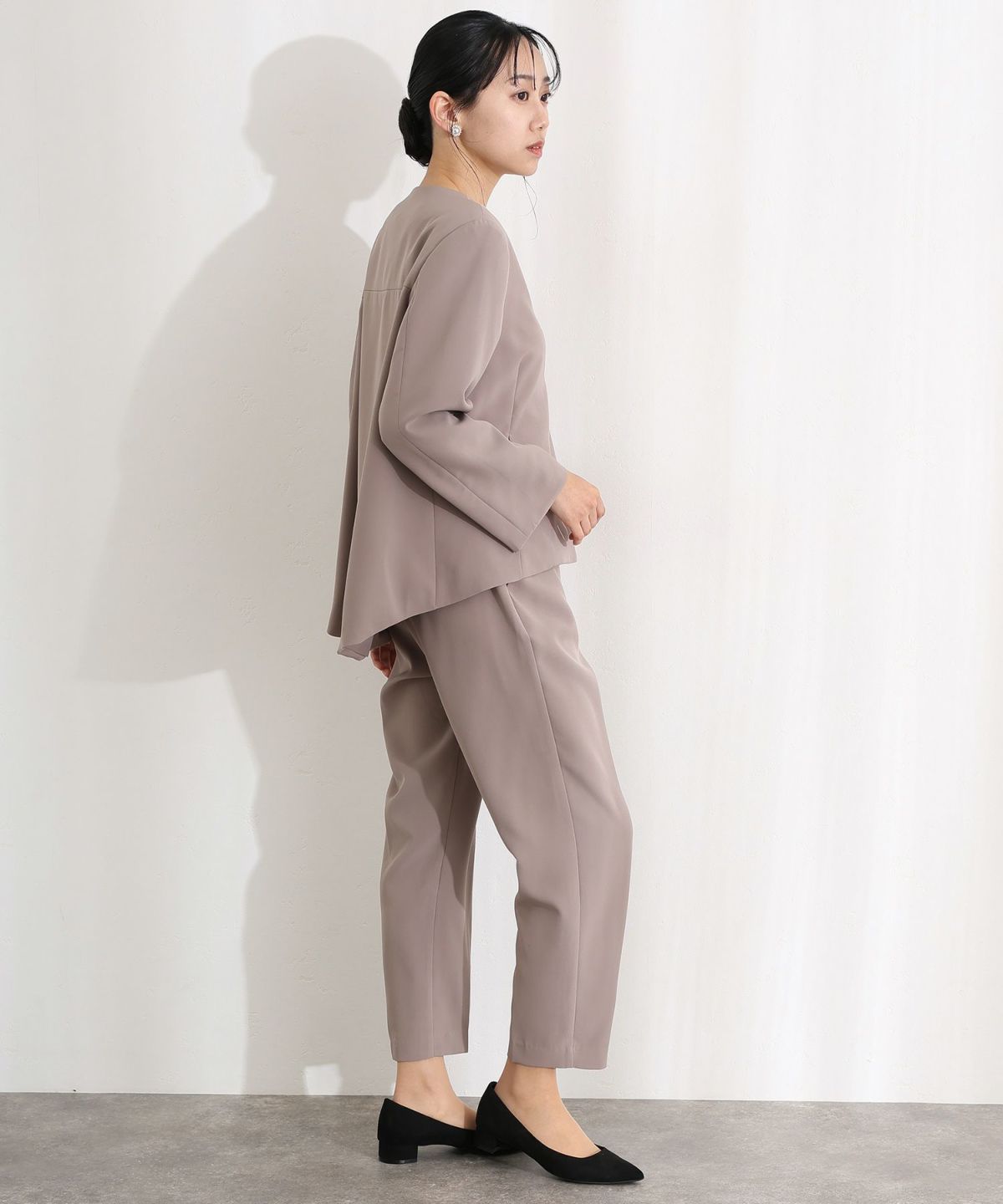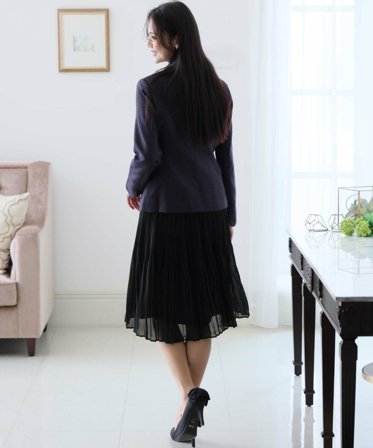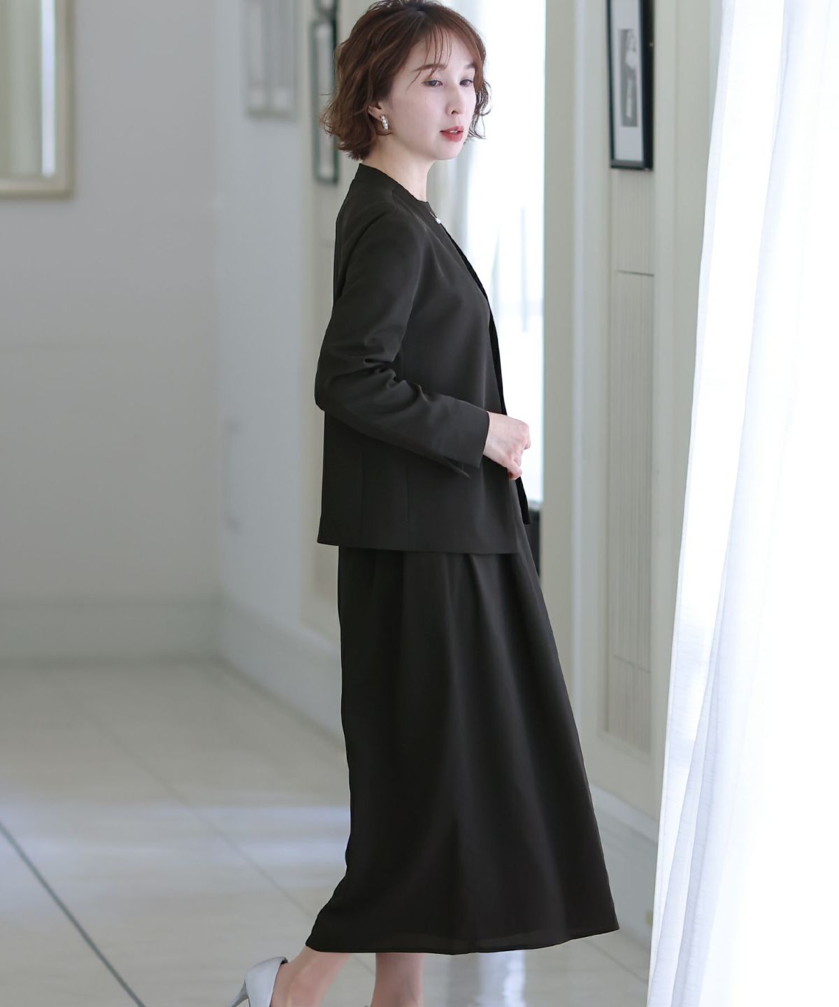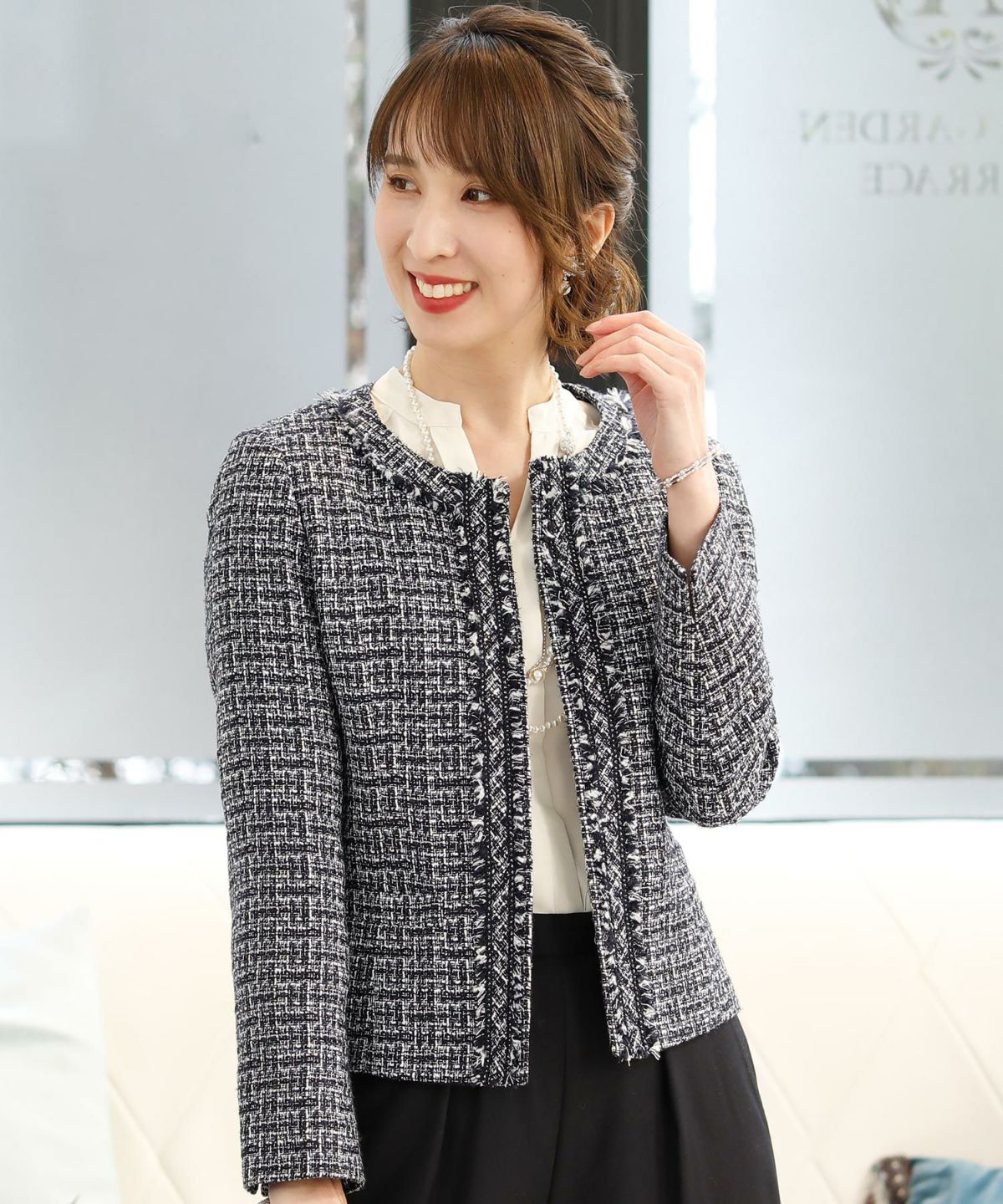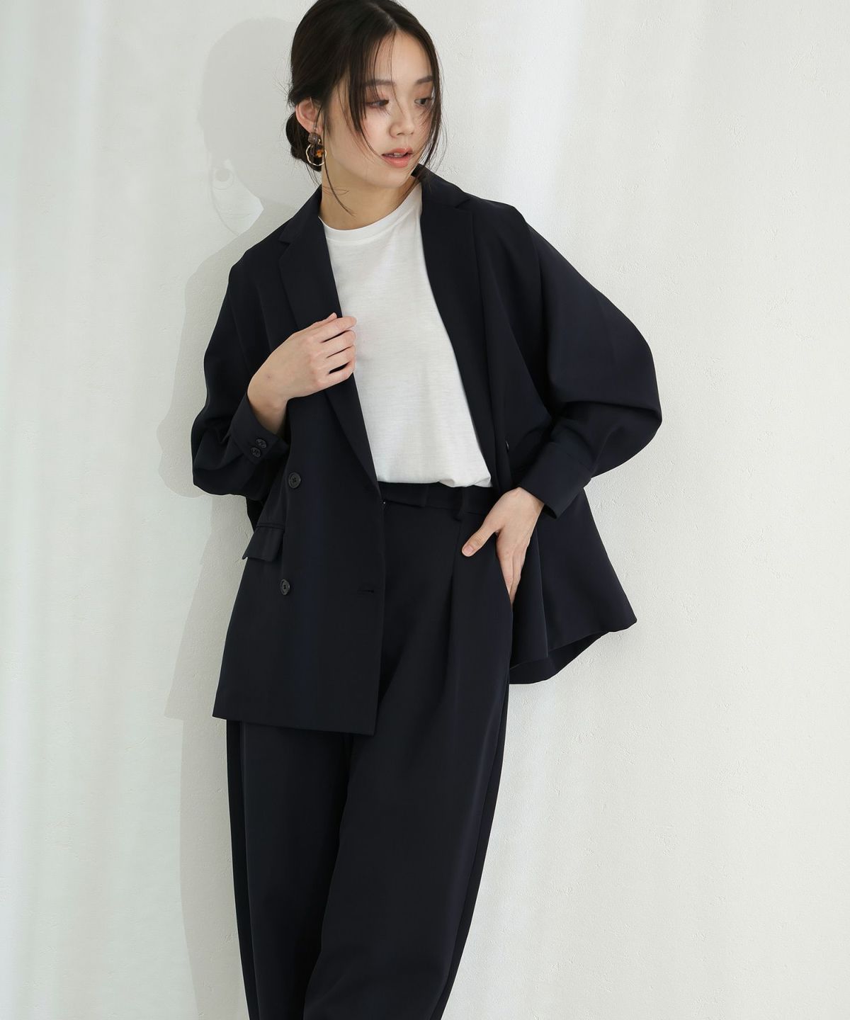 オフの日やカジュアルなイベントには、リラックス感のあるスーツがおすすめです。軽やかな素材と明るいカラーで、柔らかい雰囲気をプラス。