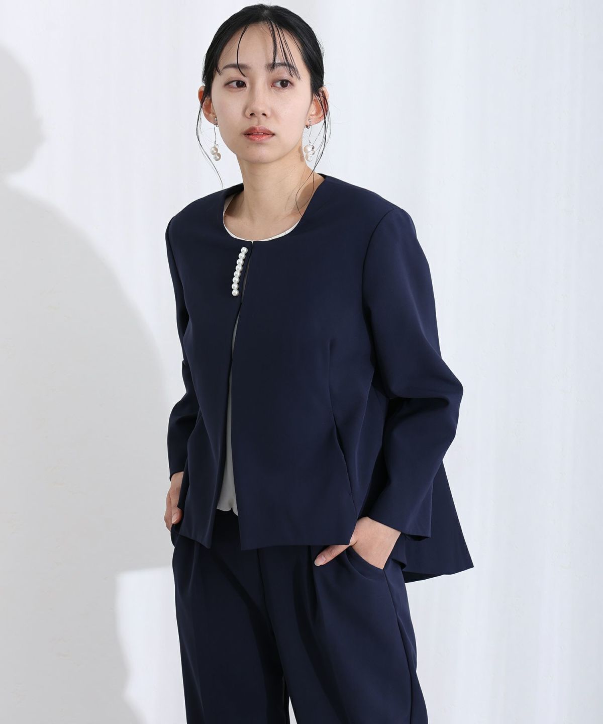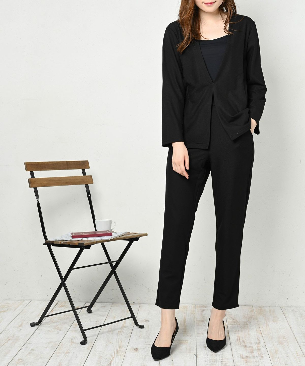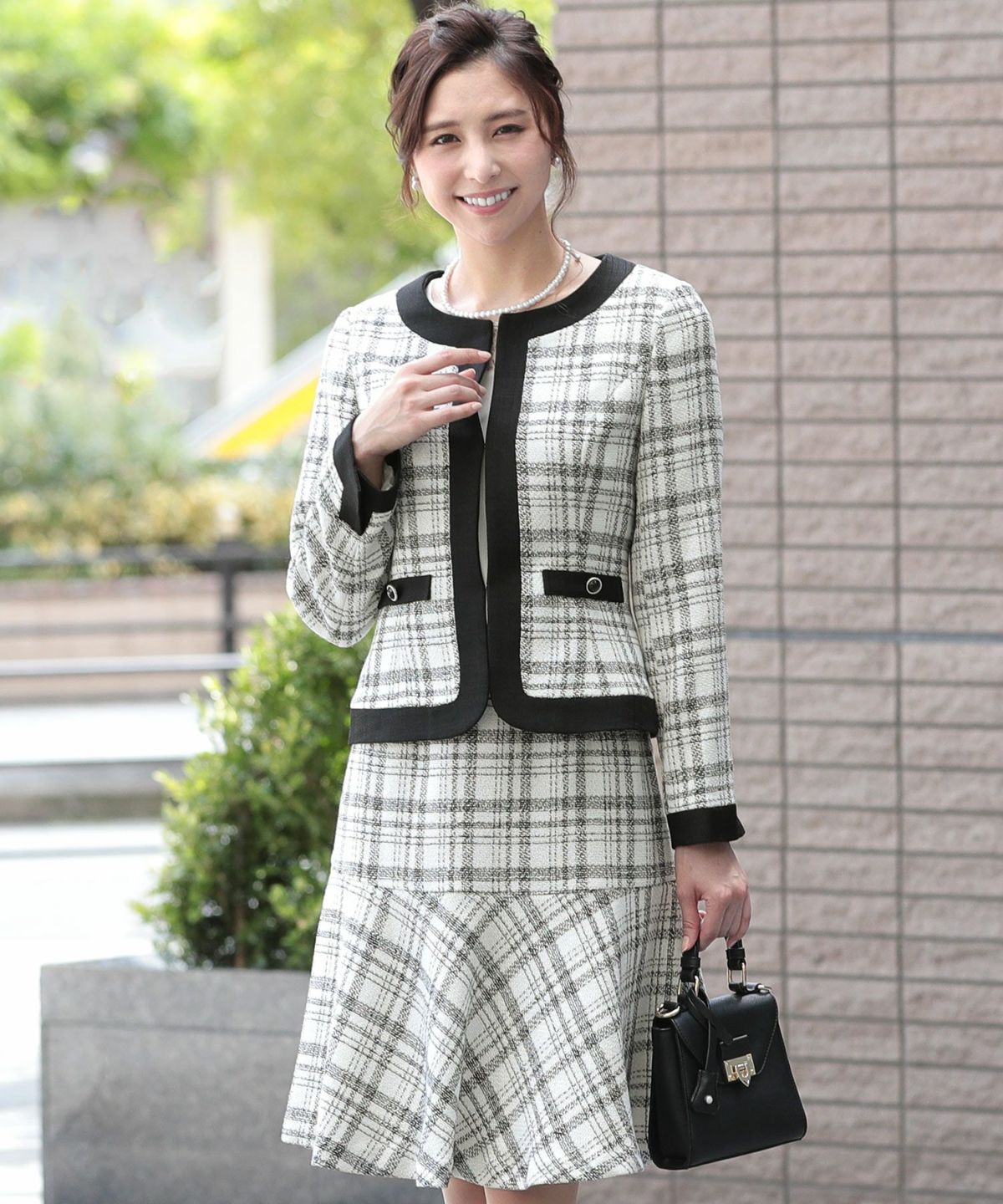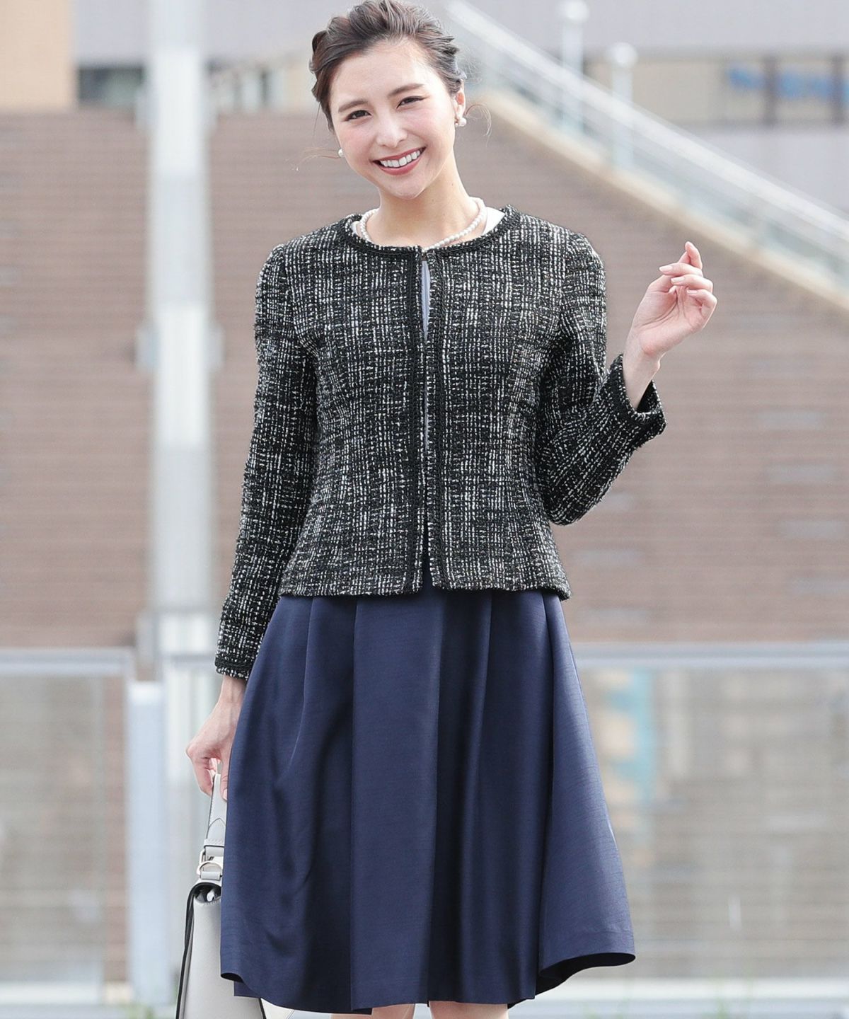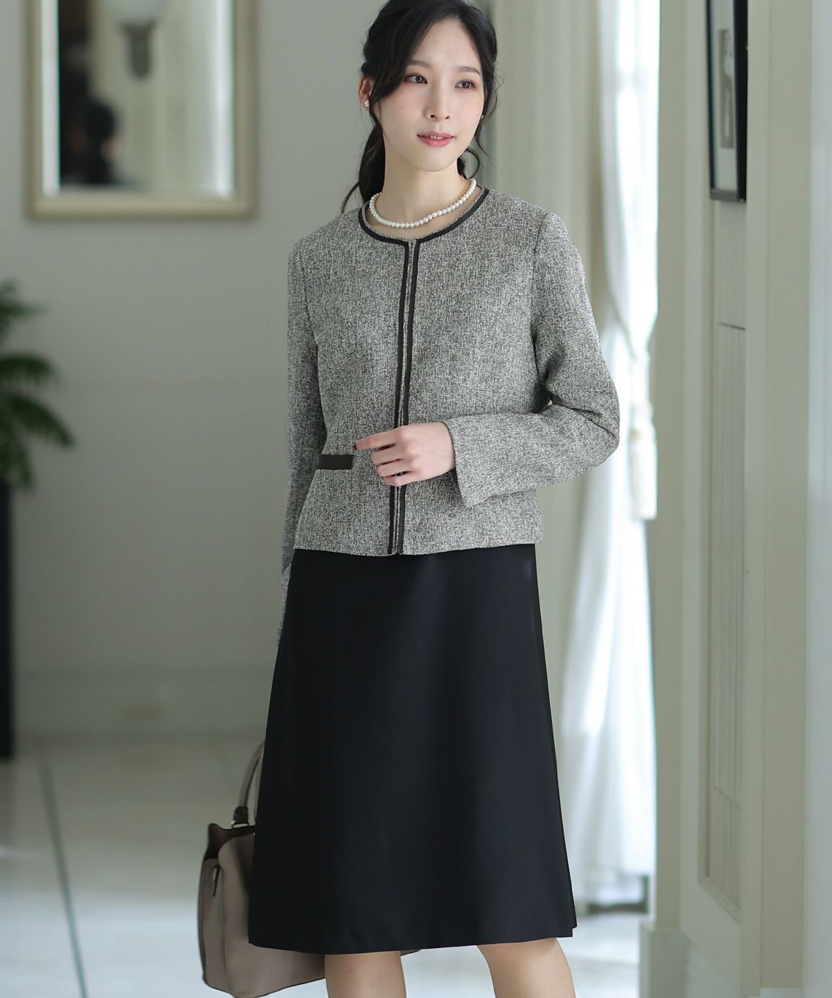 オフの日やカジュアルなイベントには、リラックス感のあるスーツがおすすめです。軽やかな素材と明るいカラーで、柔らかい雰囲気をプラス。