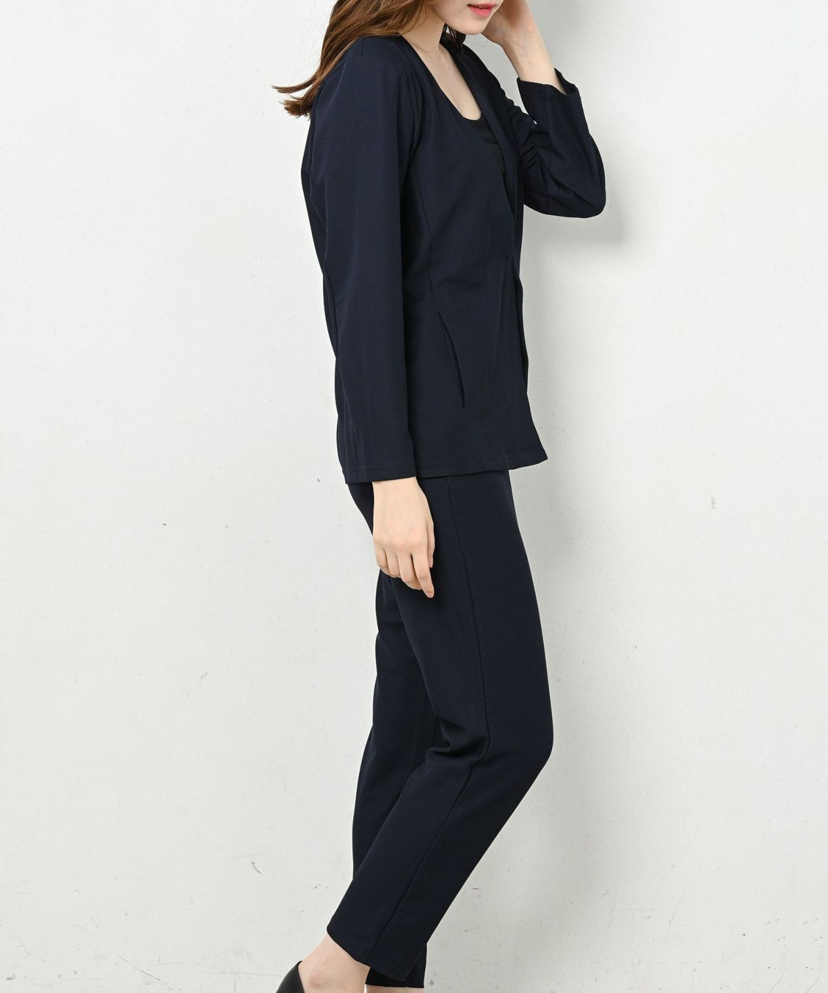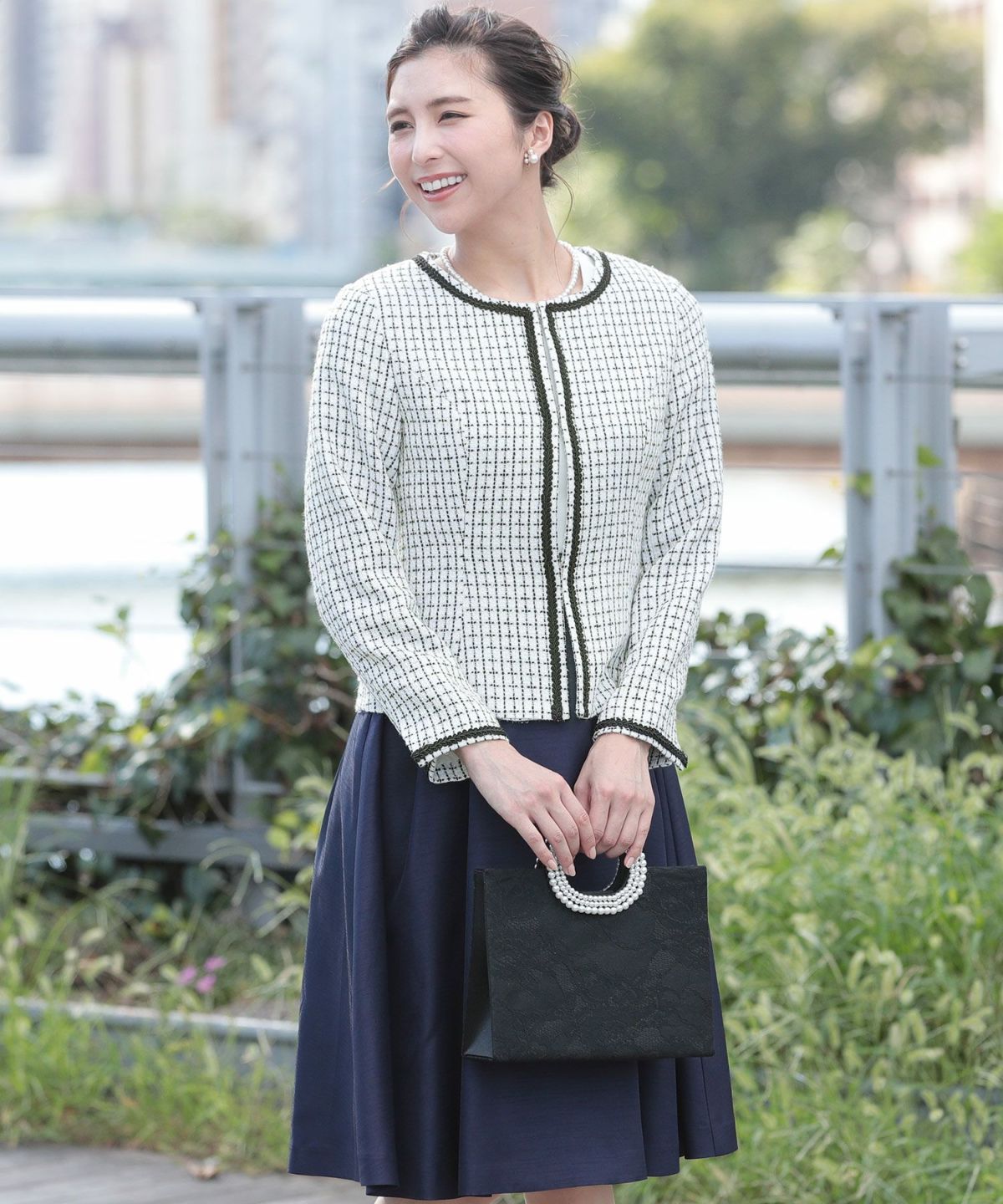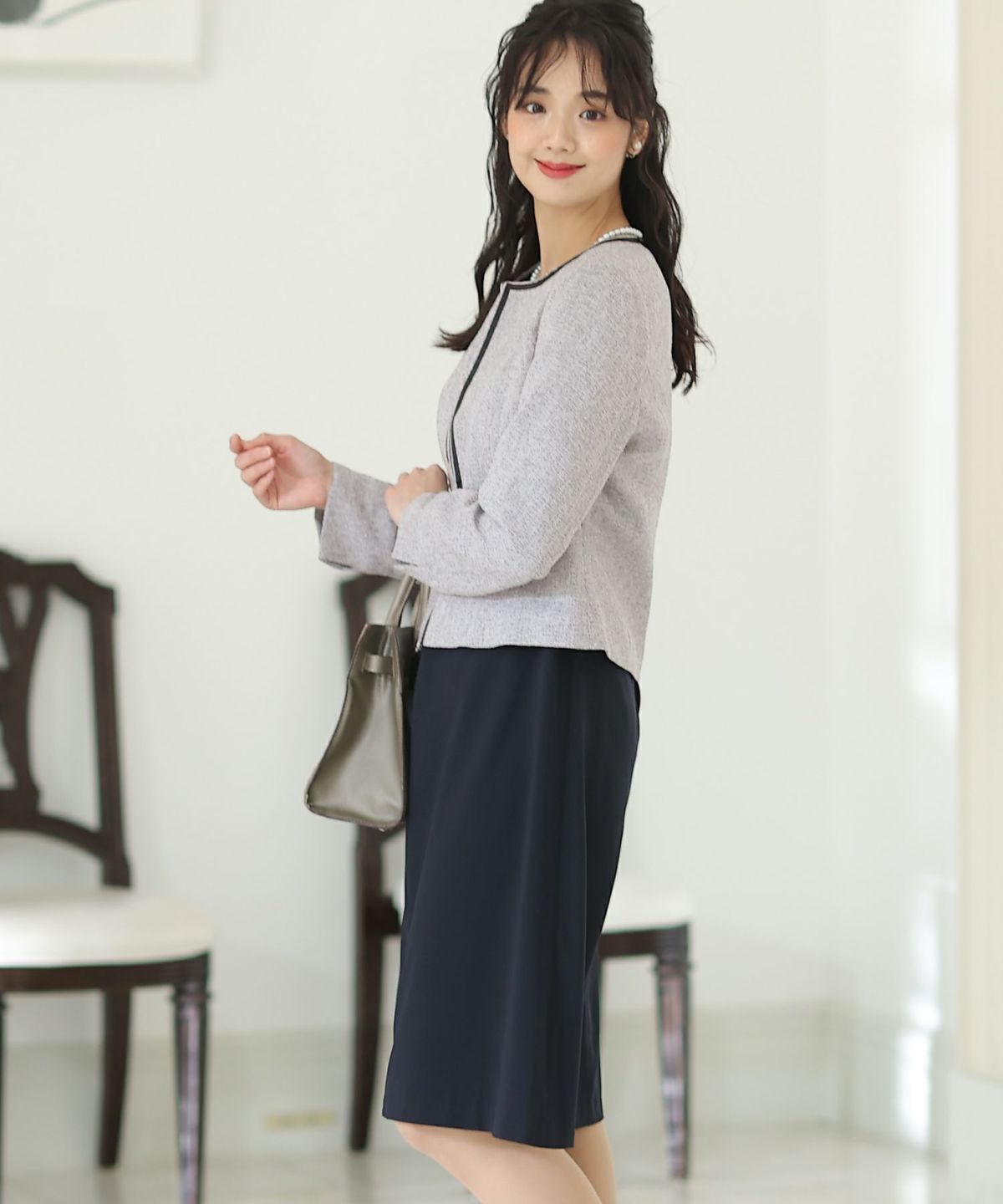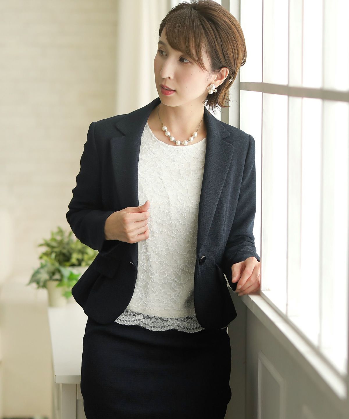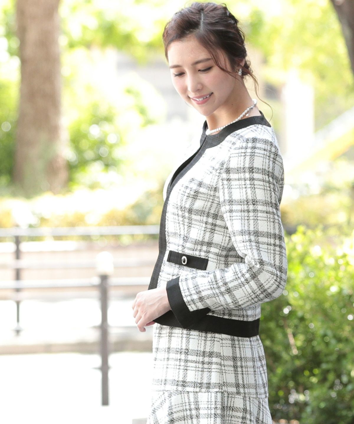 オフの日やカジュアルなイベントには、リラックス感のあるスーツがおすすめです。軽やかな素材と明るいカラーで、柔らかい雰囲気をプラス。