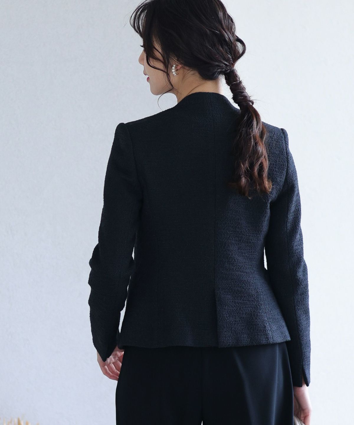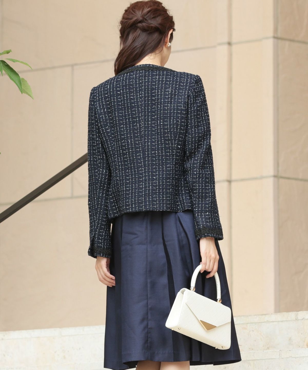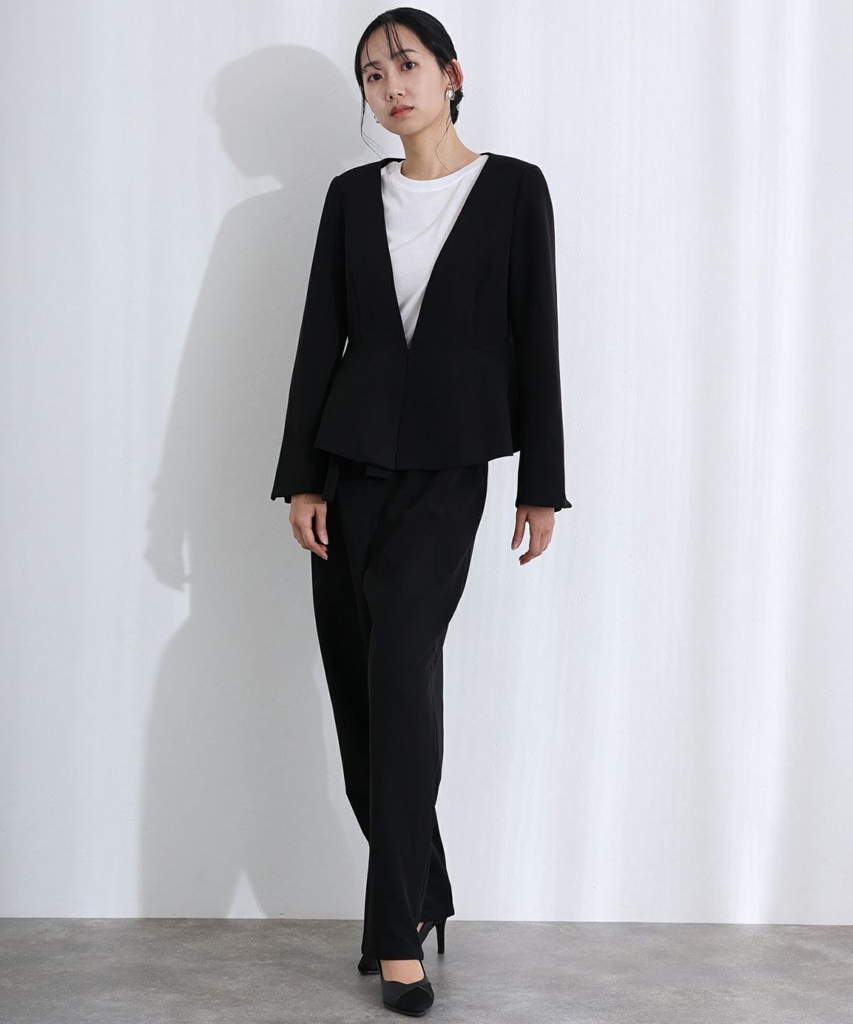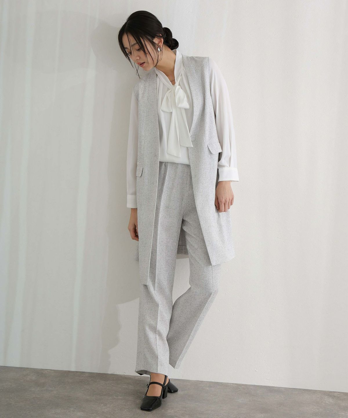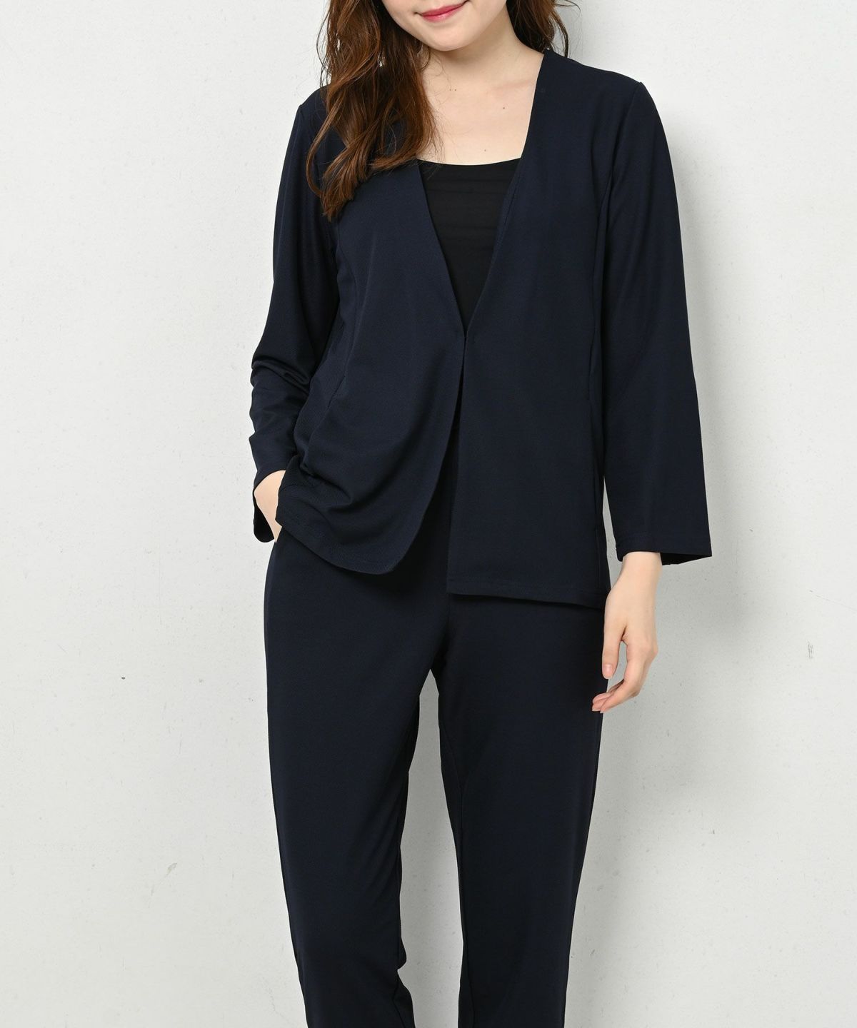 オフの日やカジュアルなイベントには、リラックス感のあるスーツがおすすめです。軽やかな素材と明るいカラーで、柔らかい雰囲気をプラス。