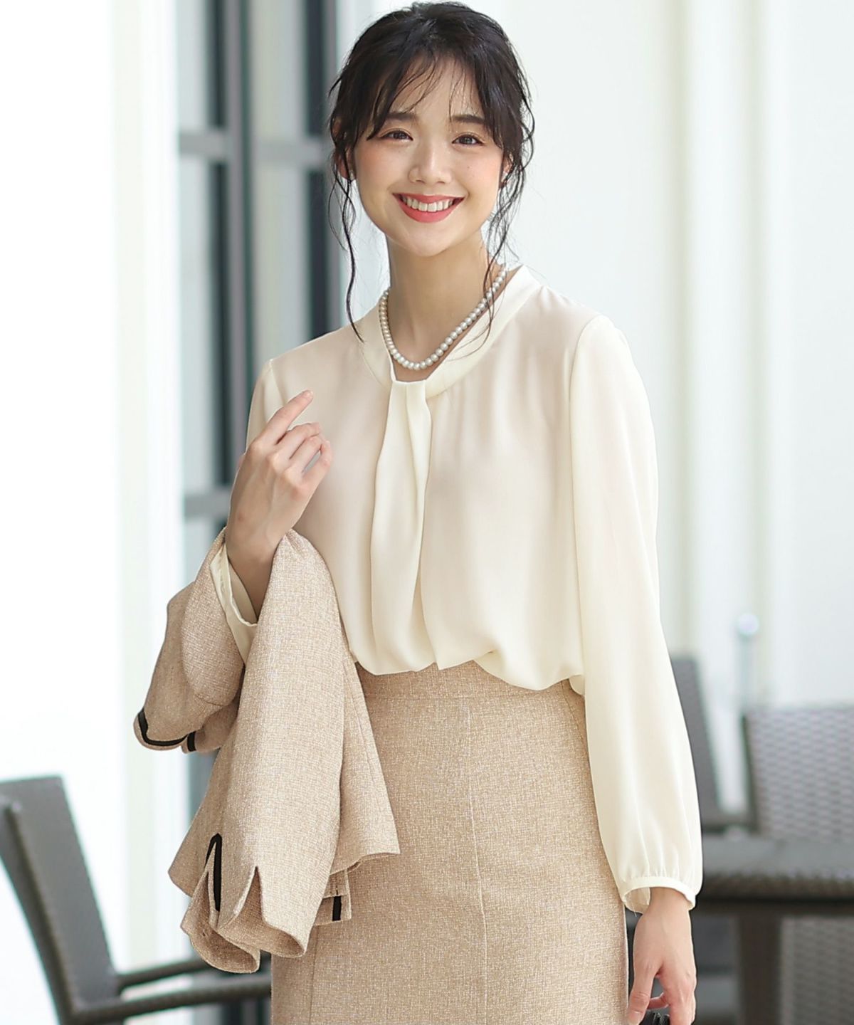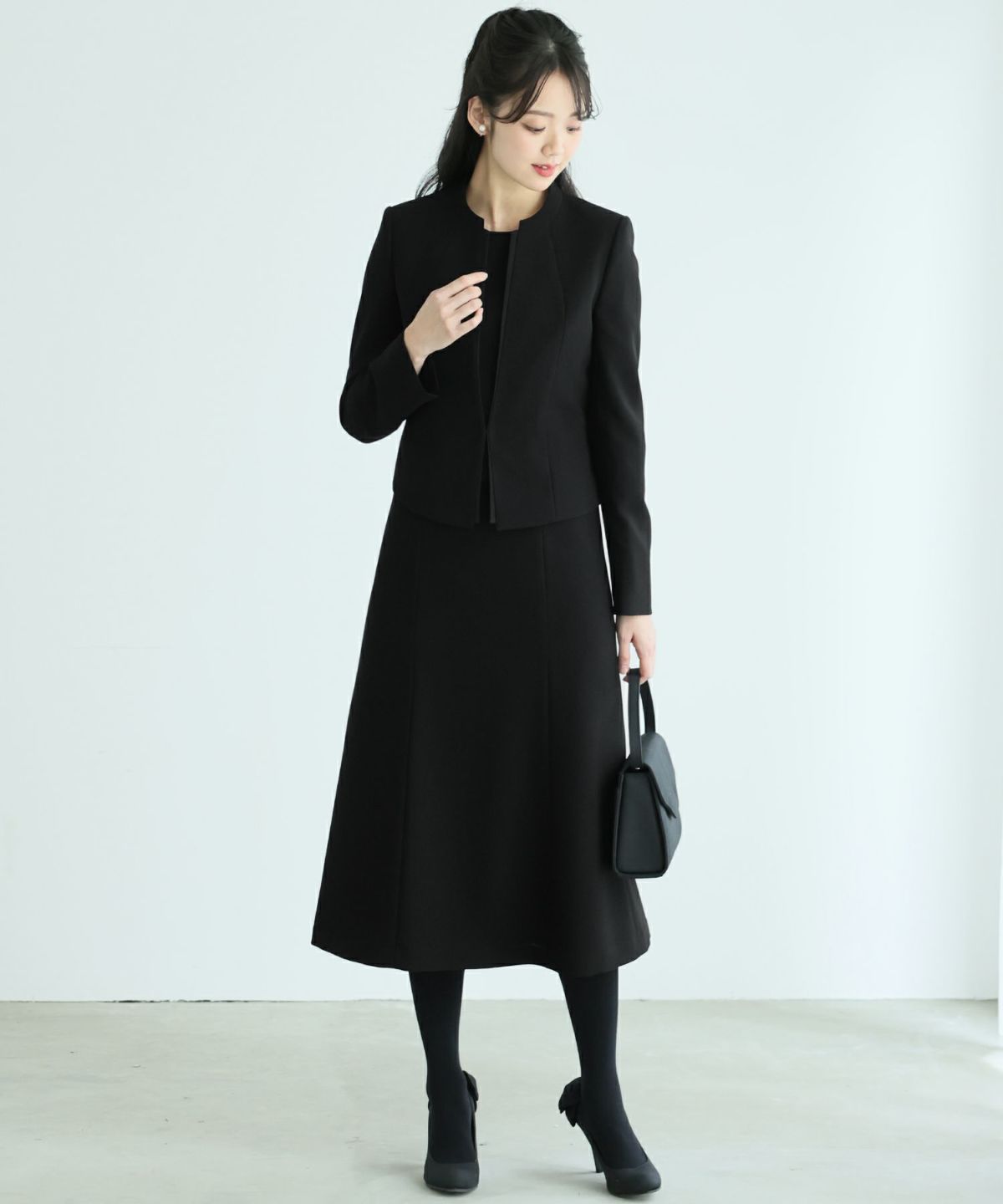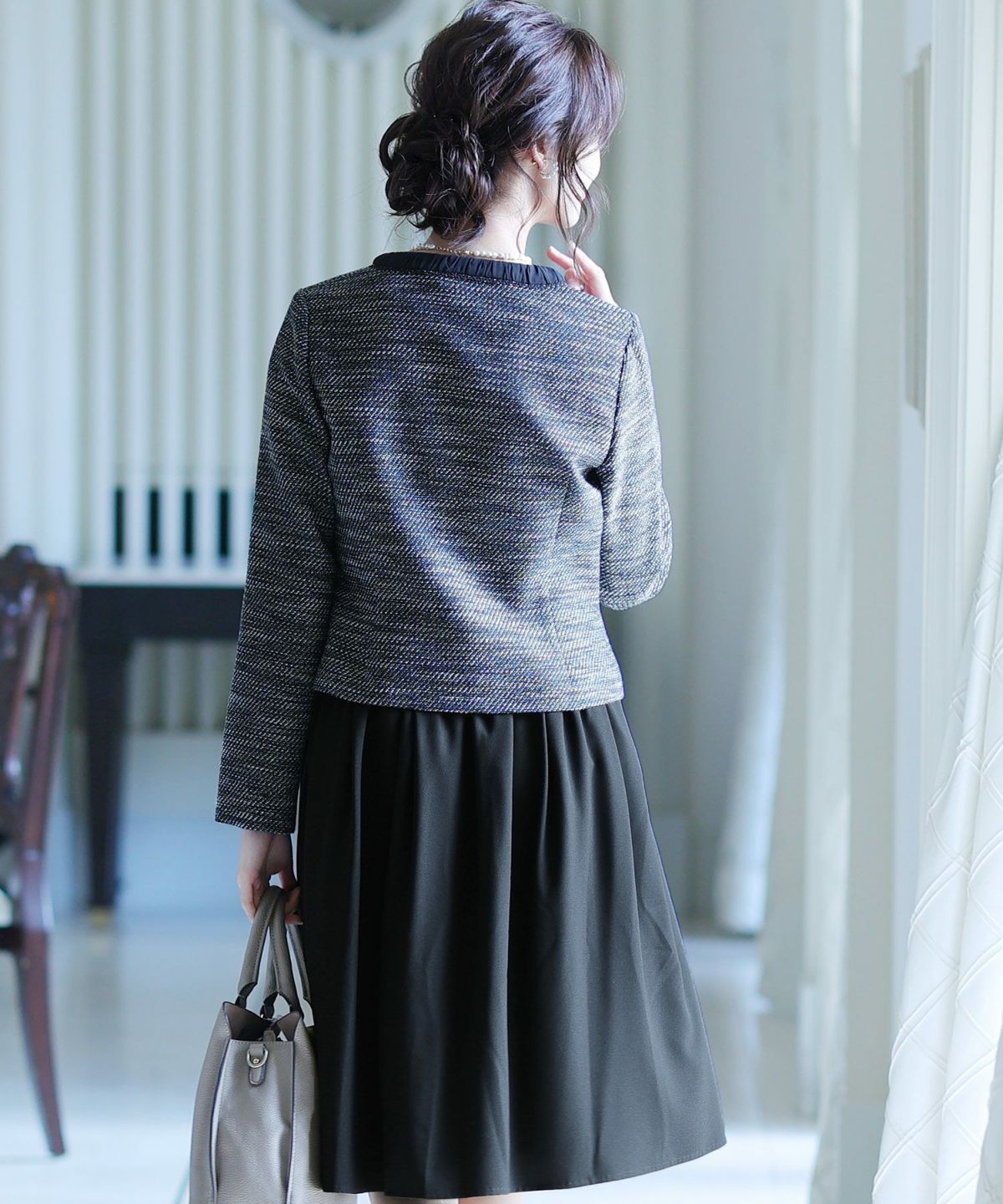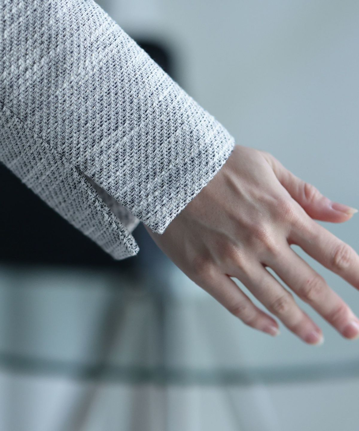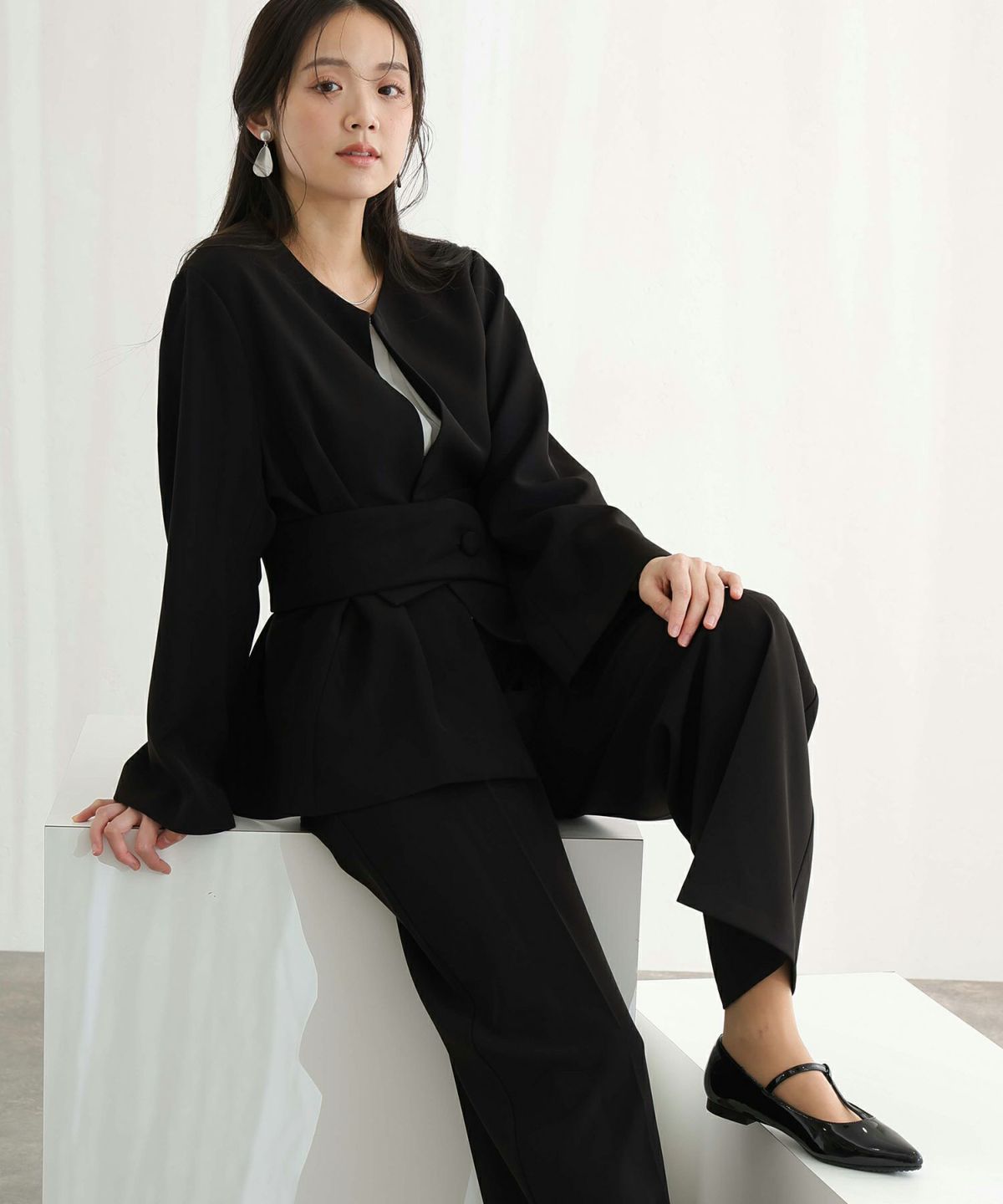オフの日やカジュアルなイベントには、リラックス感のあるスーツがおすすめです。軽やかな素材と明るいカラーで、柔らかい雰囲気をプラス。