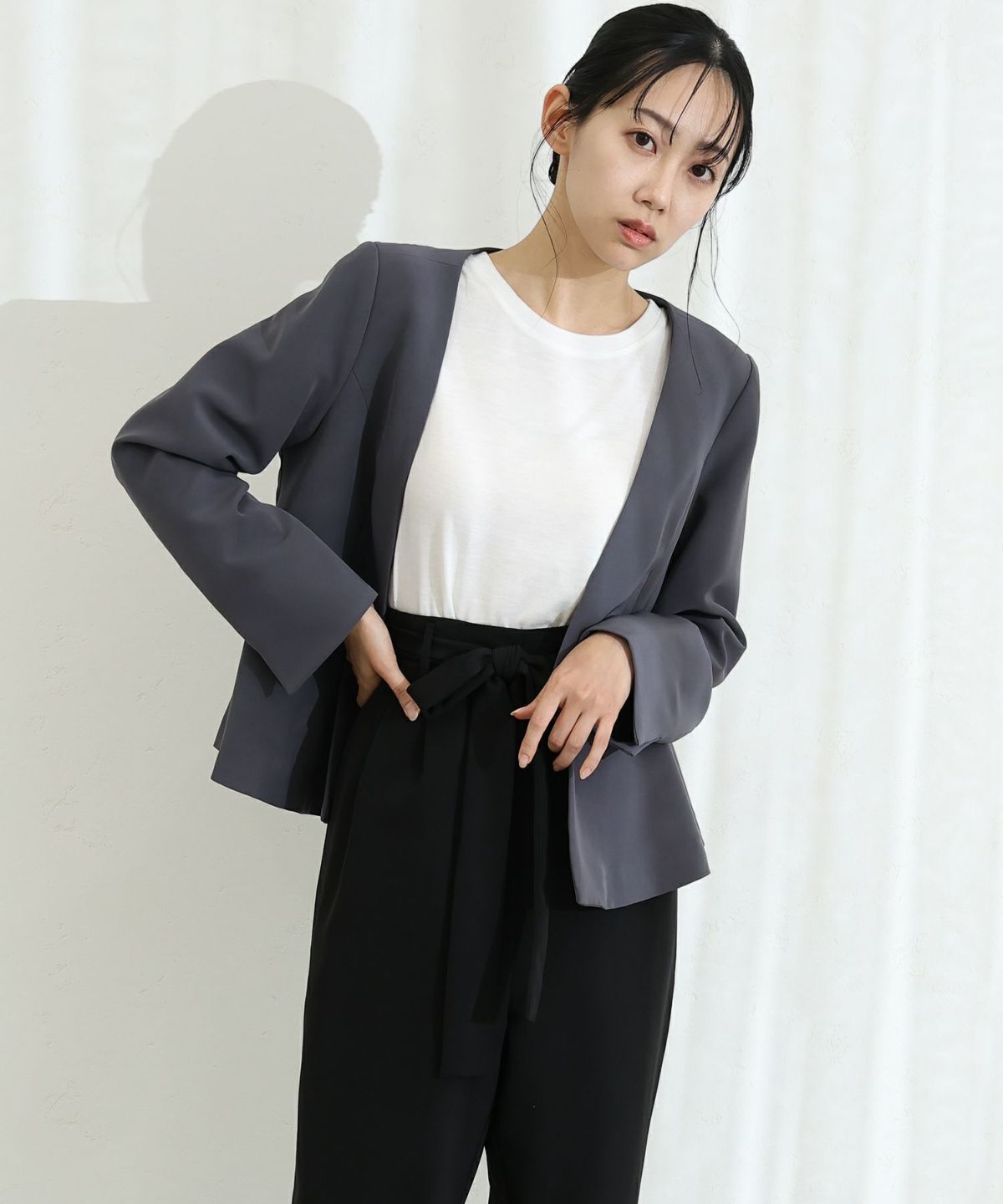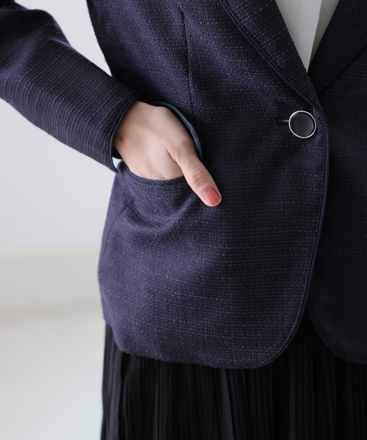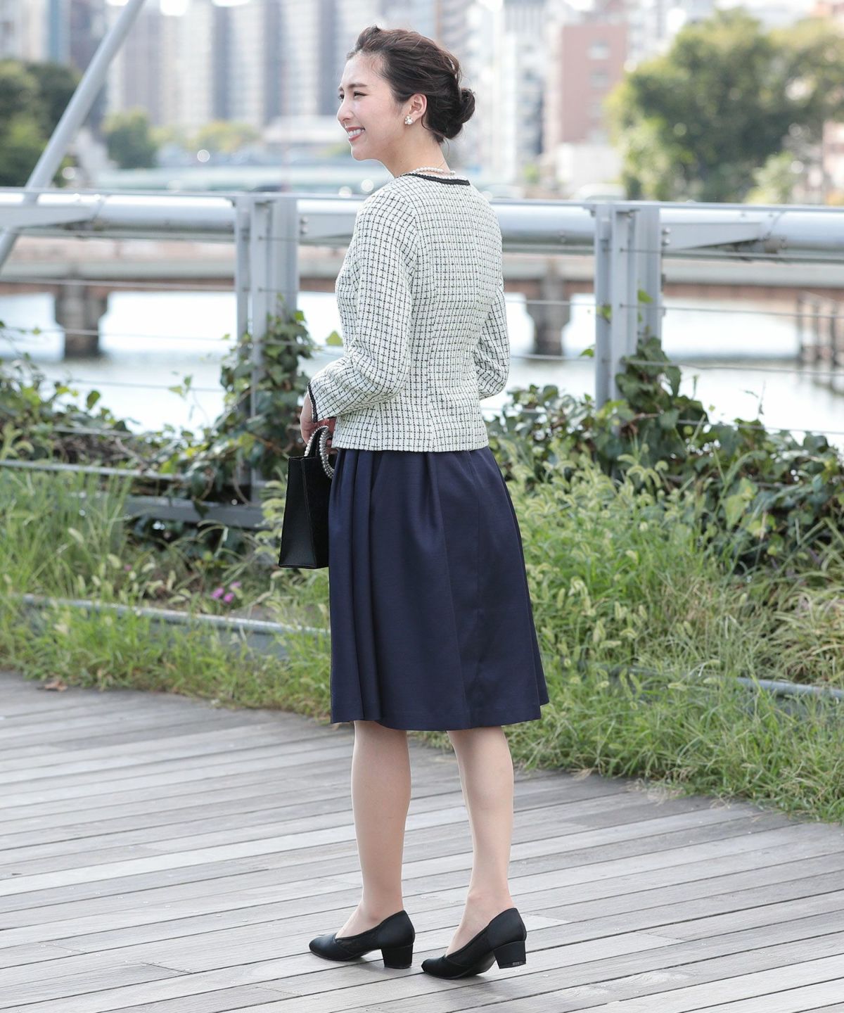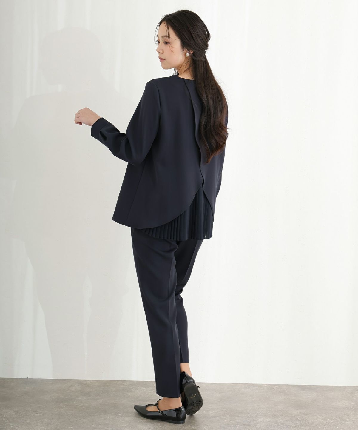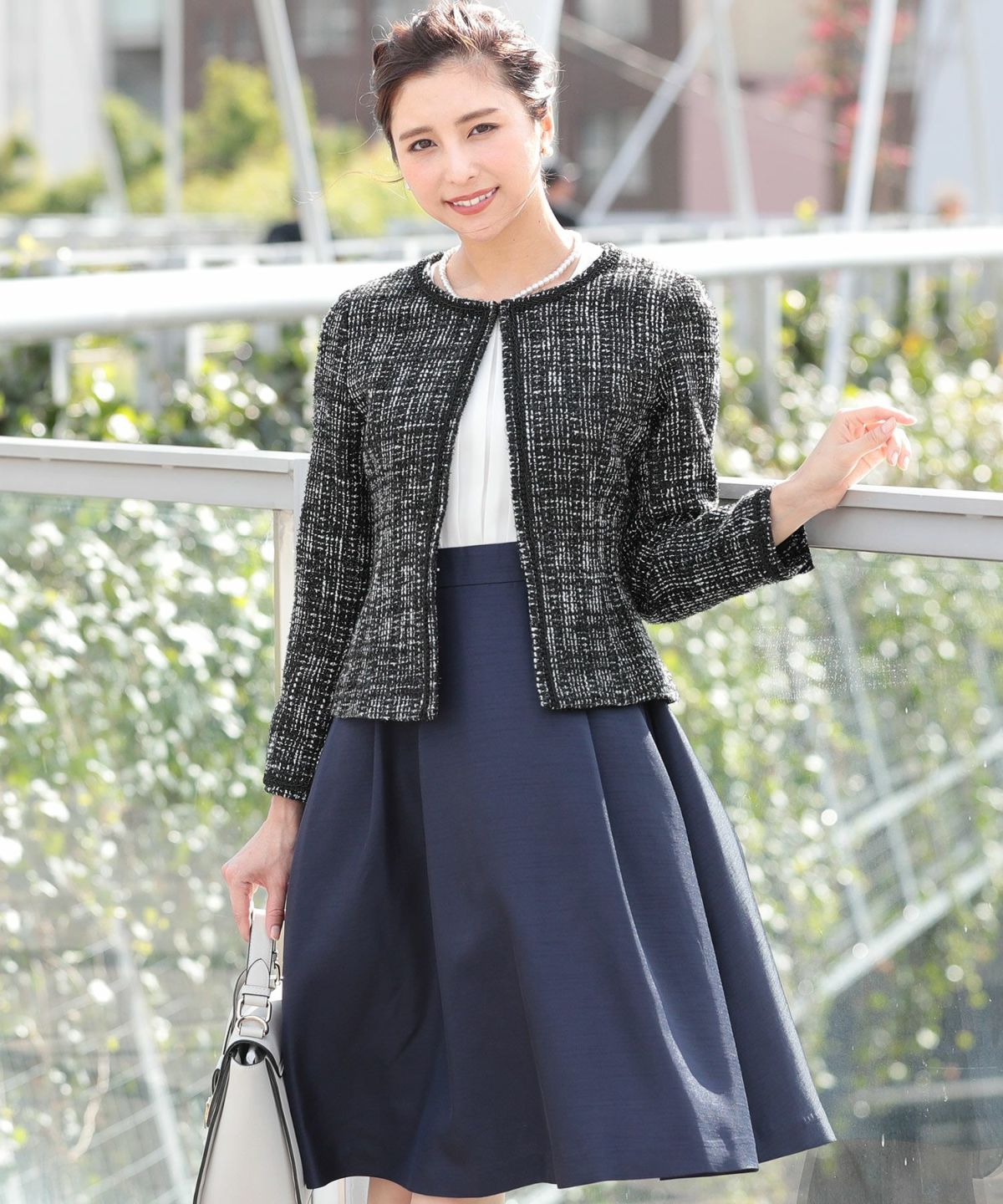 オフの日やカジュアルなイベントには、リラックス感のあるスーツがおすすめです。軽やかな素材と明るいカラーで、柔らかい雰囲気をプラス。