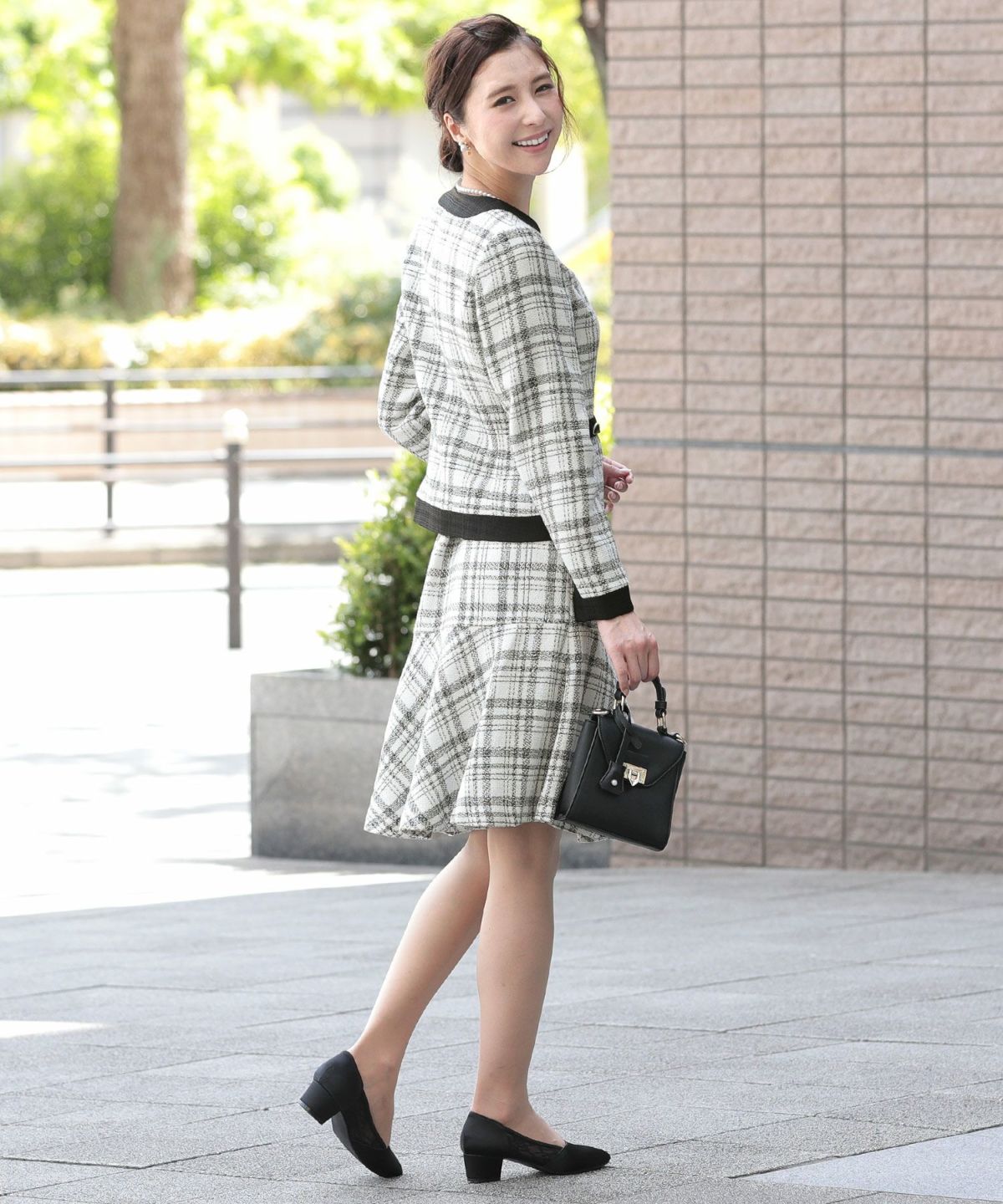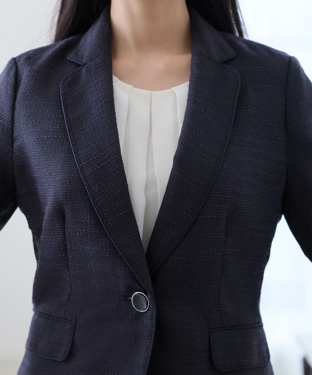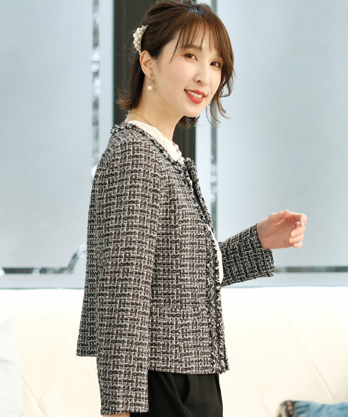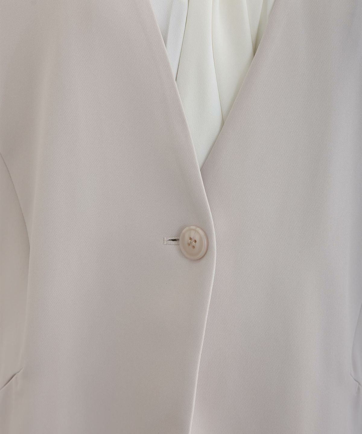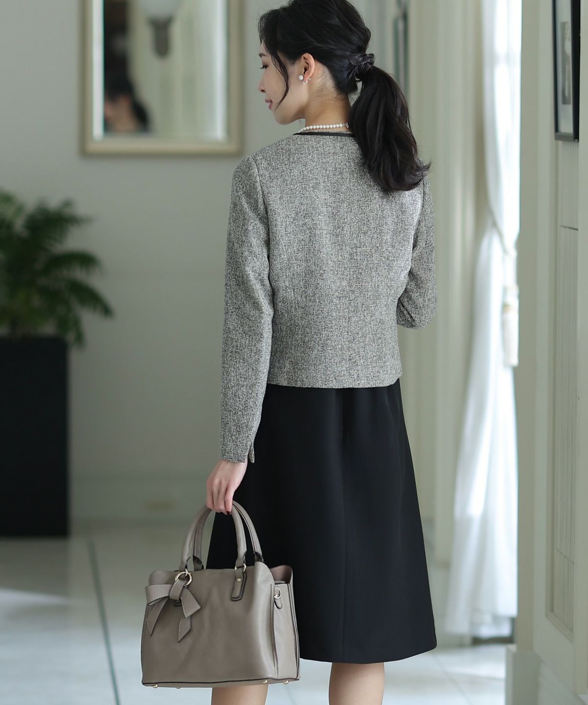 オフの日やカジュアルなイベントには、リラックス感のあるスーツがおすすめです。軽やかな素材と明るいカラーで、柔らかい雰囲気をプラス。