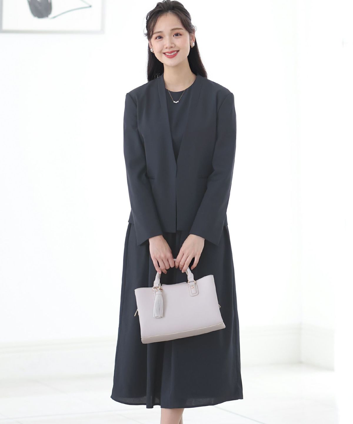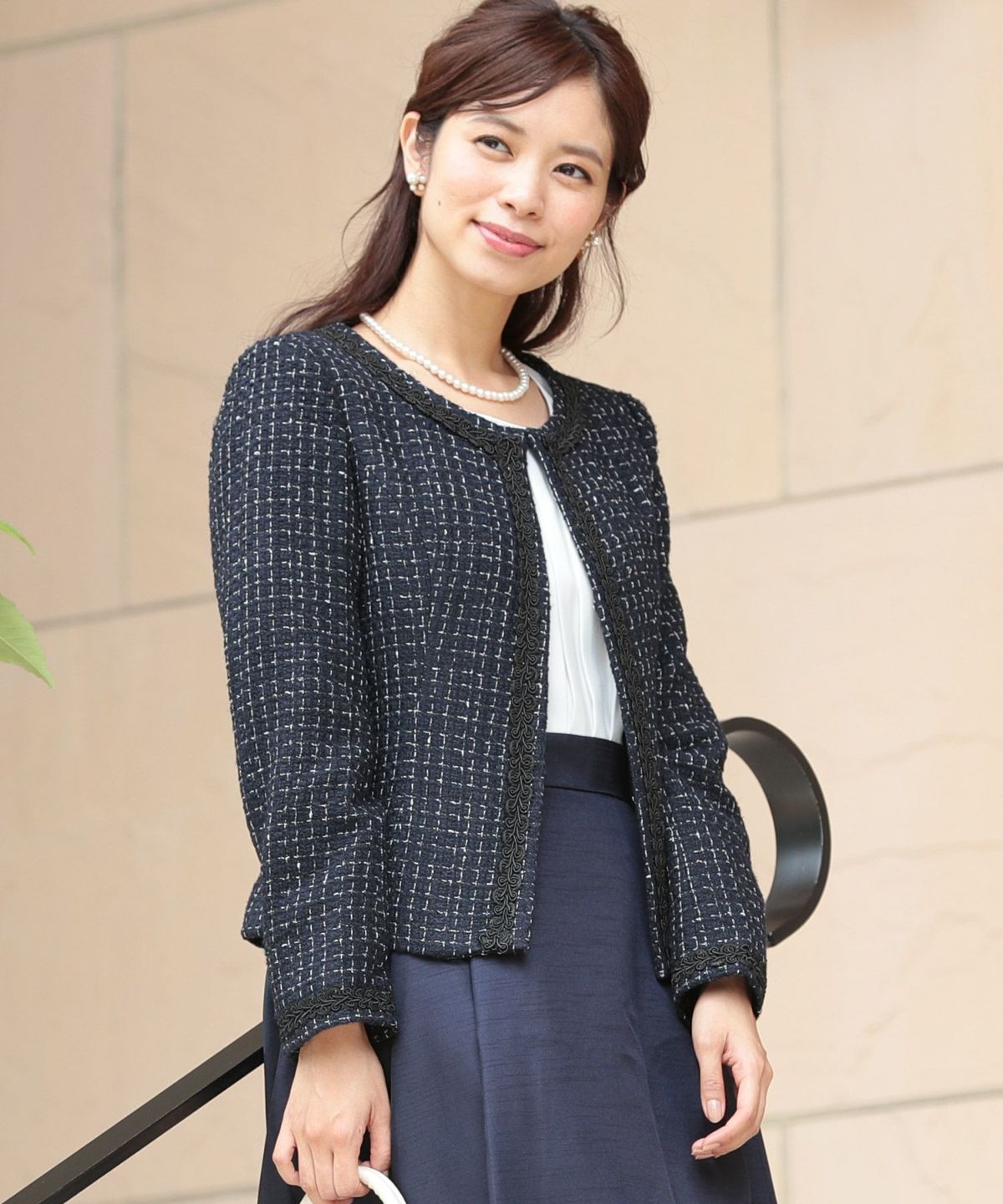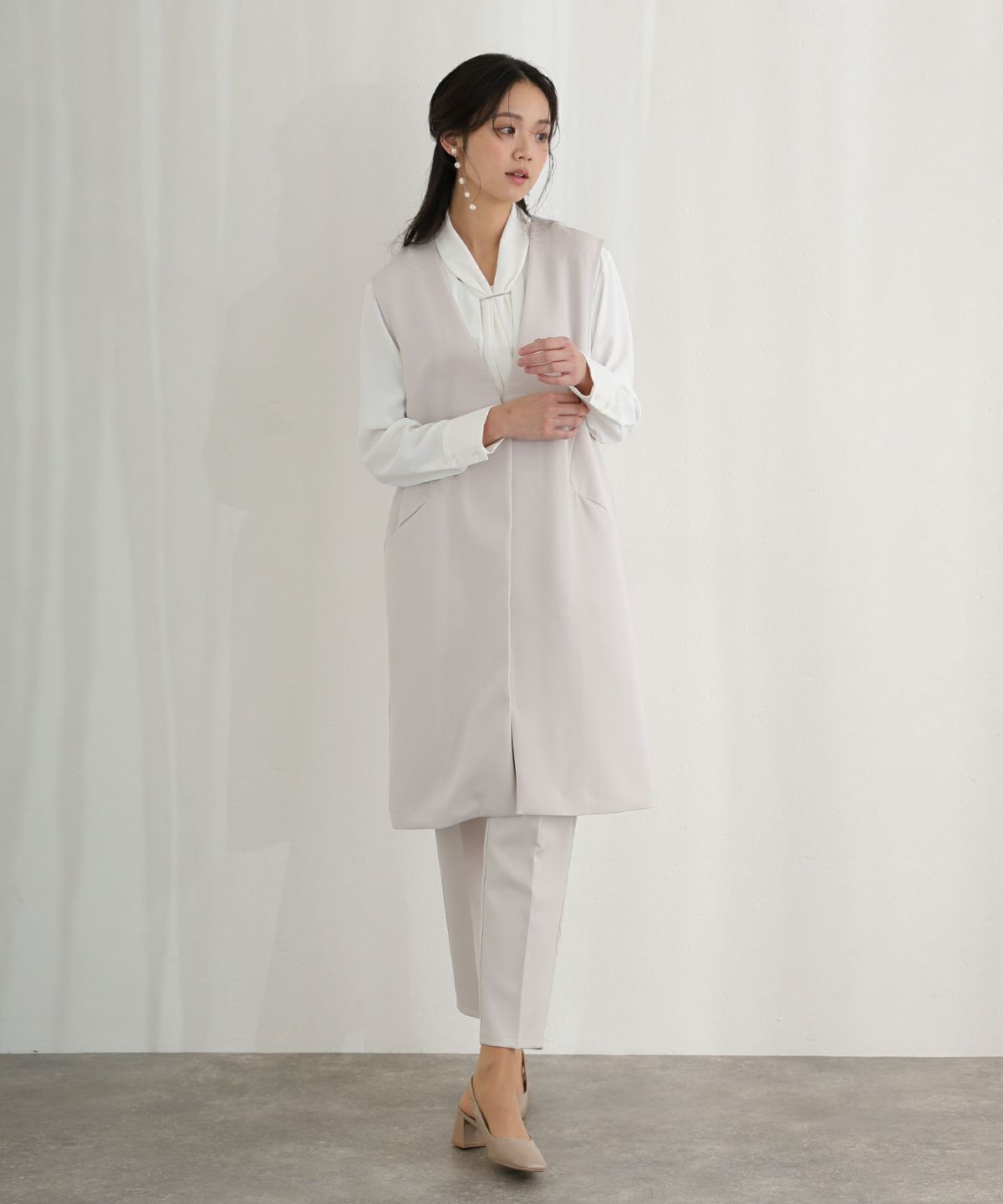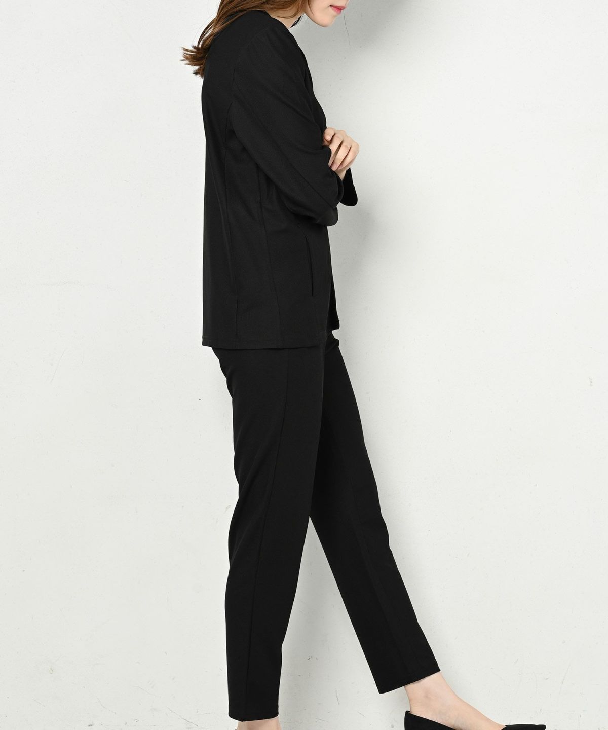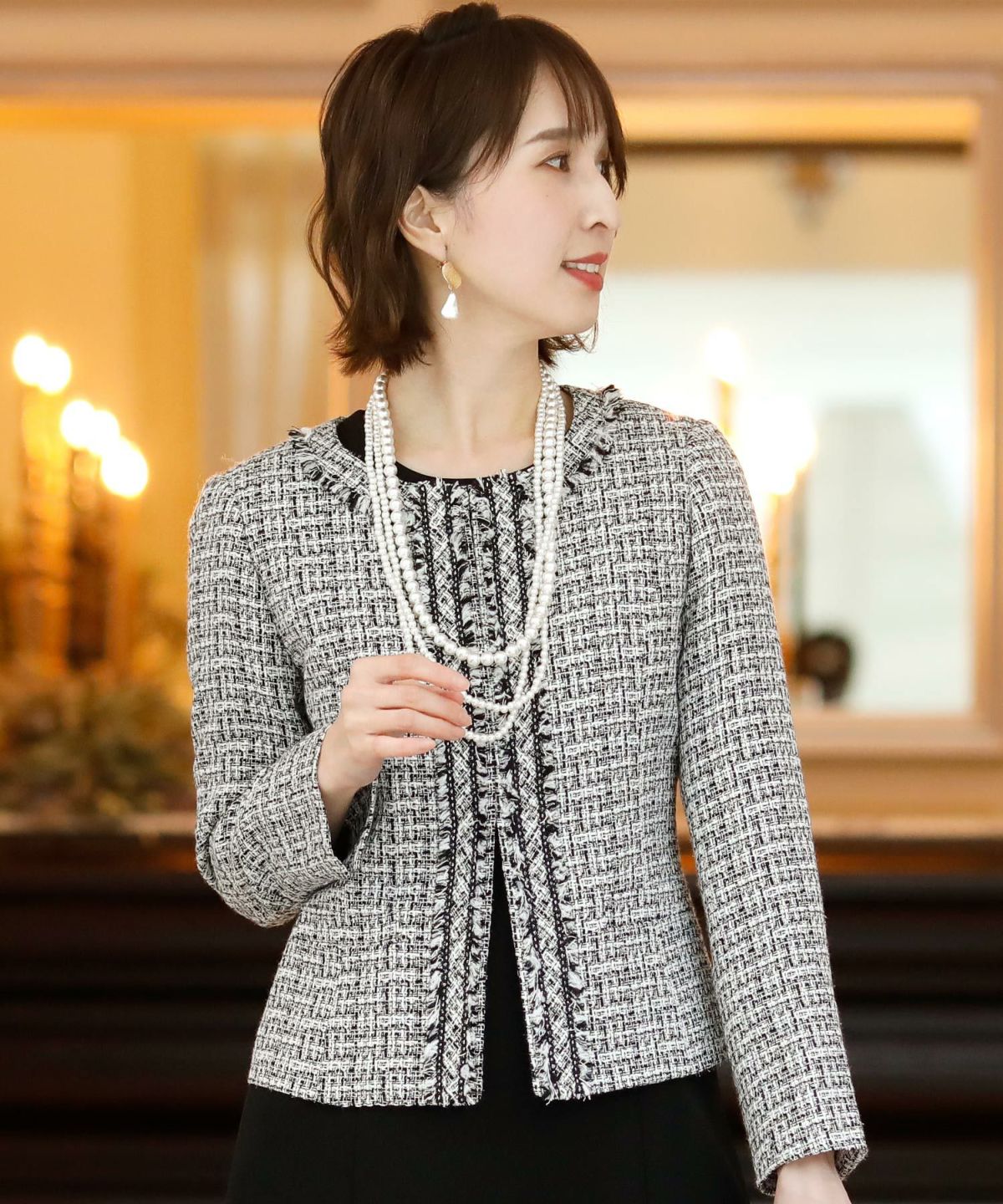 オフの日やカジュアルなイベントには、リラックス感のあるスーツがおすすめです。軽やかな素材と明るいカラーで、柔らかい雰囲気をプラス。
