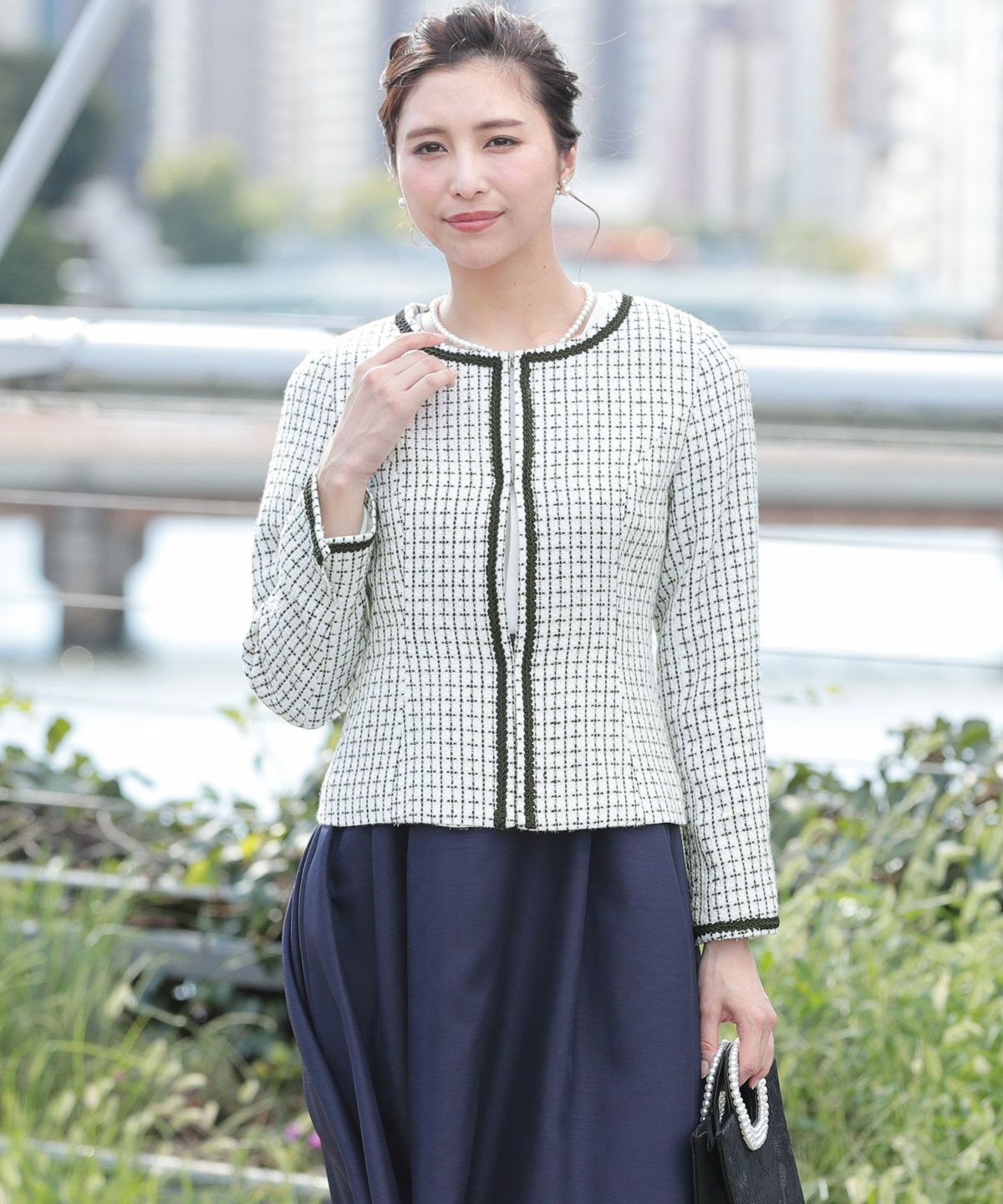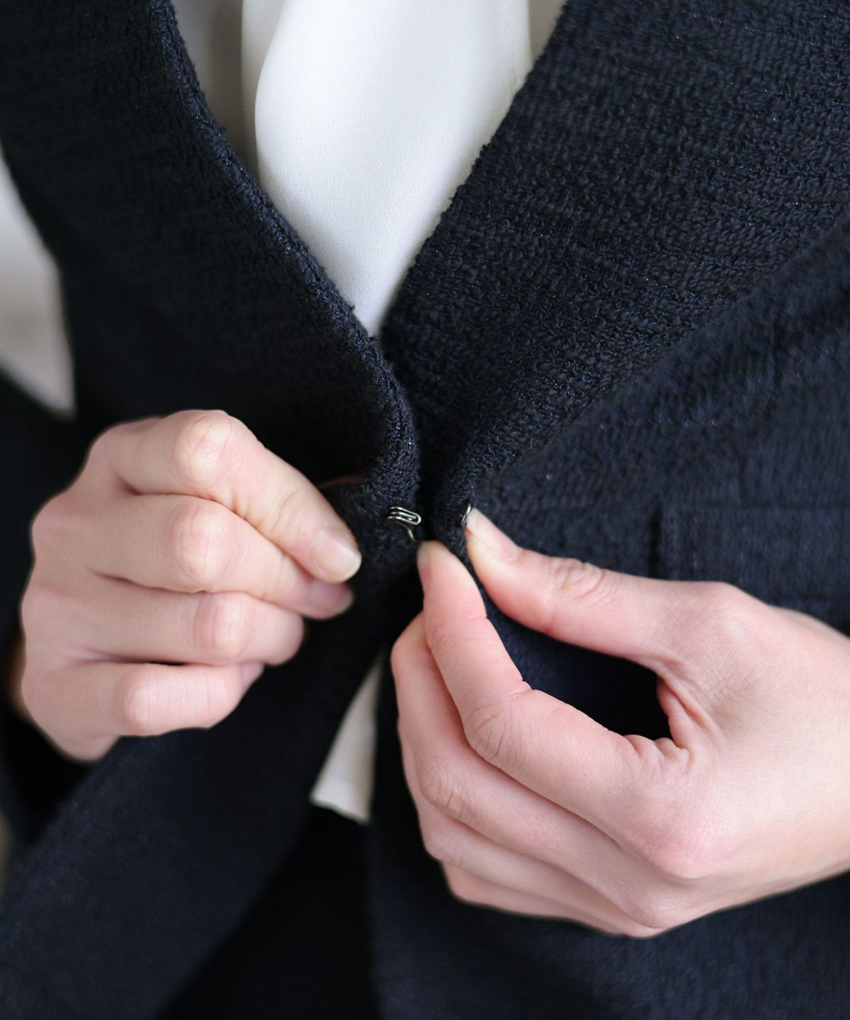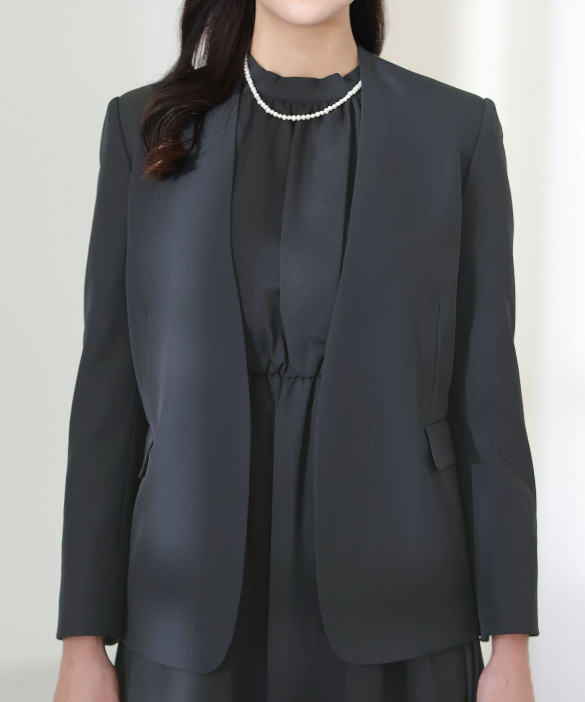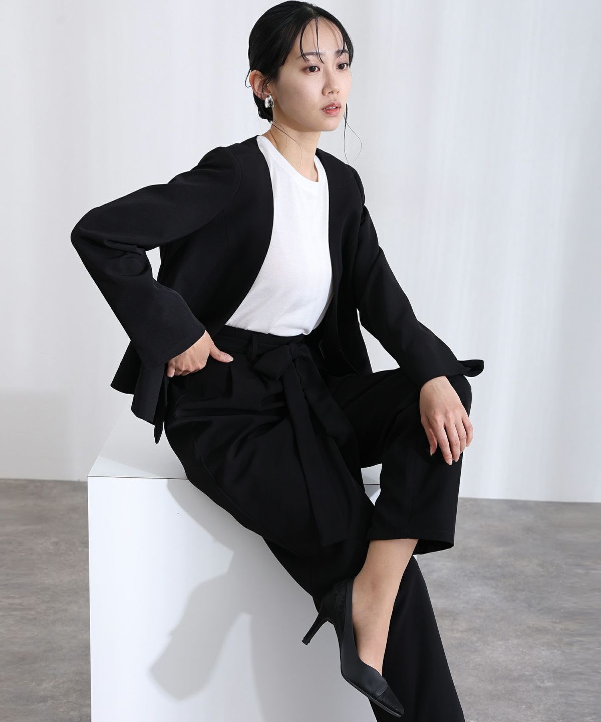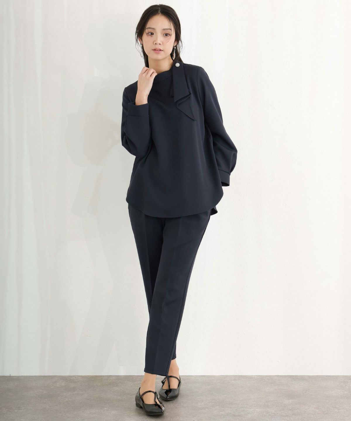 オフの日やカジュアルなイベントには、リラックス感のあるスーツがおすすめです。軽やかな素材と明るいカラーで、柔らかい雰囲気をプラス。