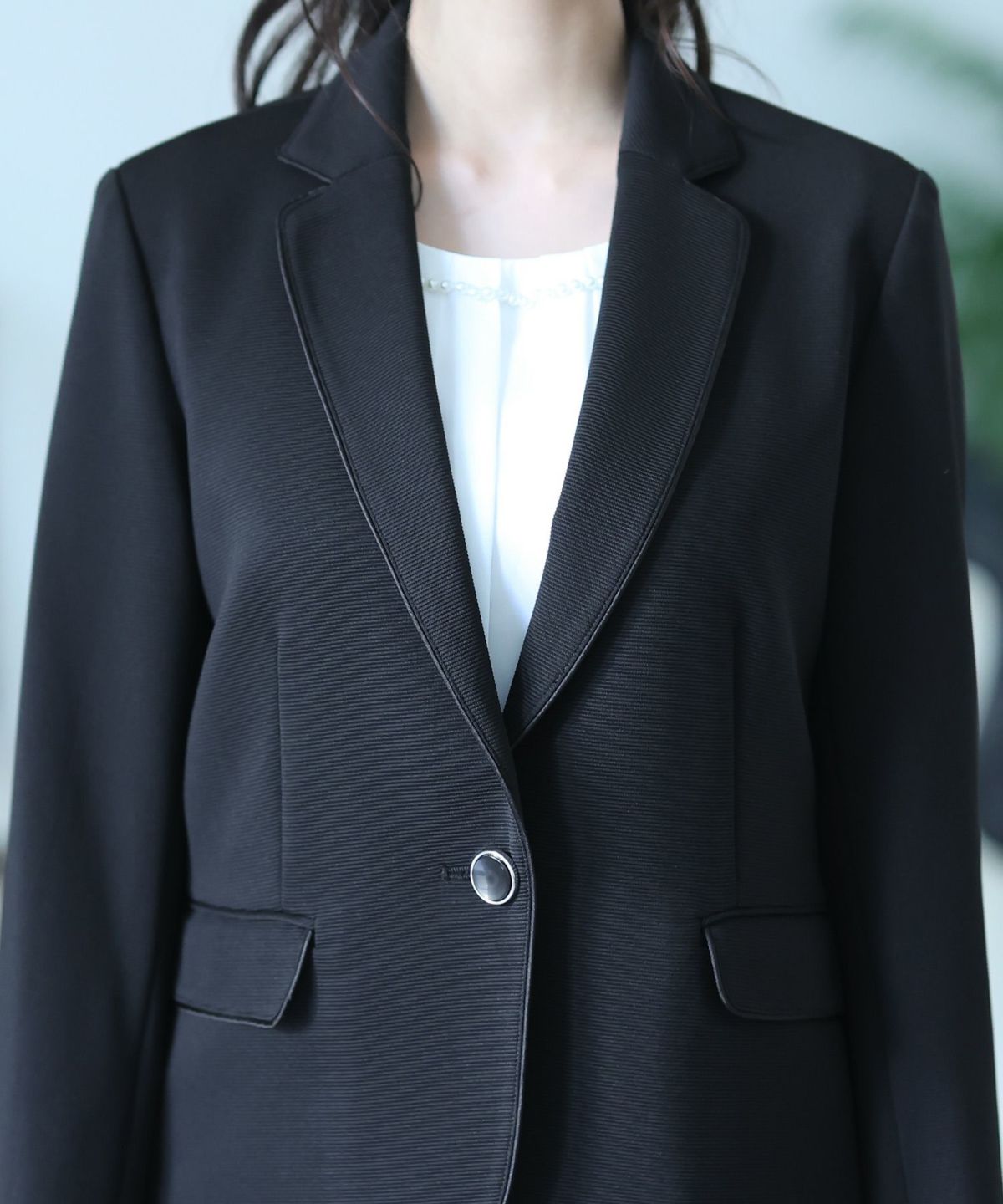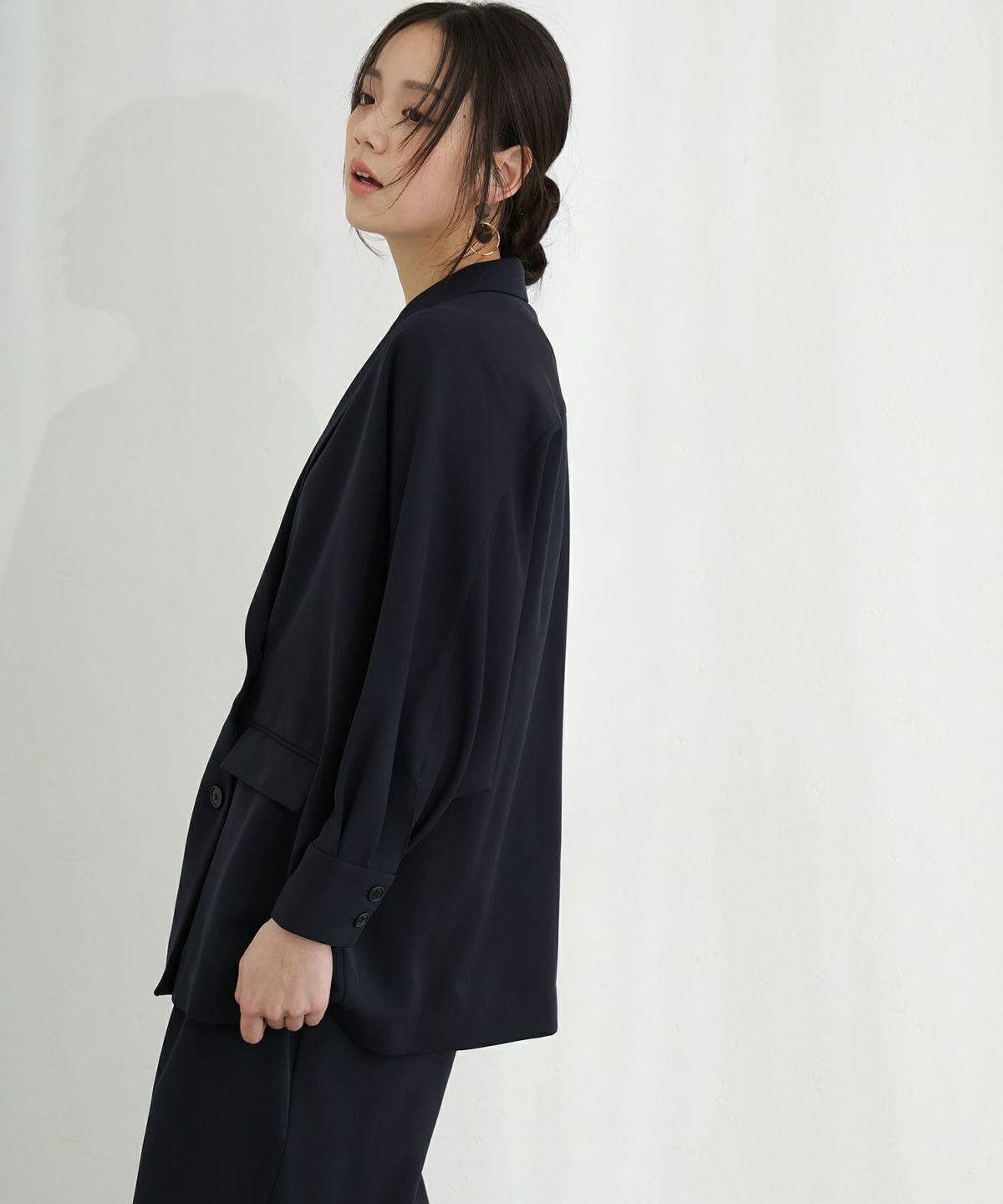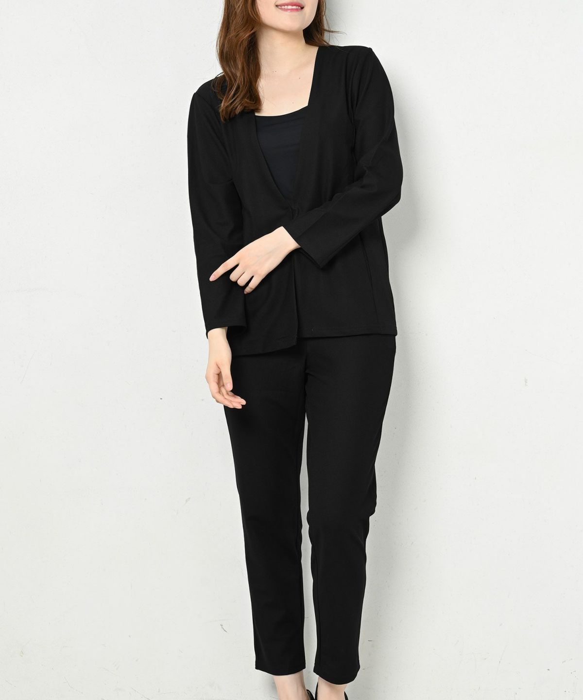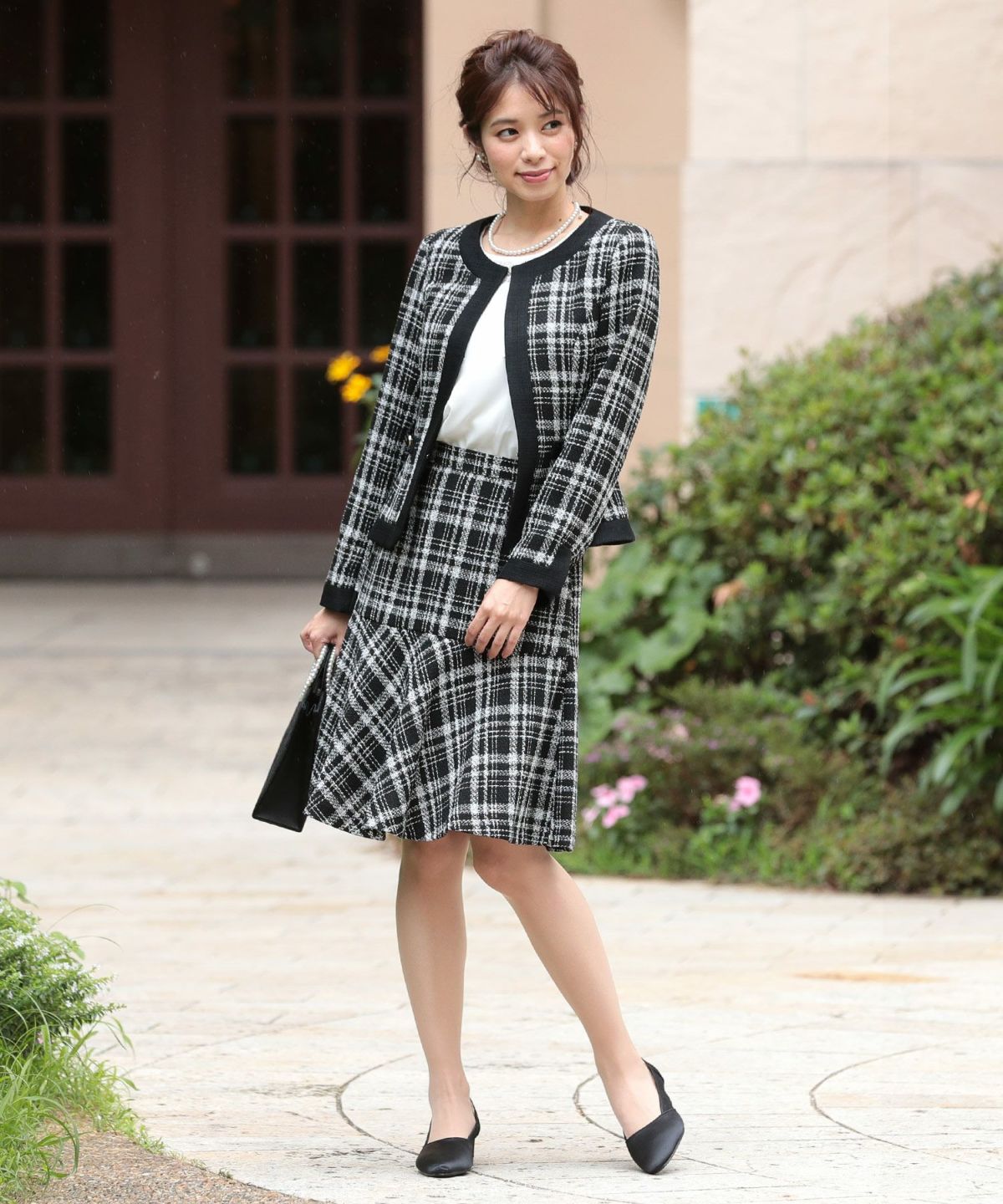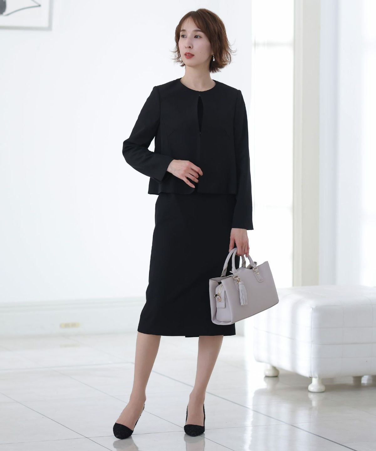 オフの日やカジュアルなイベントには、リラックス感のあるスーツがおすすめです。軽やかな素材と明るいカラーで、柔らかい雰囲気をプラス。