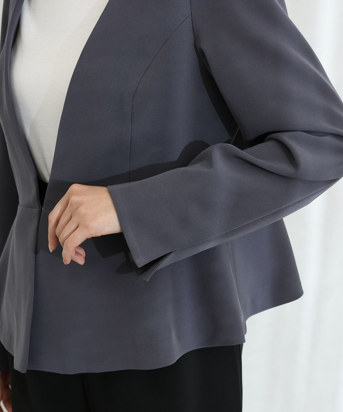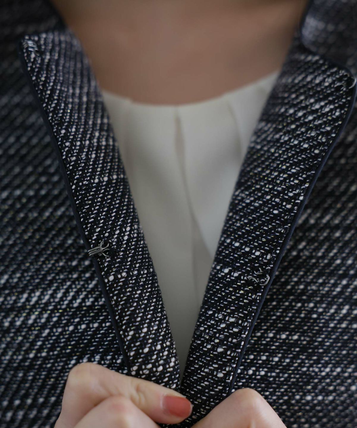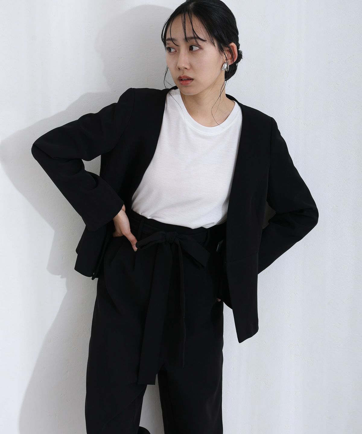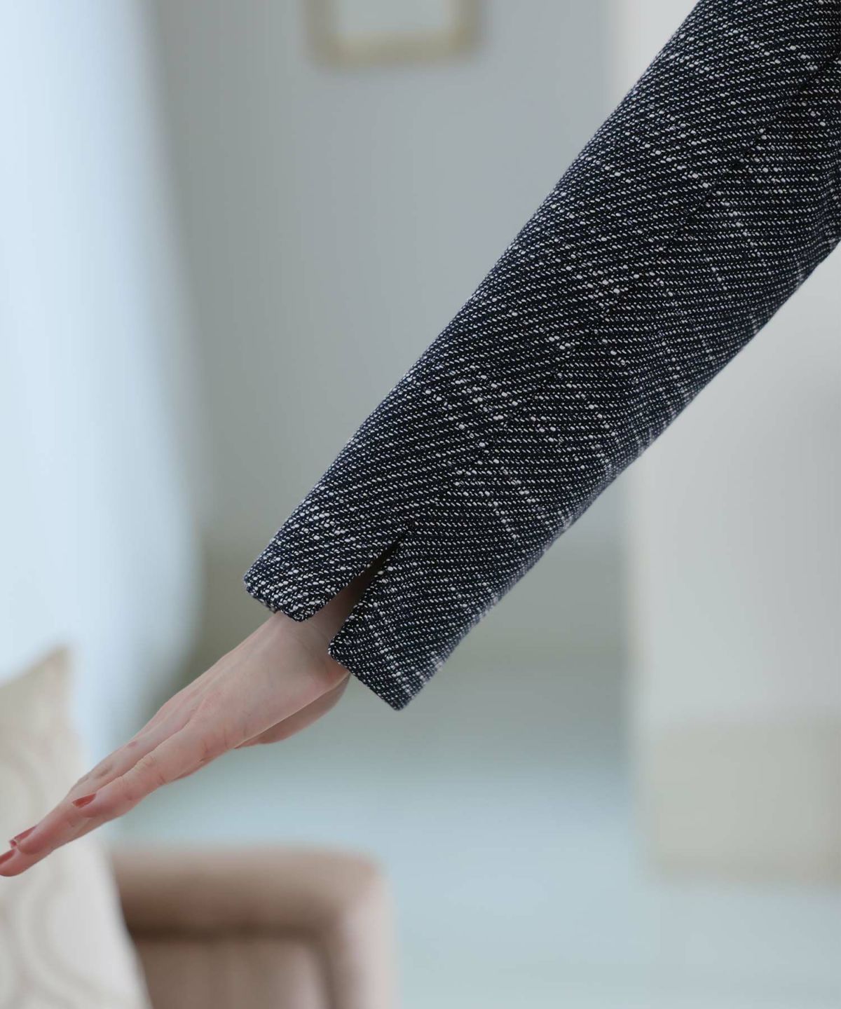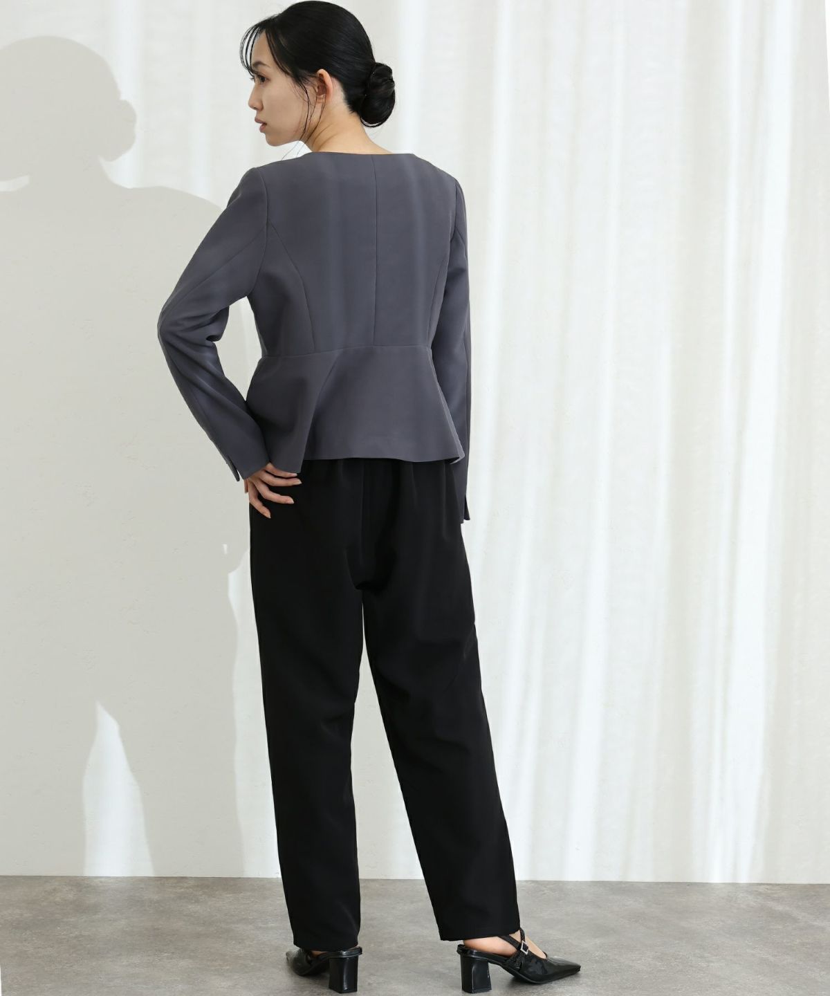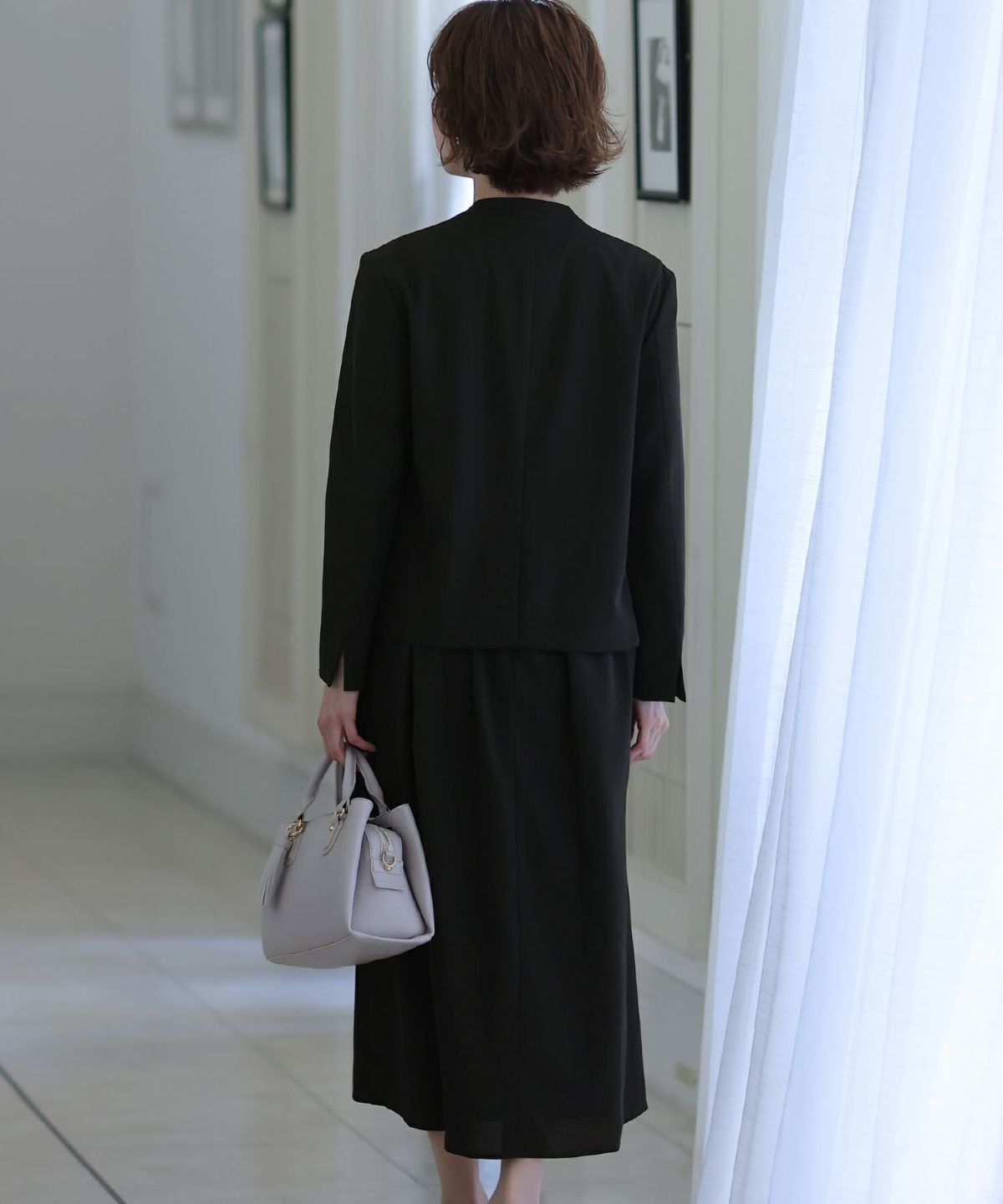 オフの日やカジュアルなイベントには、リラックス感のあるスーツがおすすめです。軽やかな素材と明るいカラーで、柔らかい雰囲気をプラス。