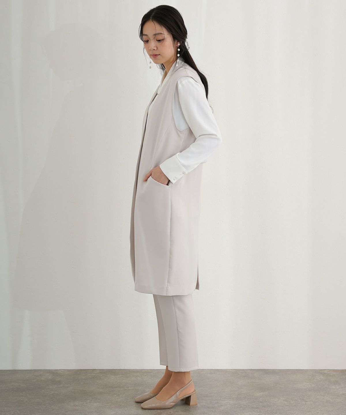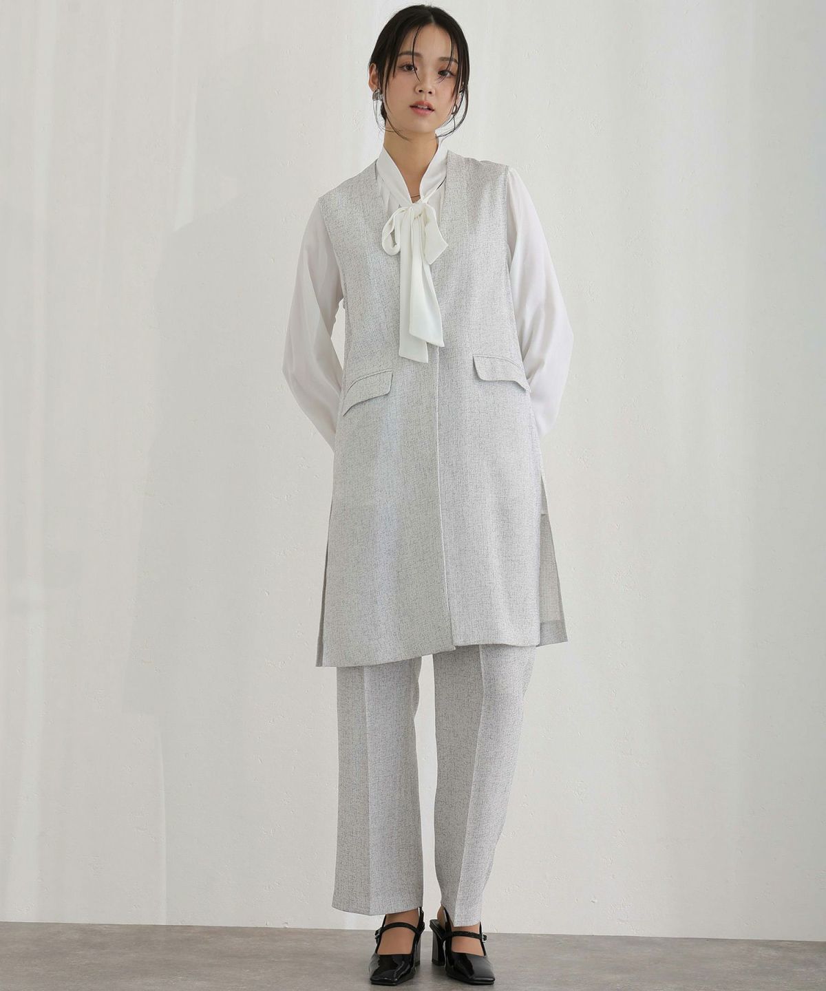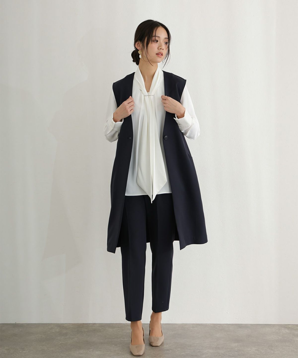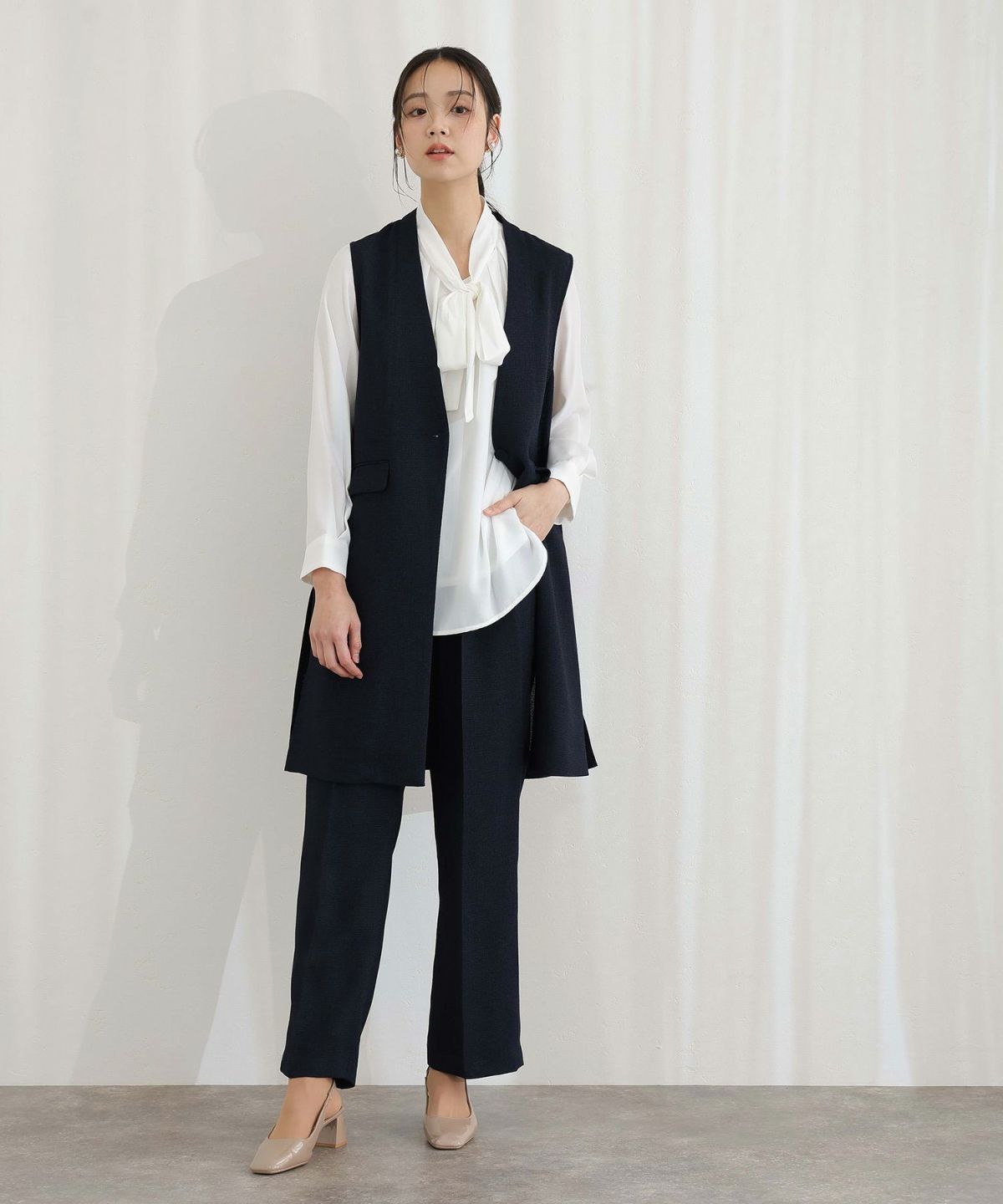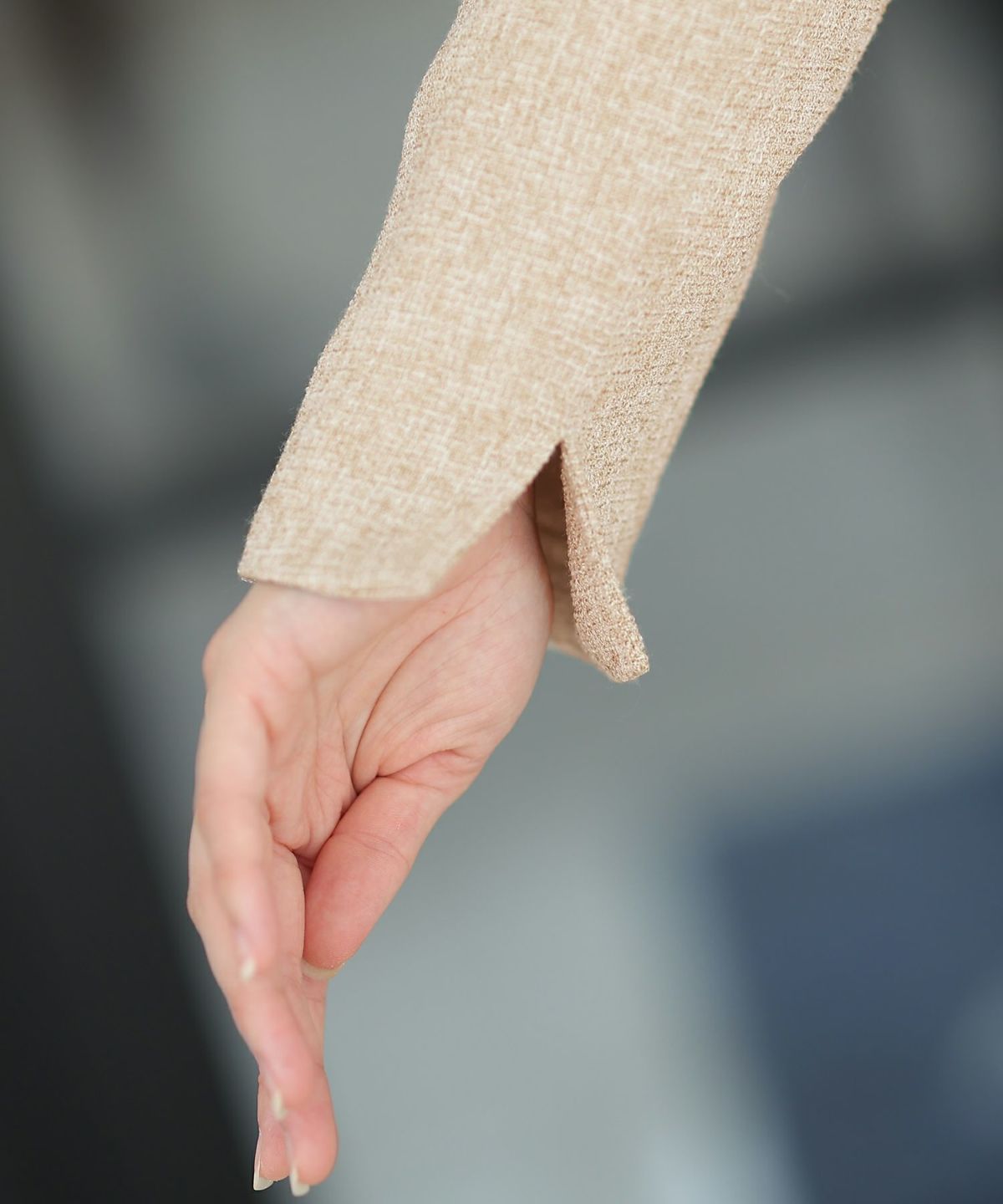 オフの日やカジュアルなイベントには、リラックス感のあるスーツがおすすめです。軽やかな素材と明るいカラーで、柔らかい雰囲気をプラス。