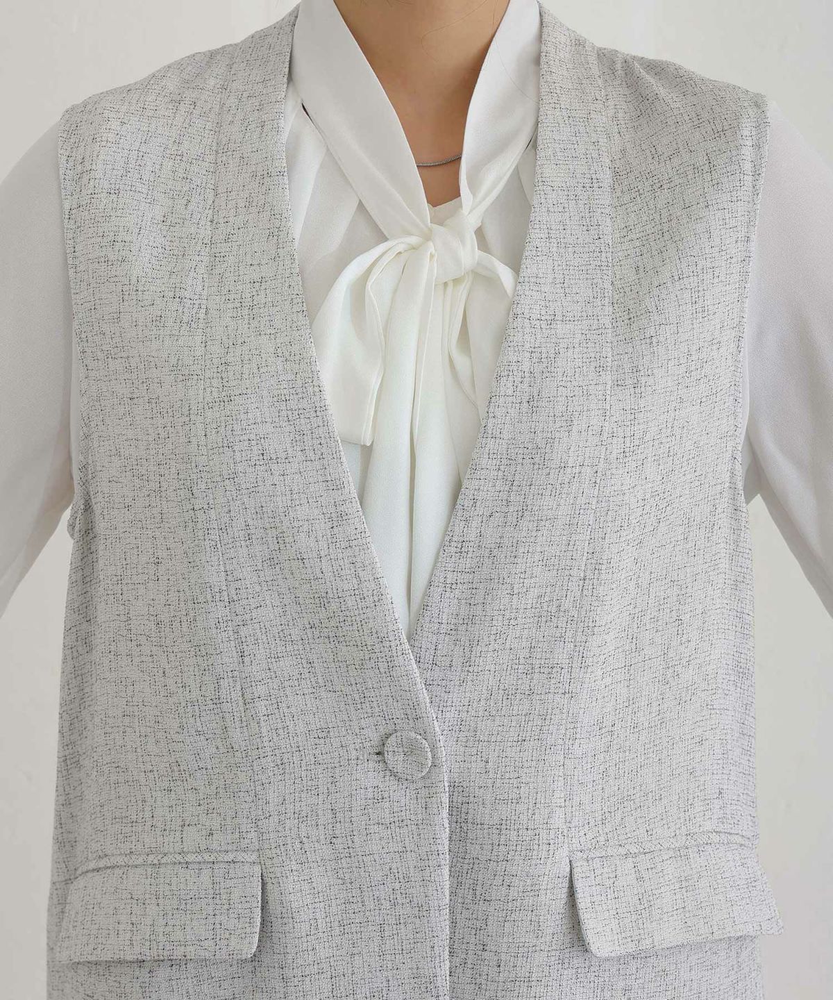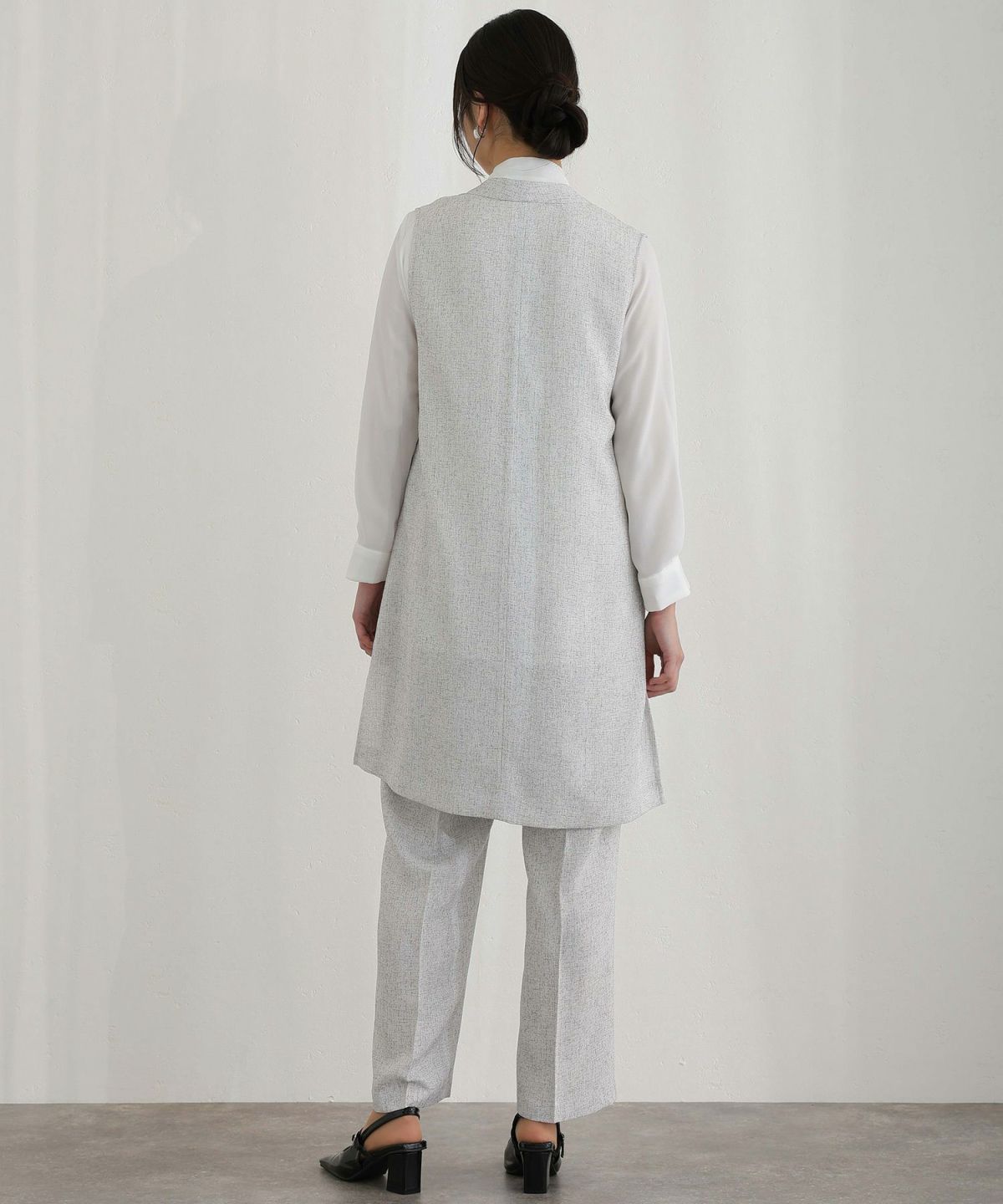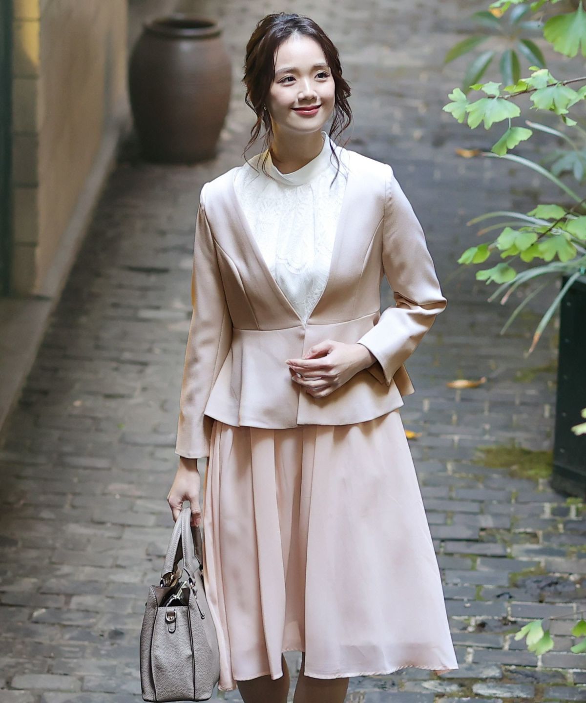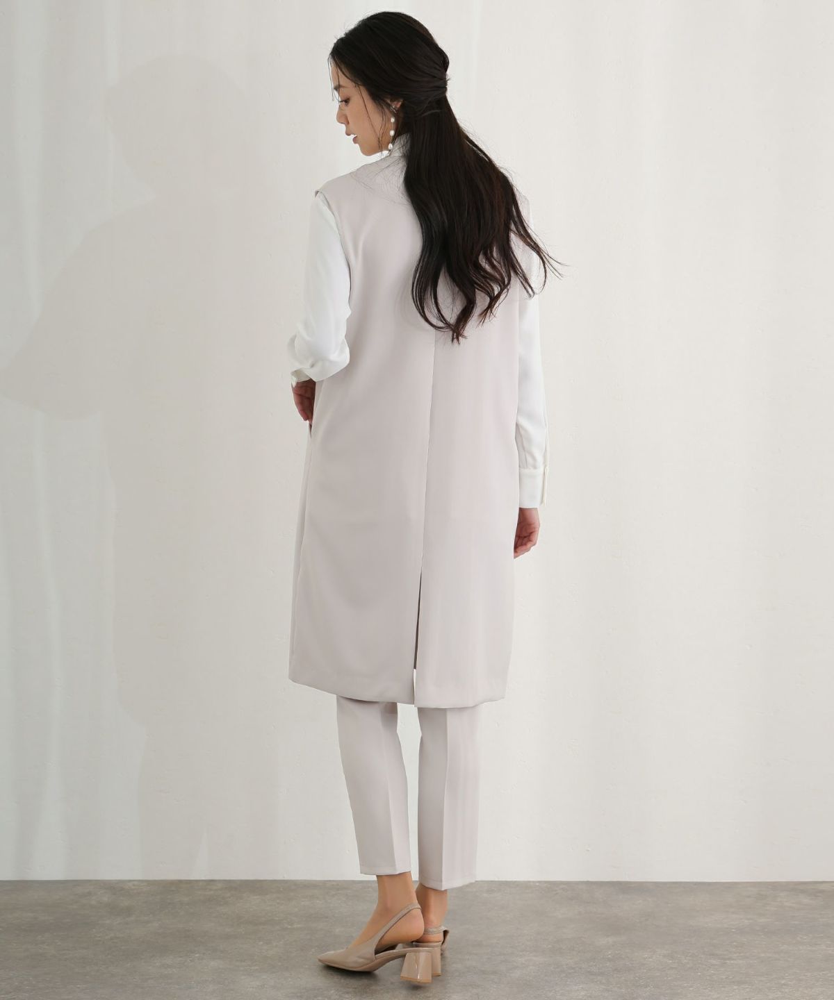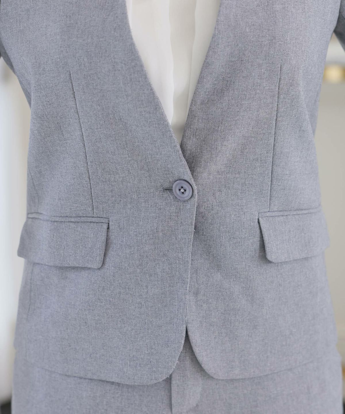オフの日やカジュアルなイベントには、リラックス感のあるスーツがおすすめです。軽やかな素材と明るいカラーで、柔らかい雰囲気をプラス。