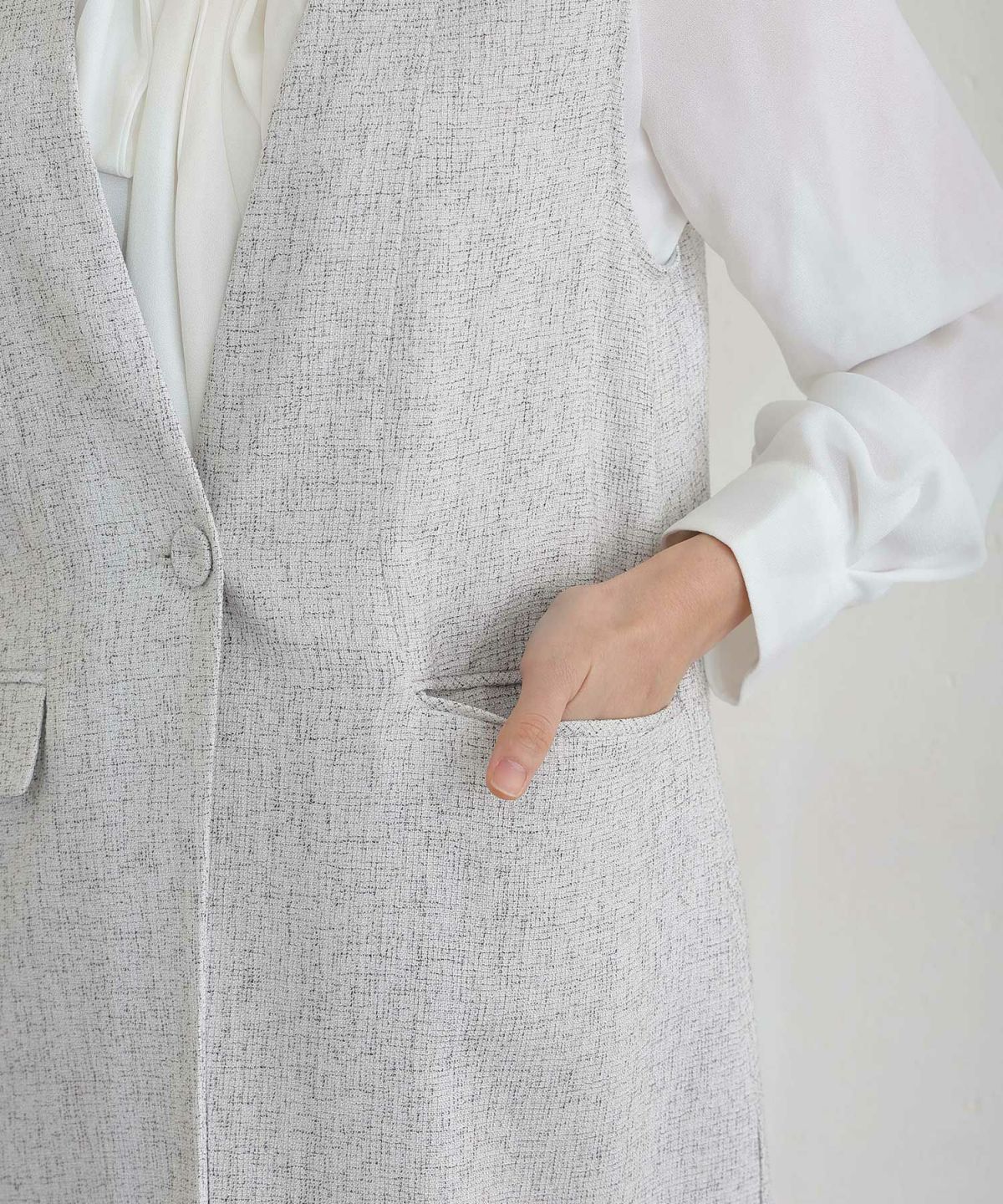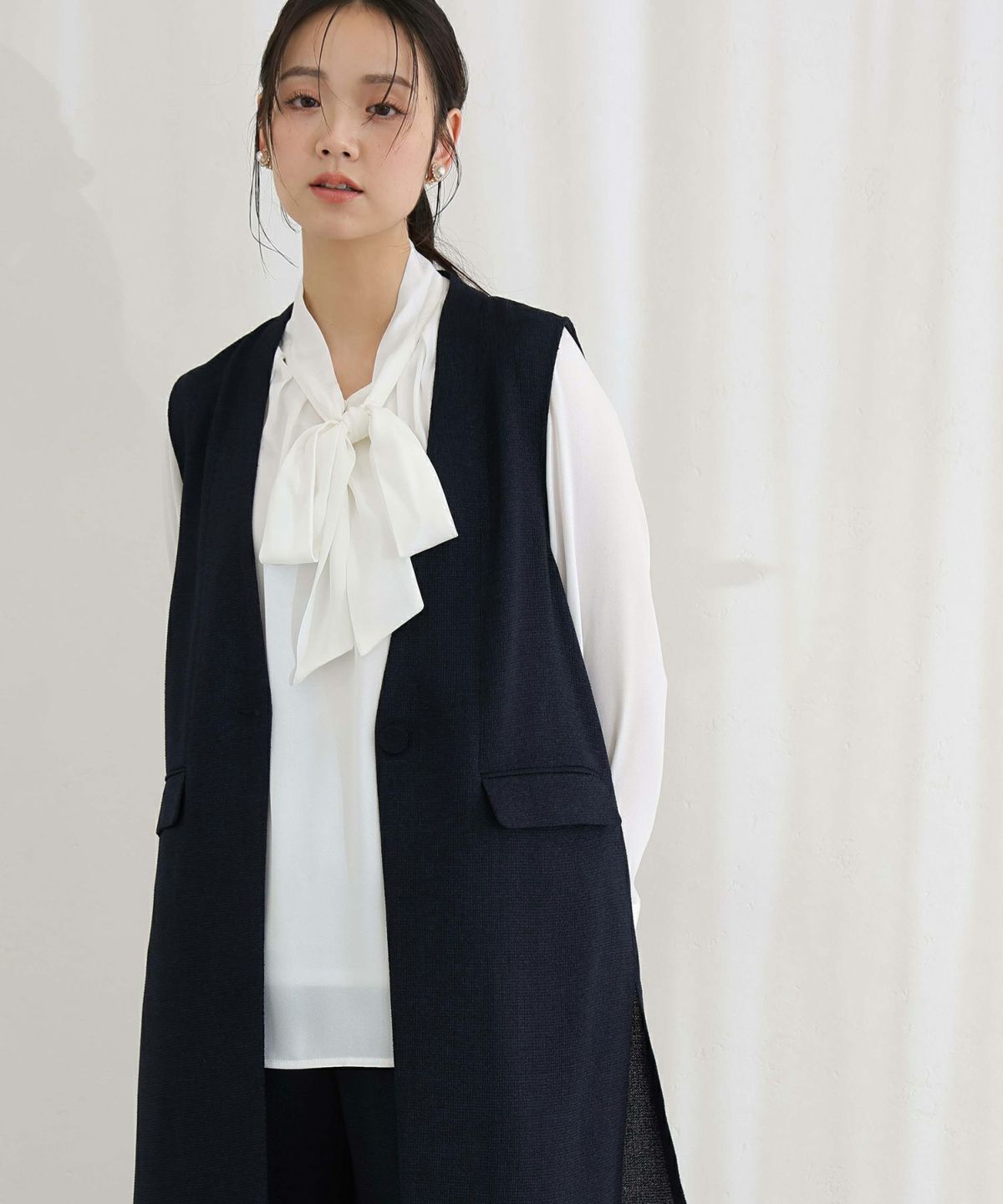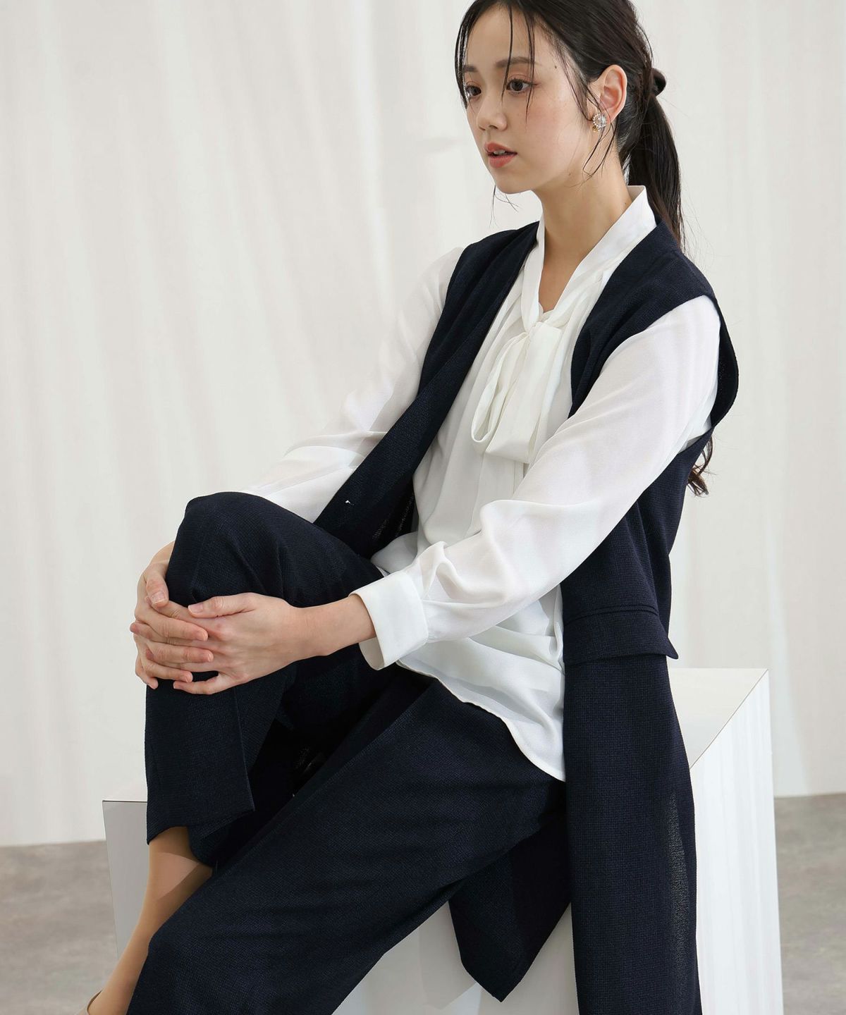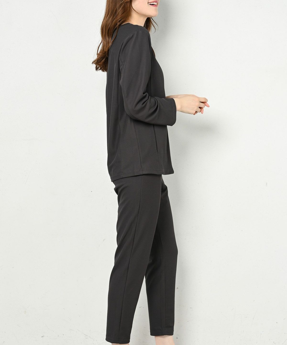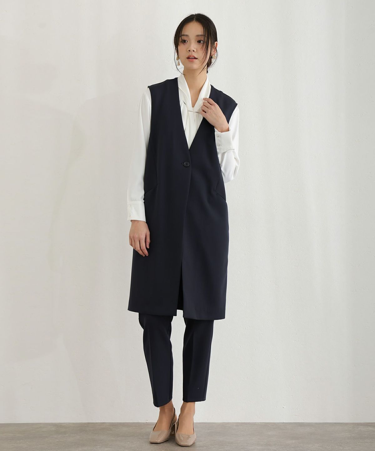 オフの日やカジュアルなイベントには、リラックス感のあるスーツがおすすめです。軽やかな素材と明るいカラーで、柔らかい雰囲気をプラス。