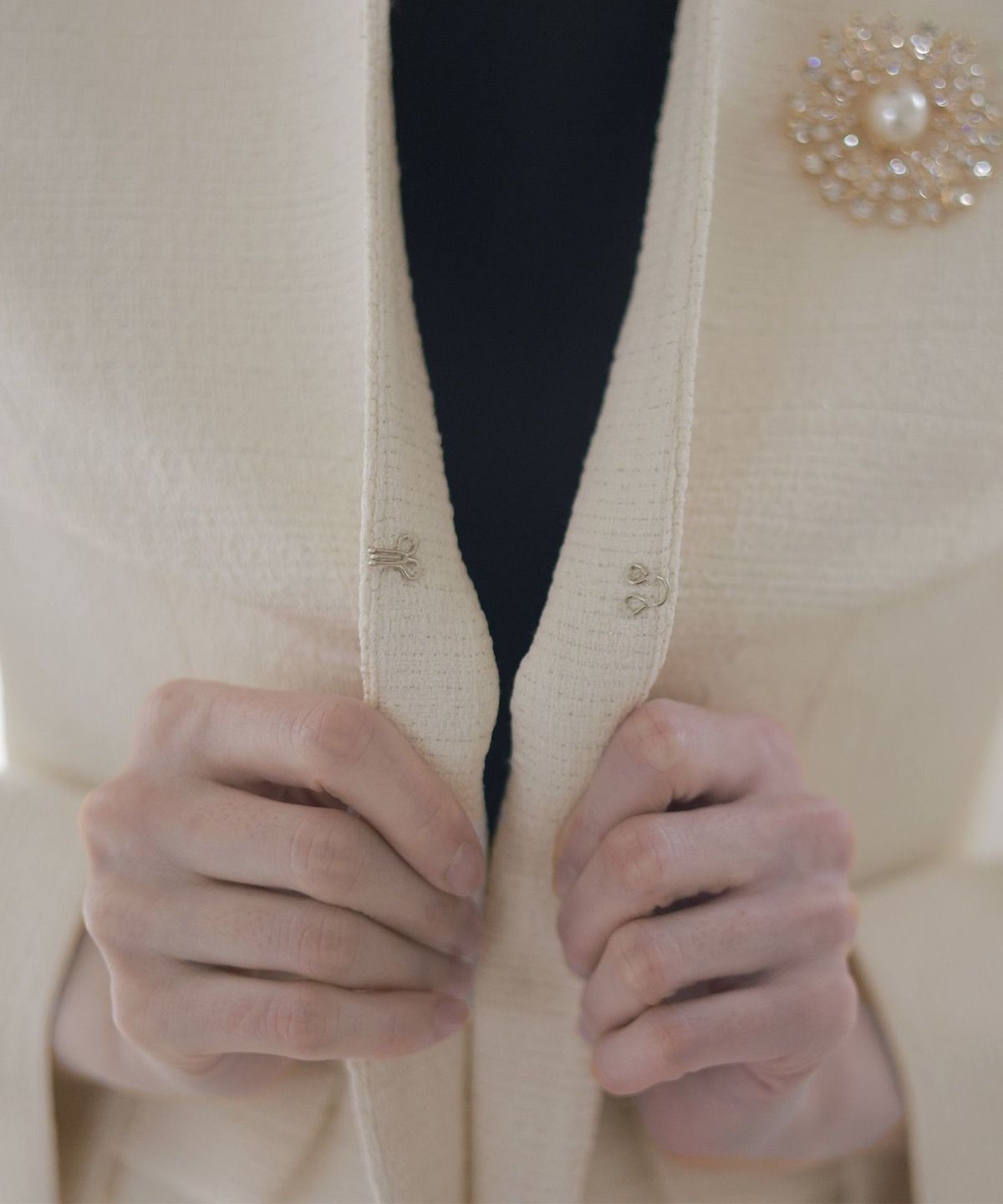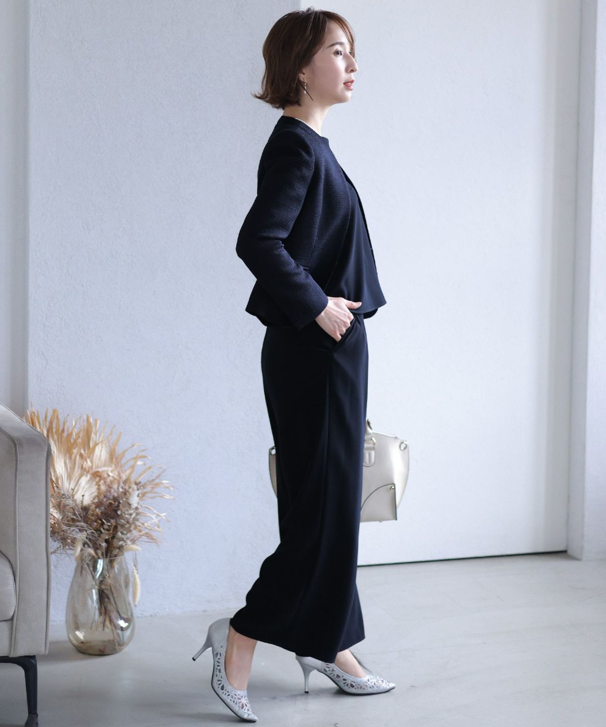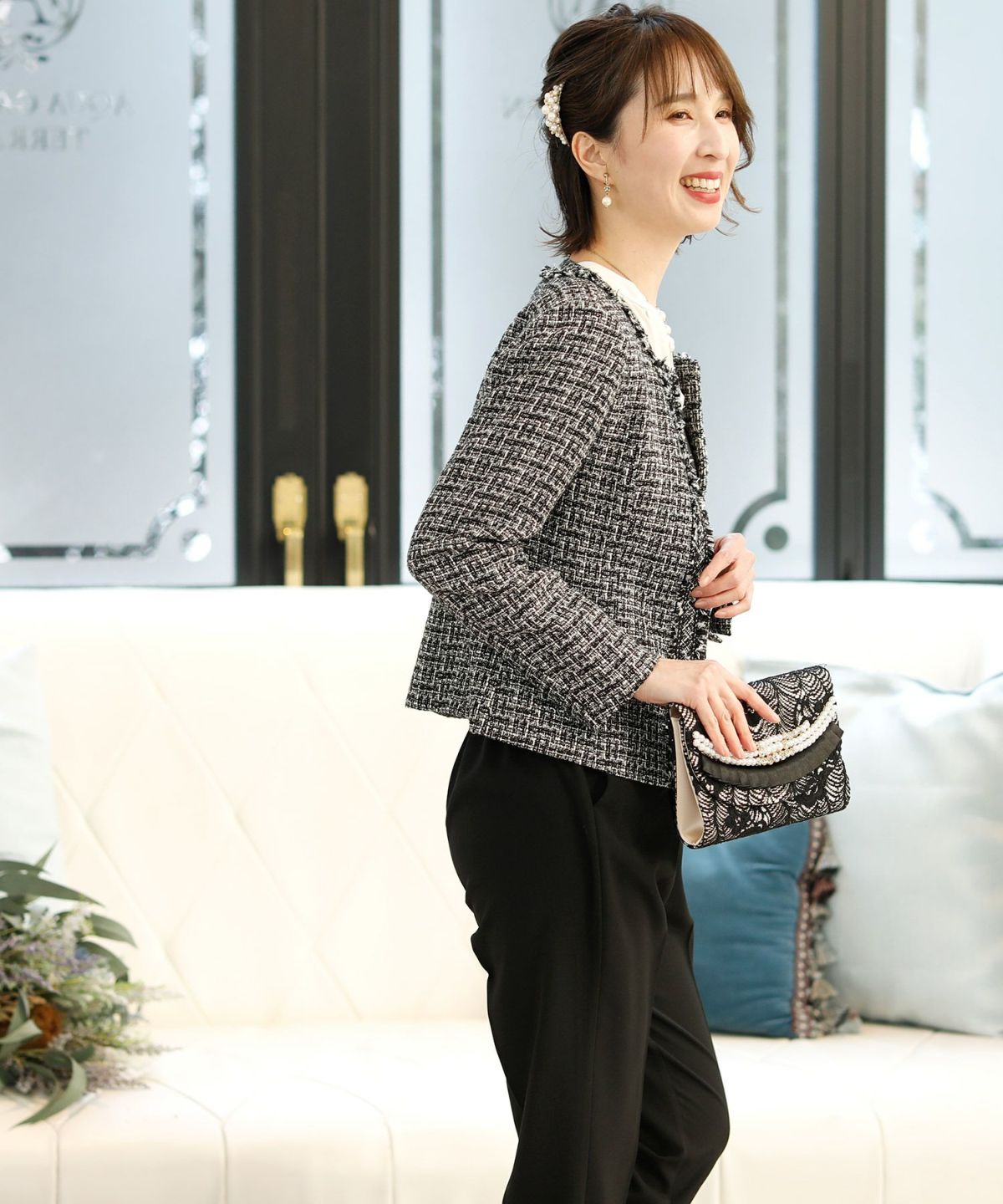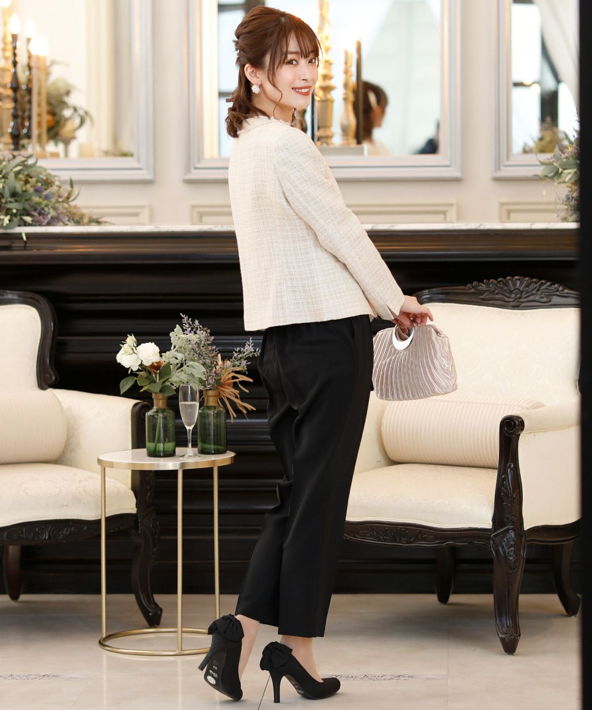 結婚式のパンツドレスならPourVous。上品な華やかさを纏(まと)うデザインから、セレモニースーツ風の洗練された