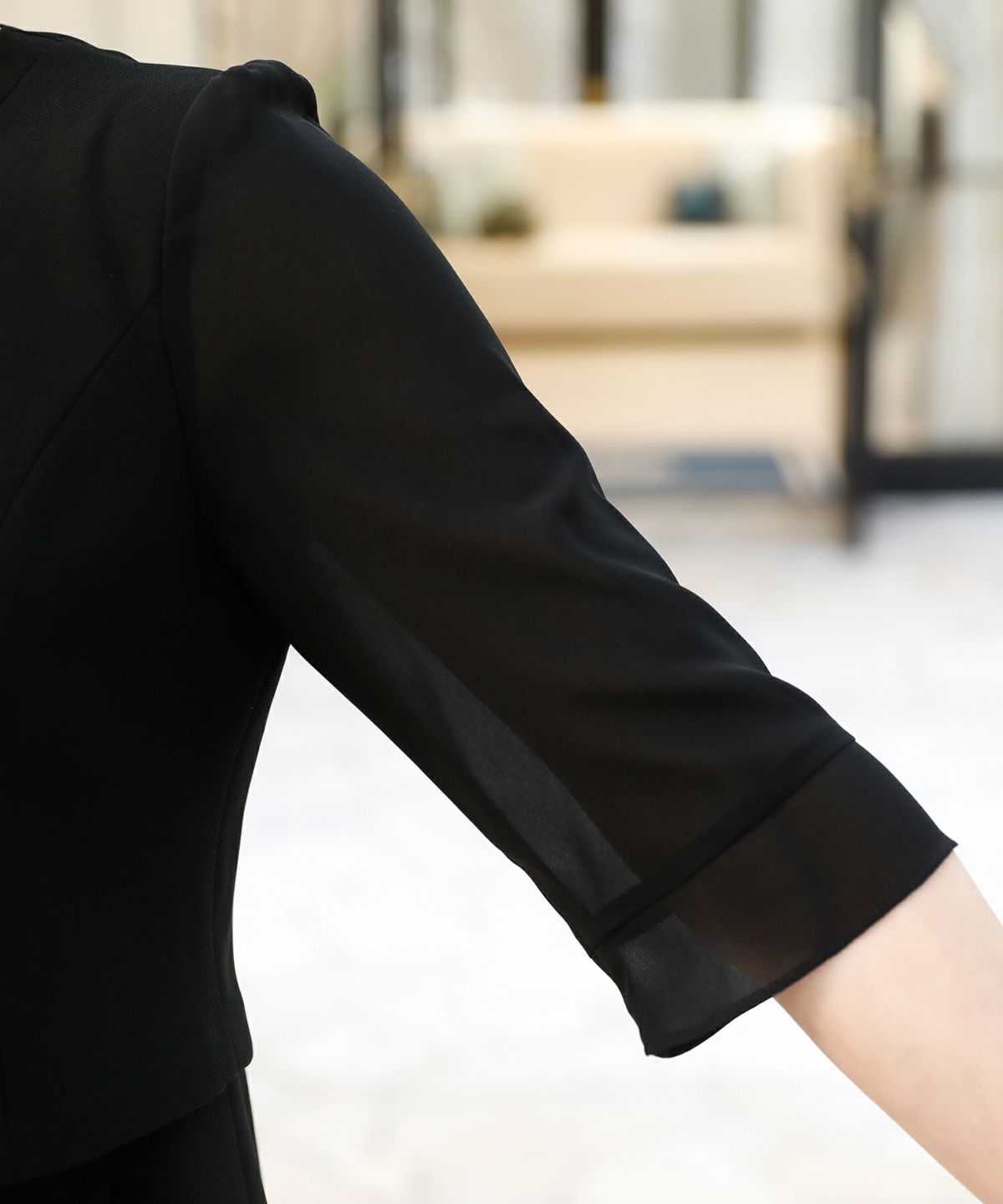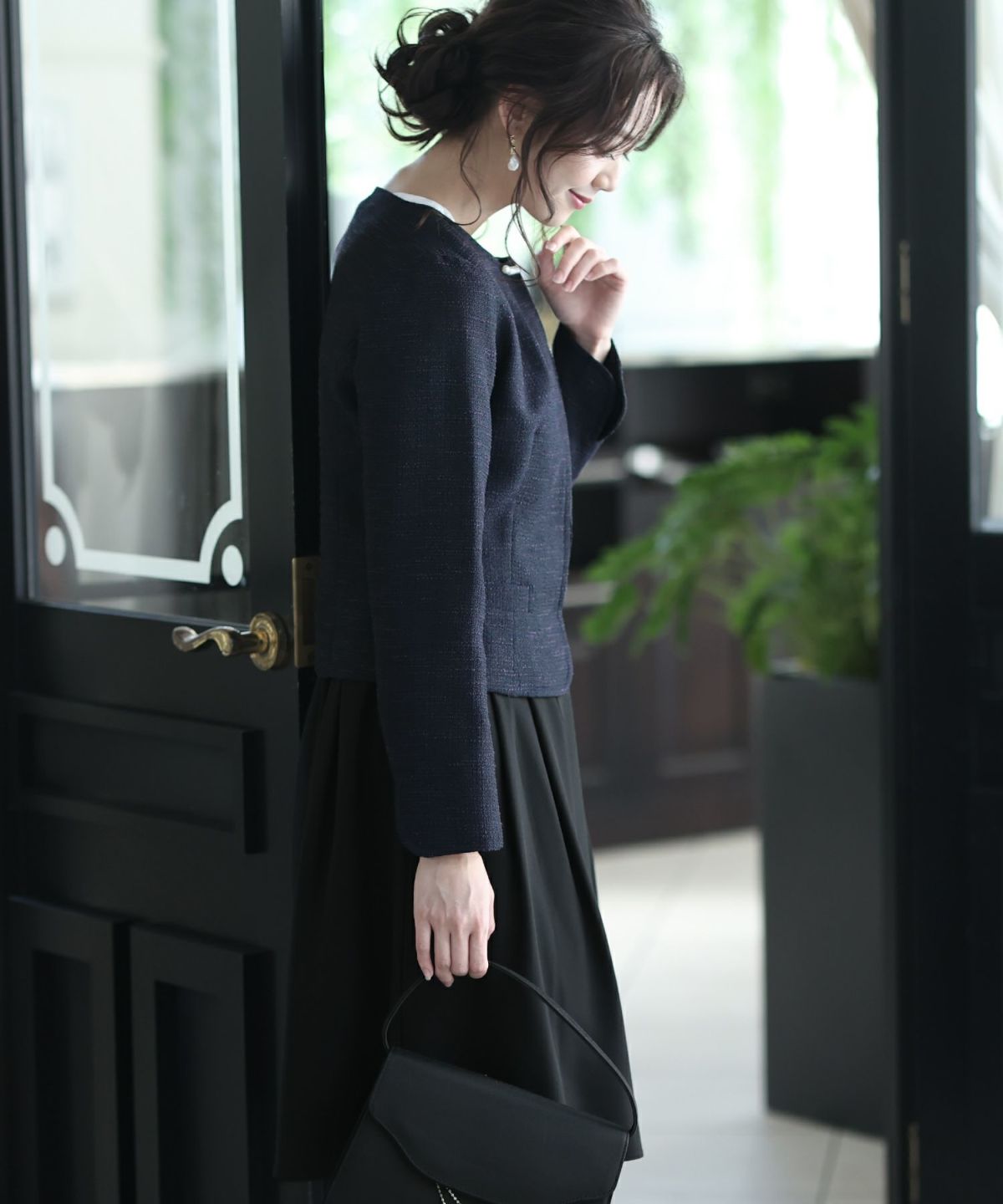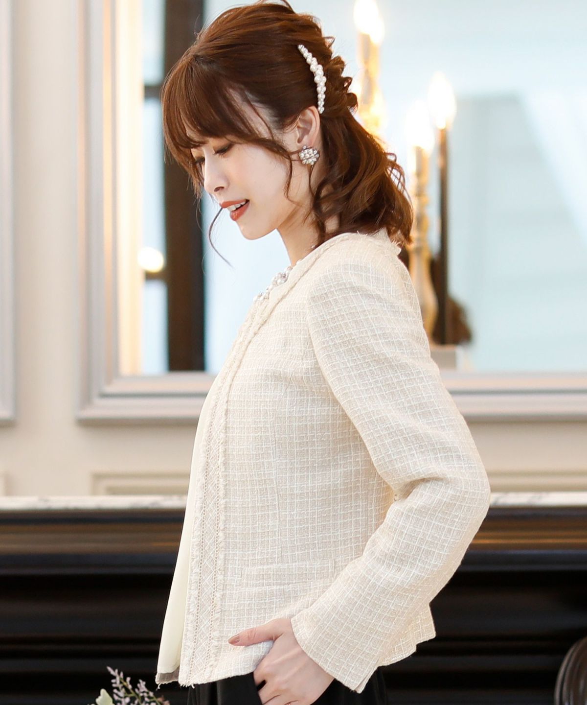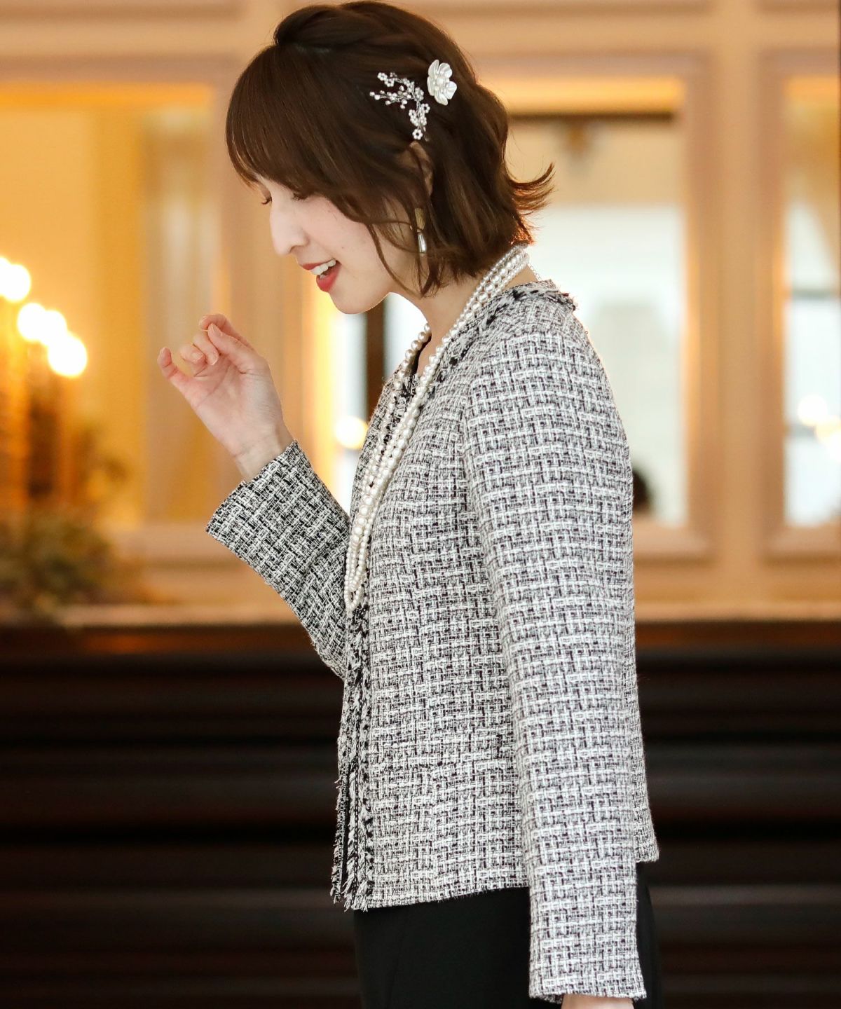 結婚式やパーティーに。人気の袖付きボレロやジャケットは、PourVousの上品なデザインと