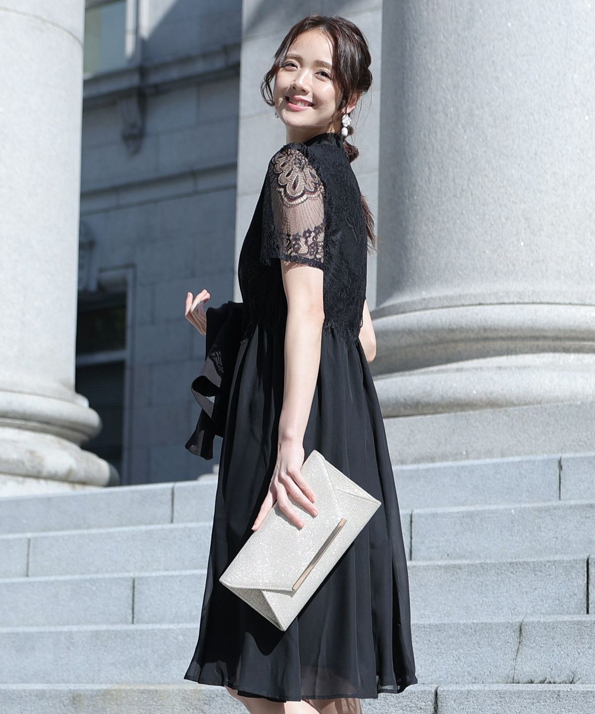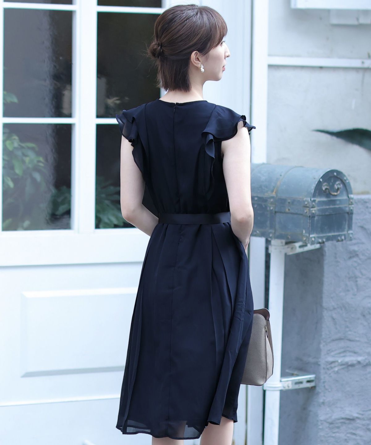 後ろにもこだわりのある主役級ドレス バックプリーツ&レースリボンドレス