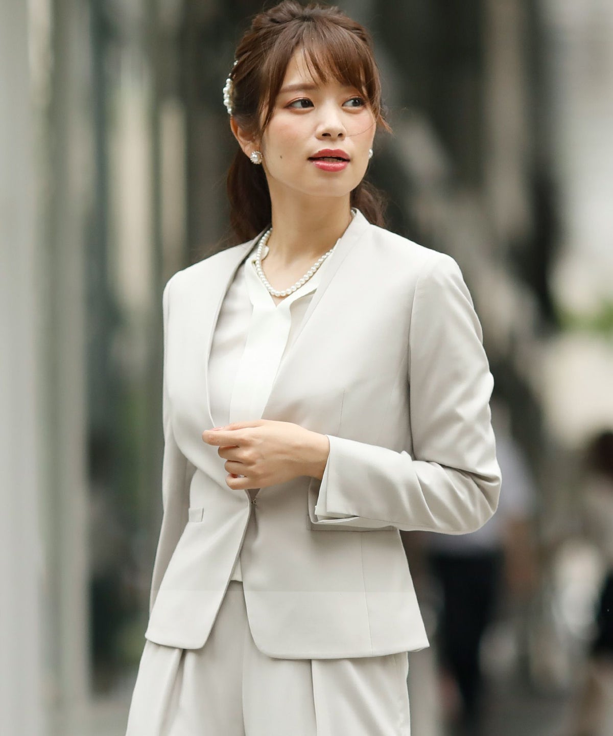 パンツスーツは、体のラインを美しく引き立てるテーラードカットが特徴です。スリムフィットやワイドレッグ、テーパードパンツなど、多彩なシルエットであなたの個性を表現します。