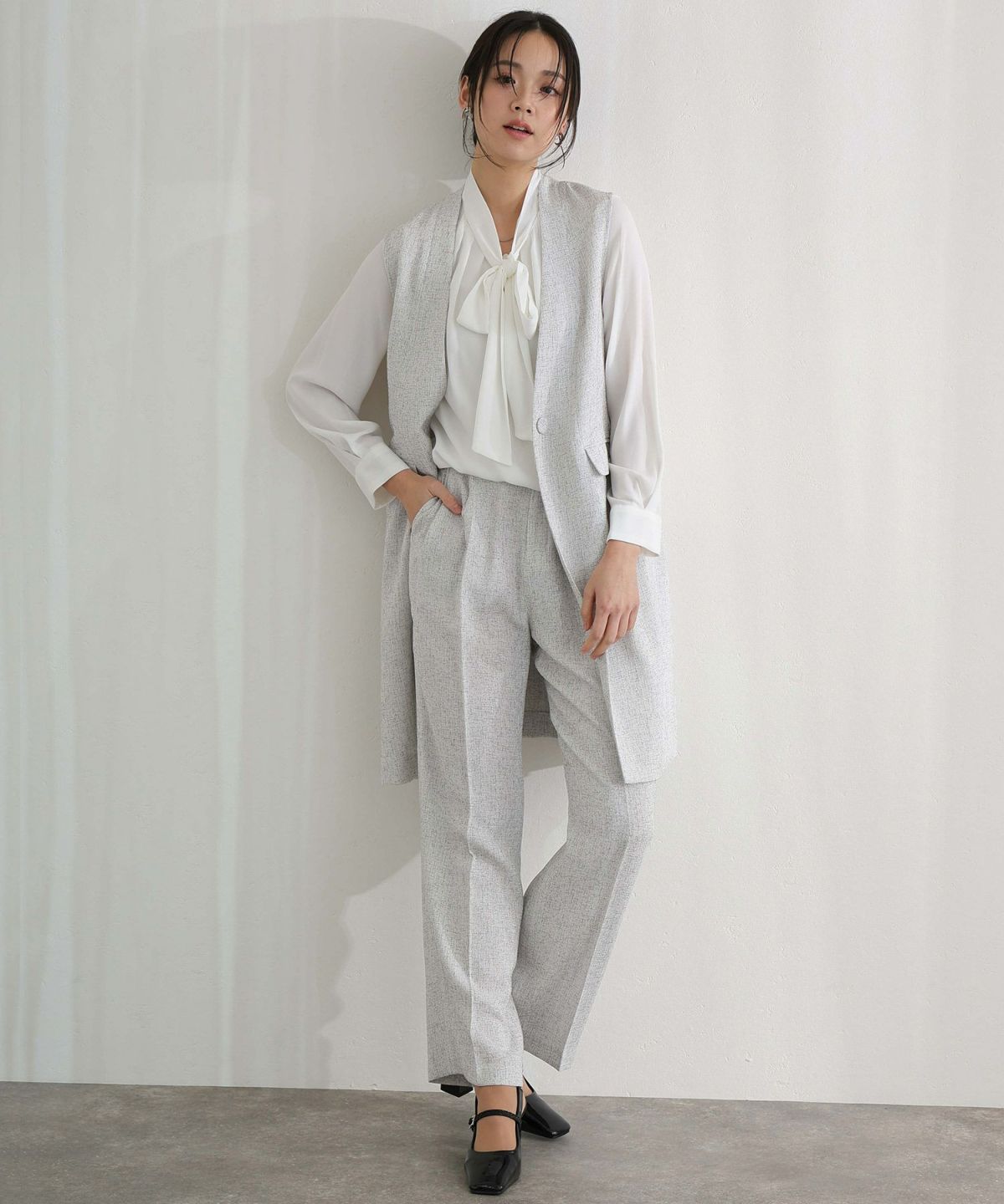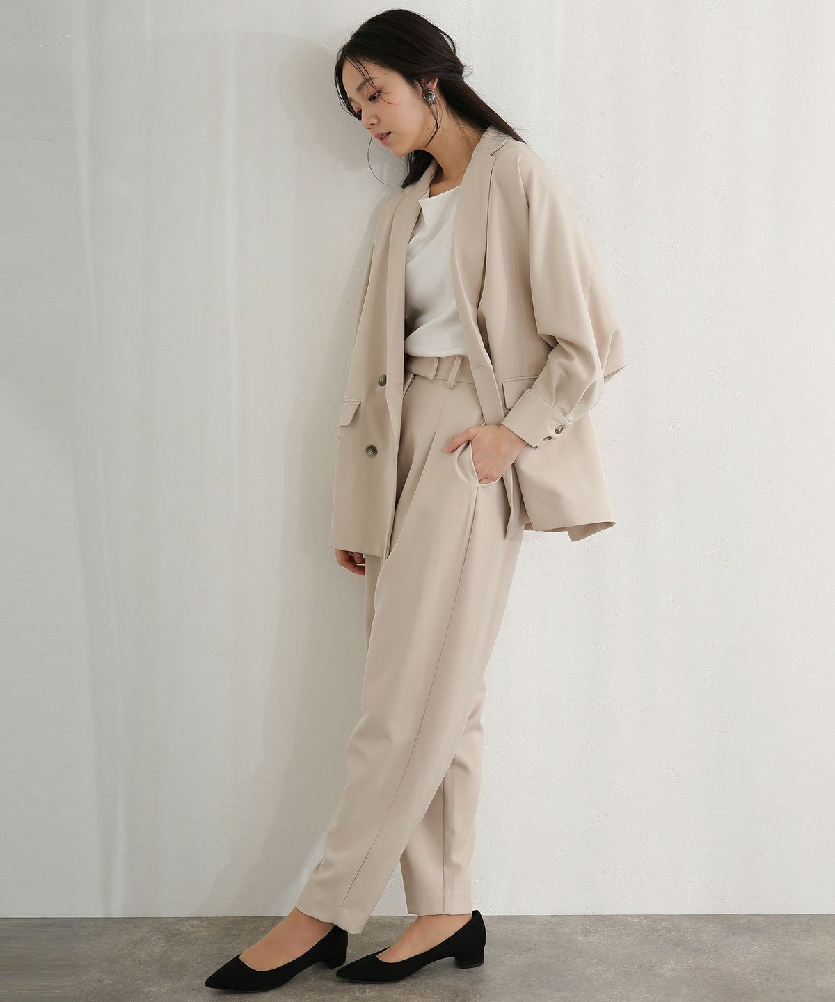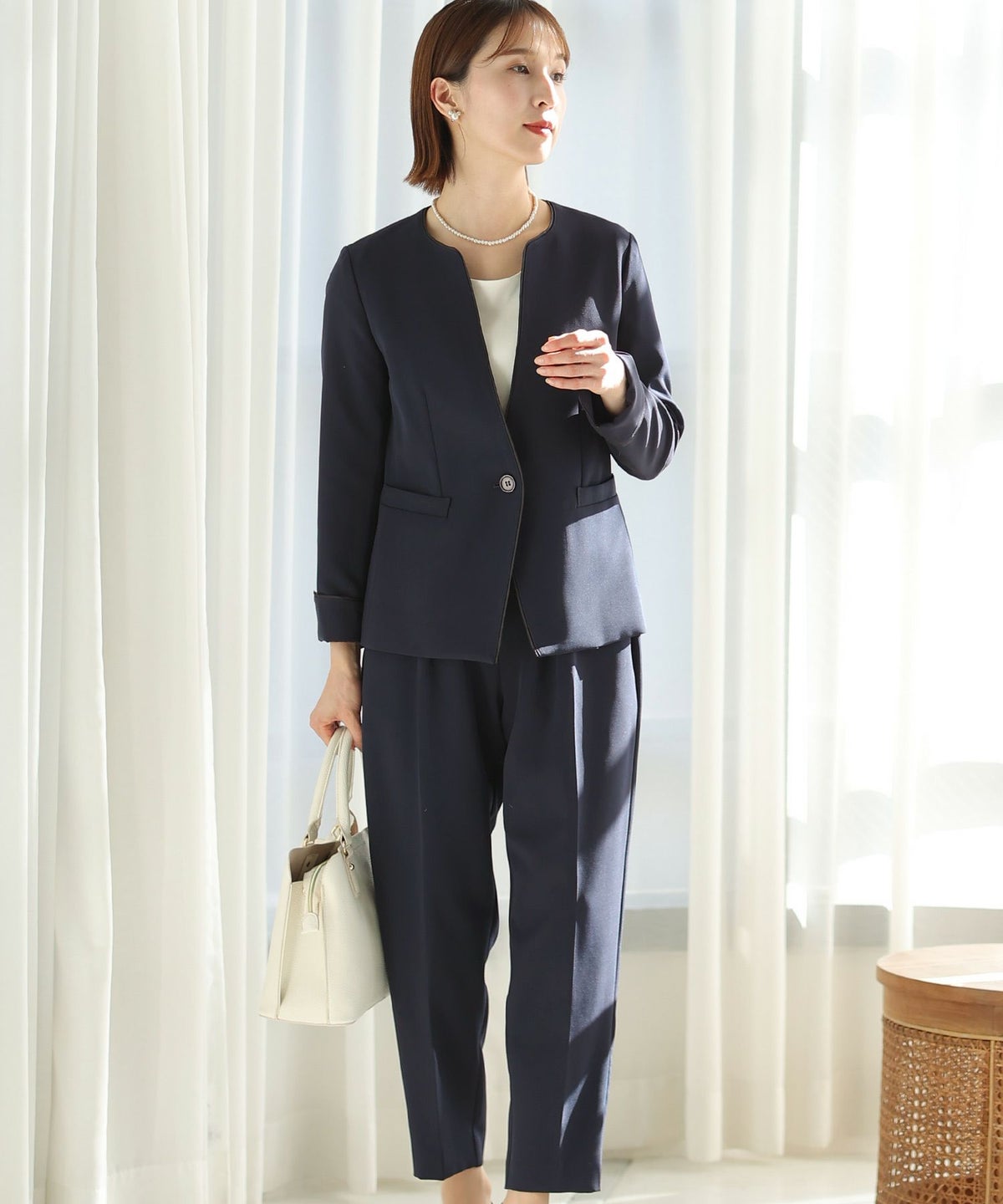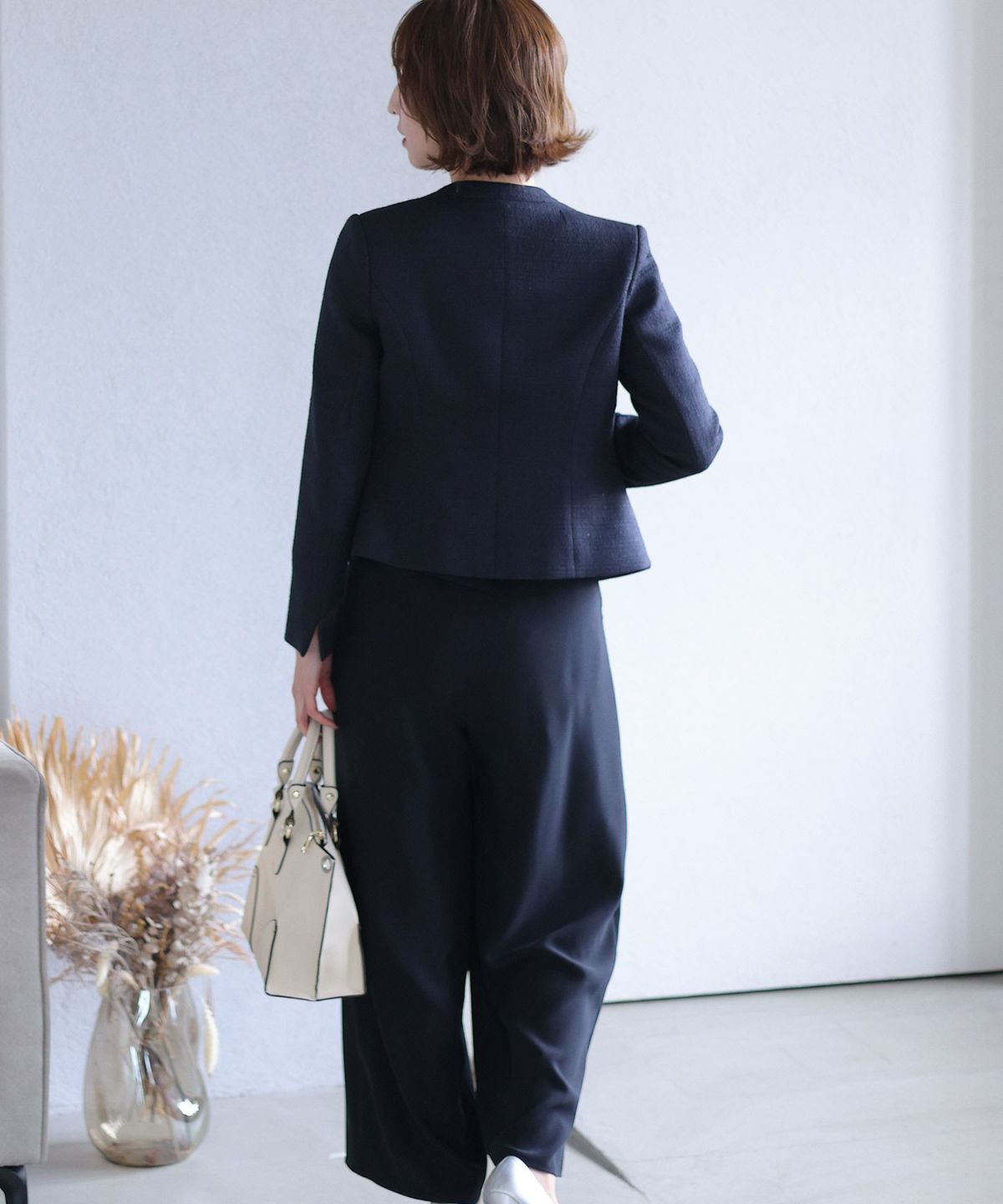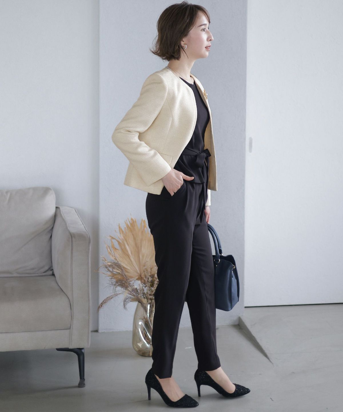 リラックスしたスタイルには、リネン素材のパンツスーツがおすすめ。軽やかな生地と明るいカラーで、オフの日やカジュアルなイベントにもぴったりです。