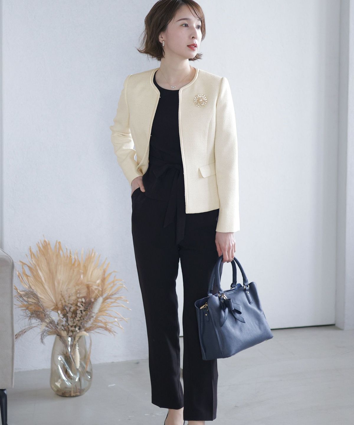 結婚式のパンツドレスならPourVous。上品な華やかさを纏(まと)うデザインから、セレモニースーツ風の洗練された