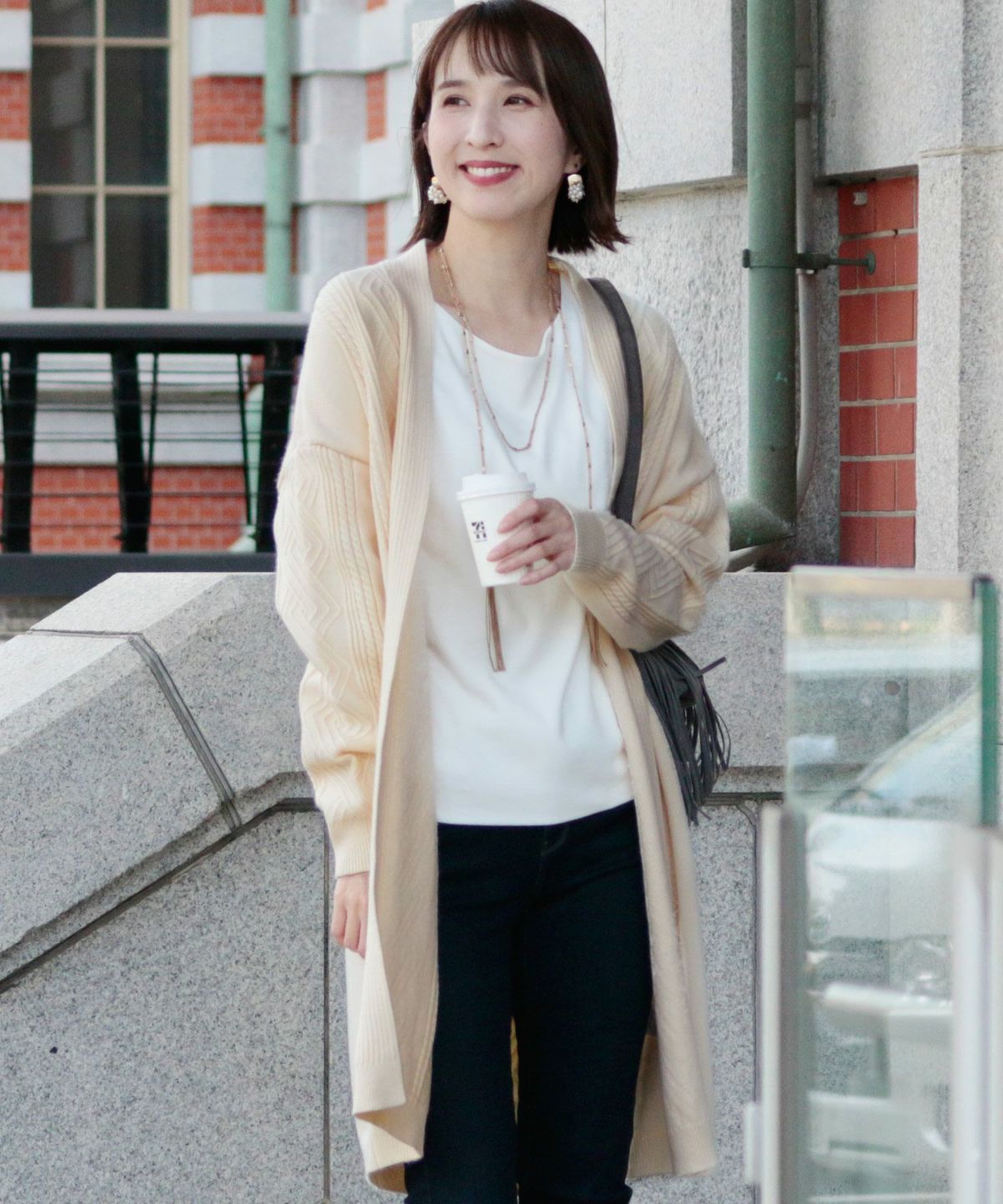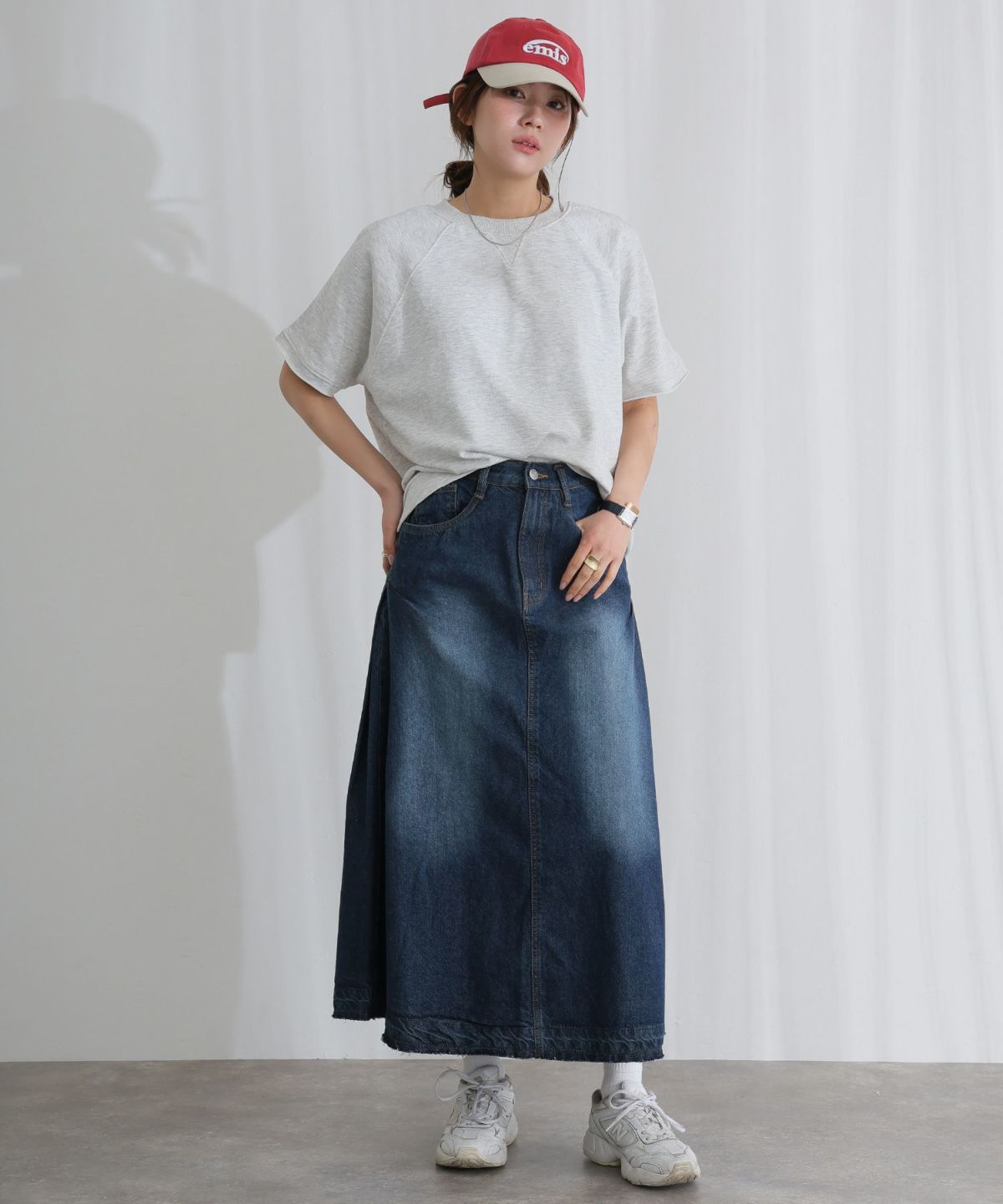 友人とのランチやショッピングには、リラックス感のあるカジュアルスタイルがおすすめ。シンプルなTシャツやデニム、スニーカーで軽やかに過ごせます。