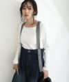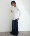 ボートネックが首元をすっきり見せ、上品な印象をプラス。