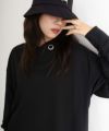 首元の大きなハトメがコーデのアクセントに ハイネックオーバーサイズトップス