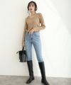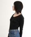 Vネックラインで首元をすっきり見せ上品な印象に 2×2リブVネックトップス