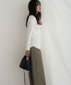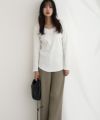 Vネックラインが首元をすっきり見せ、上品な印象をプラス。
