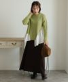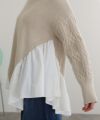 ニットとブラウス素材の組み合わせがかわいい レイヤード風アシンメトリーニット