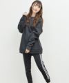 ゆったりサイズなので窮屈さもなく、ルームウェアにぴったり。ボトムスにはポケットが付いております。白のラインデザインでシャープさを演出♪